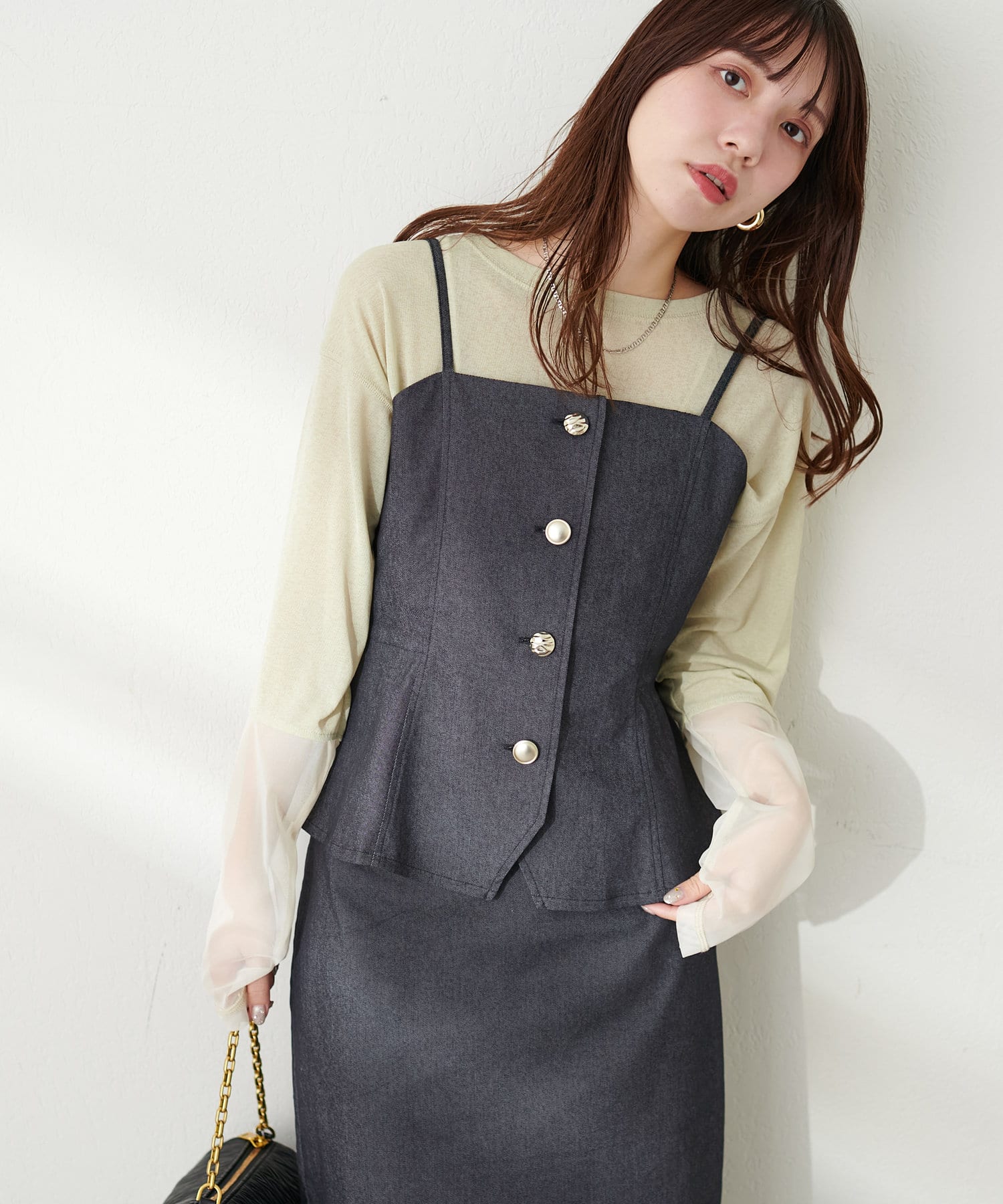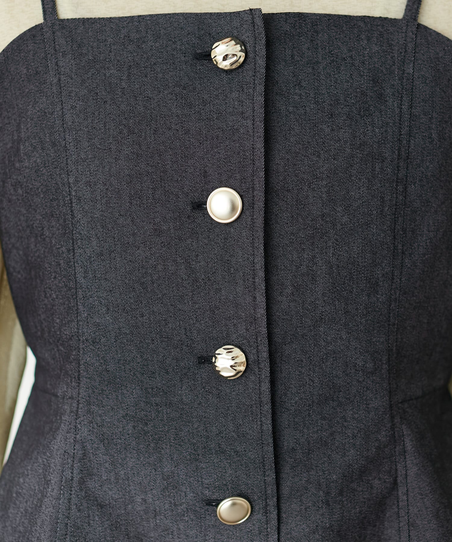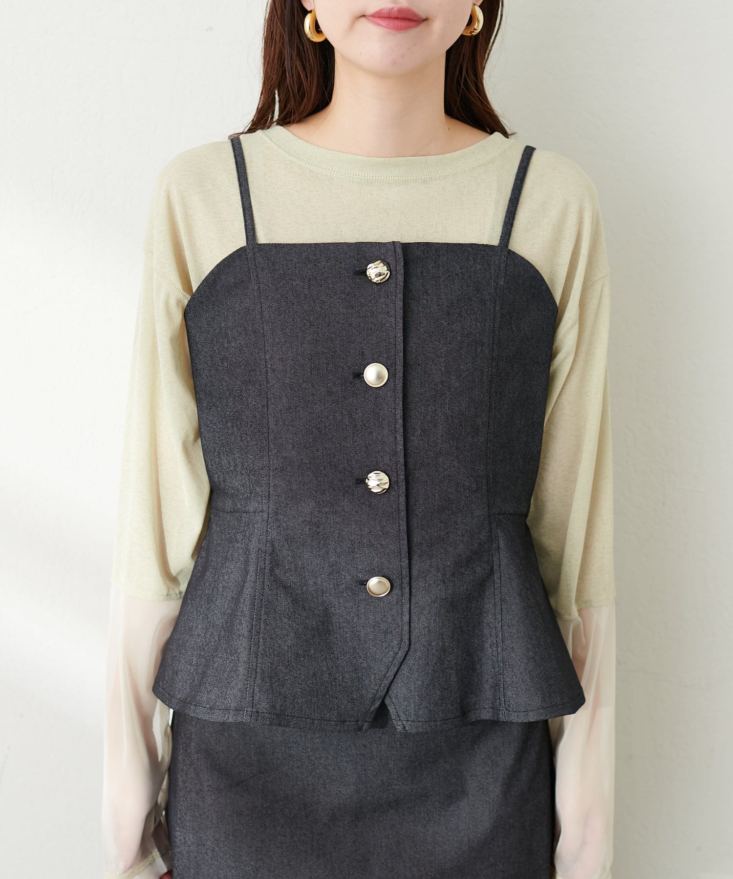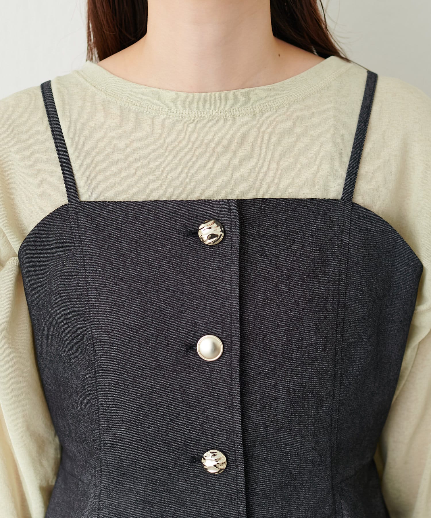 いろいろな種類の釦がアクセントになったキャミビスチェが登場。