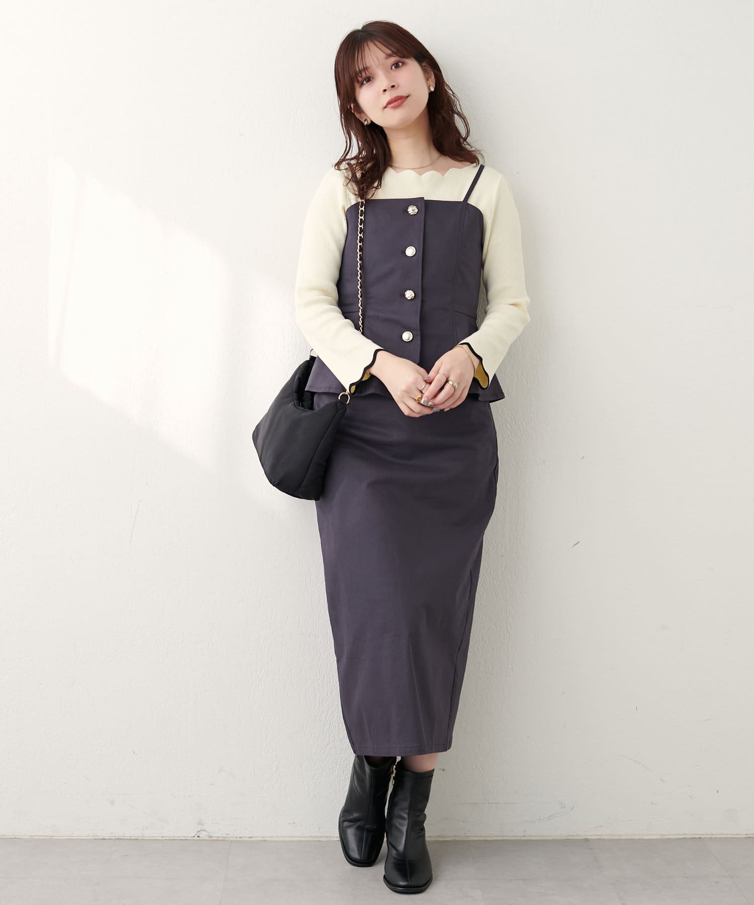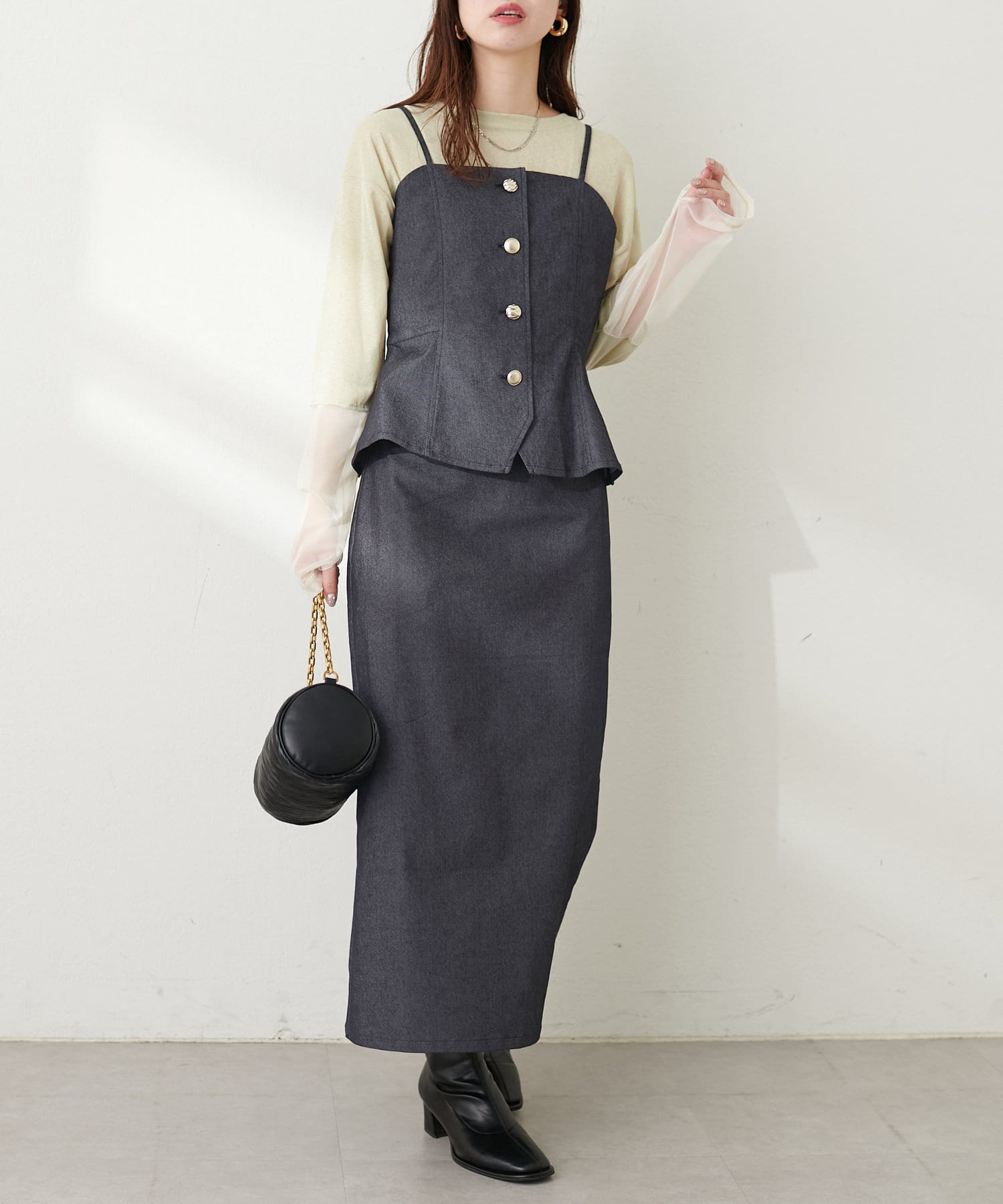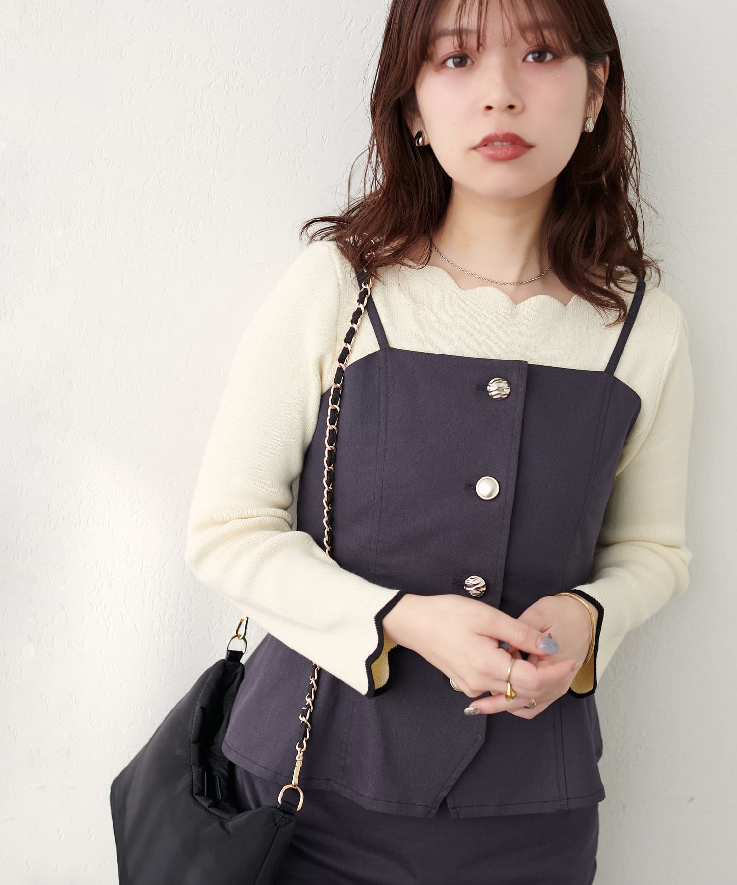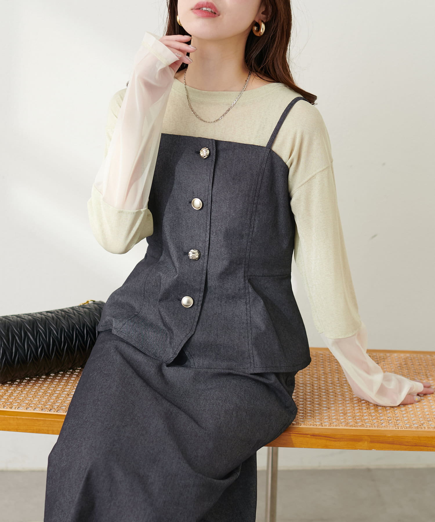 いろいろな種類の釦がアクセントになったキャミビスチェが登場。