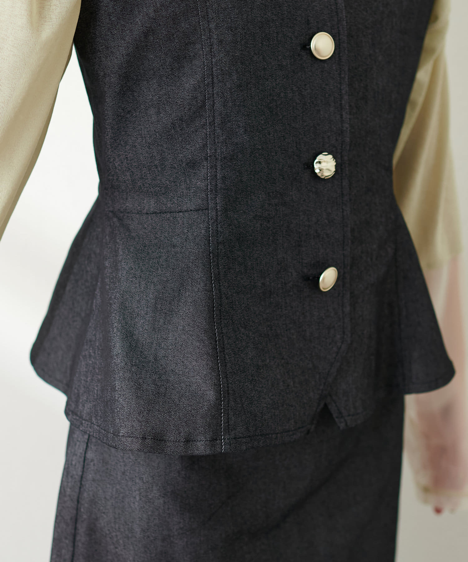 同素材のスカートとのセットアップ着用が可能。