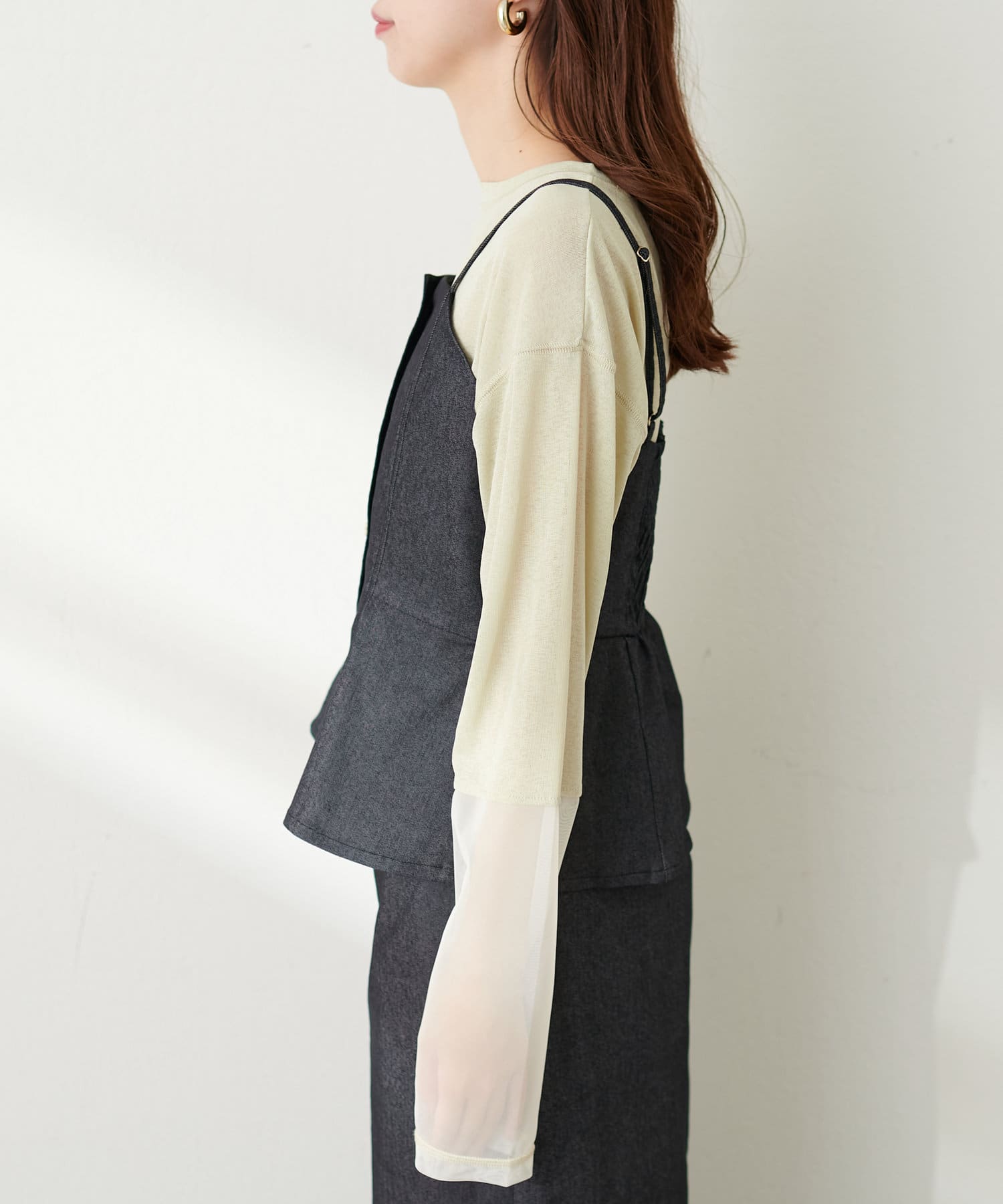 シアーカットソーの上にお召いただいたりするのがおすすめ。
