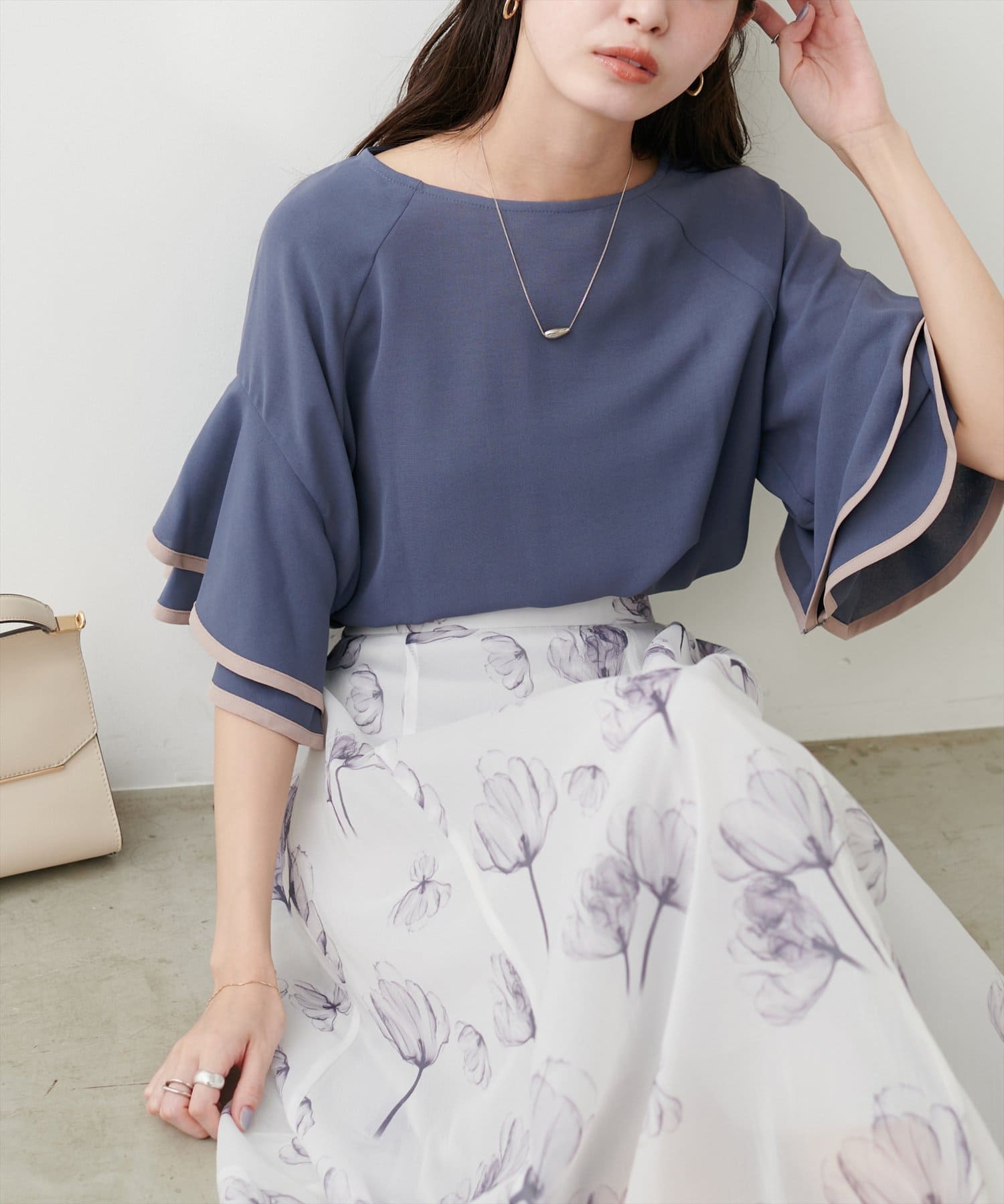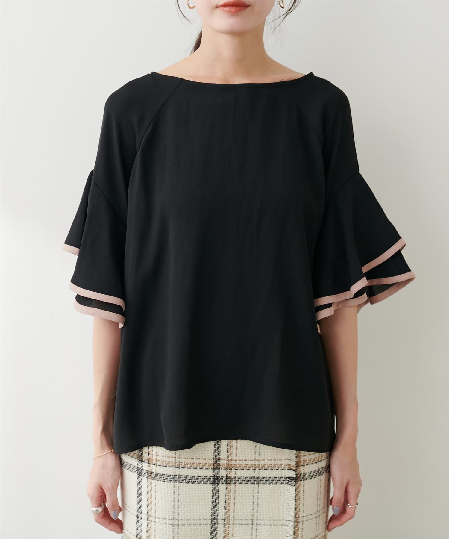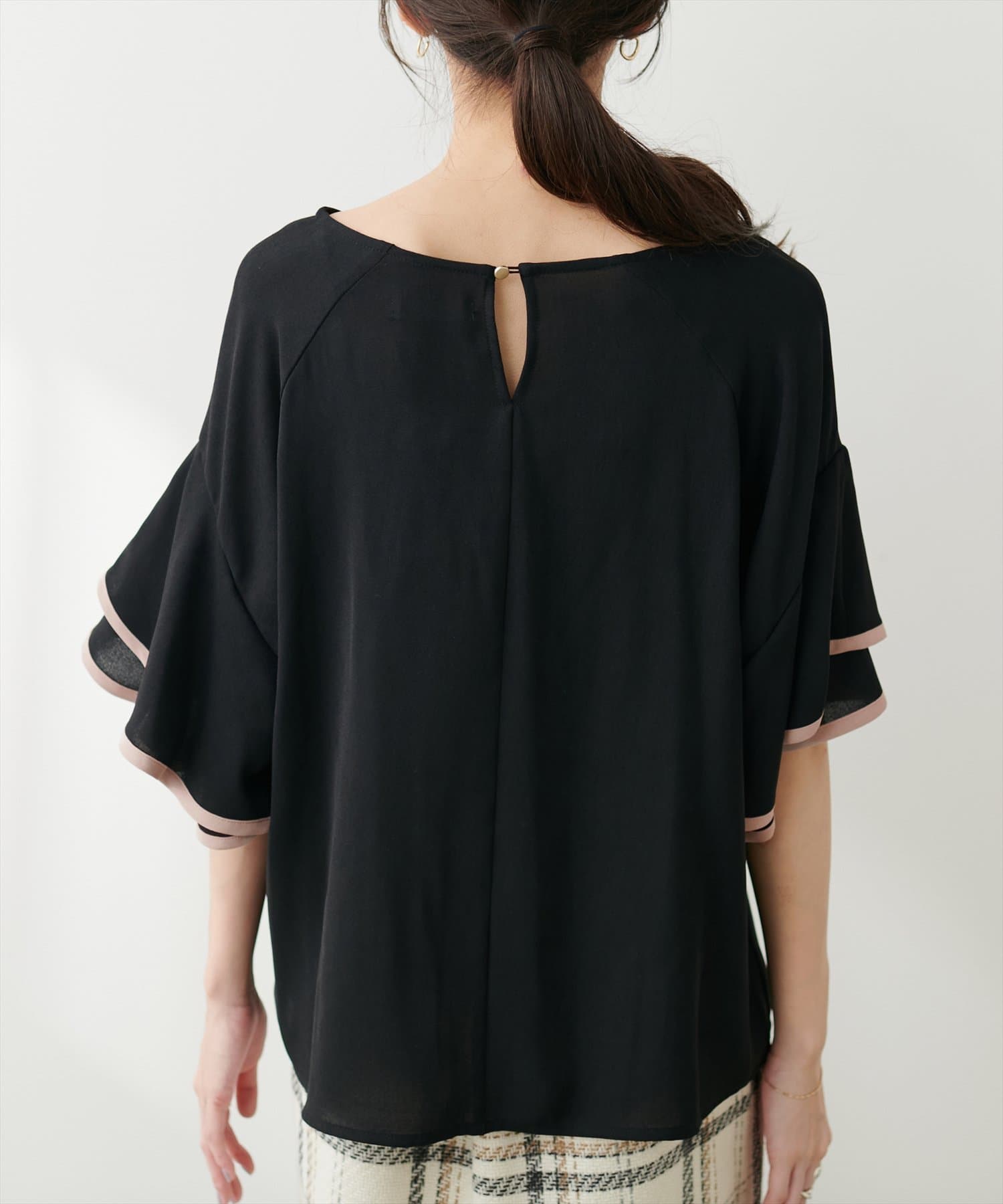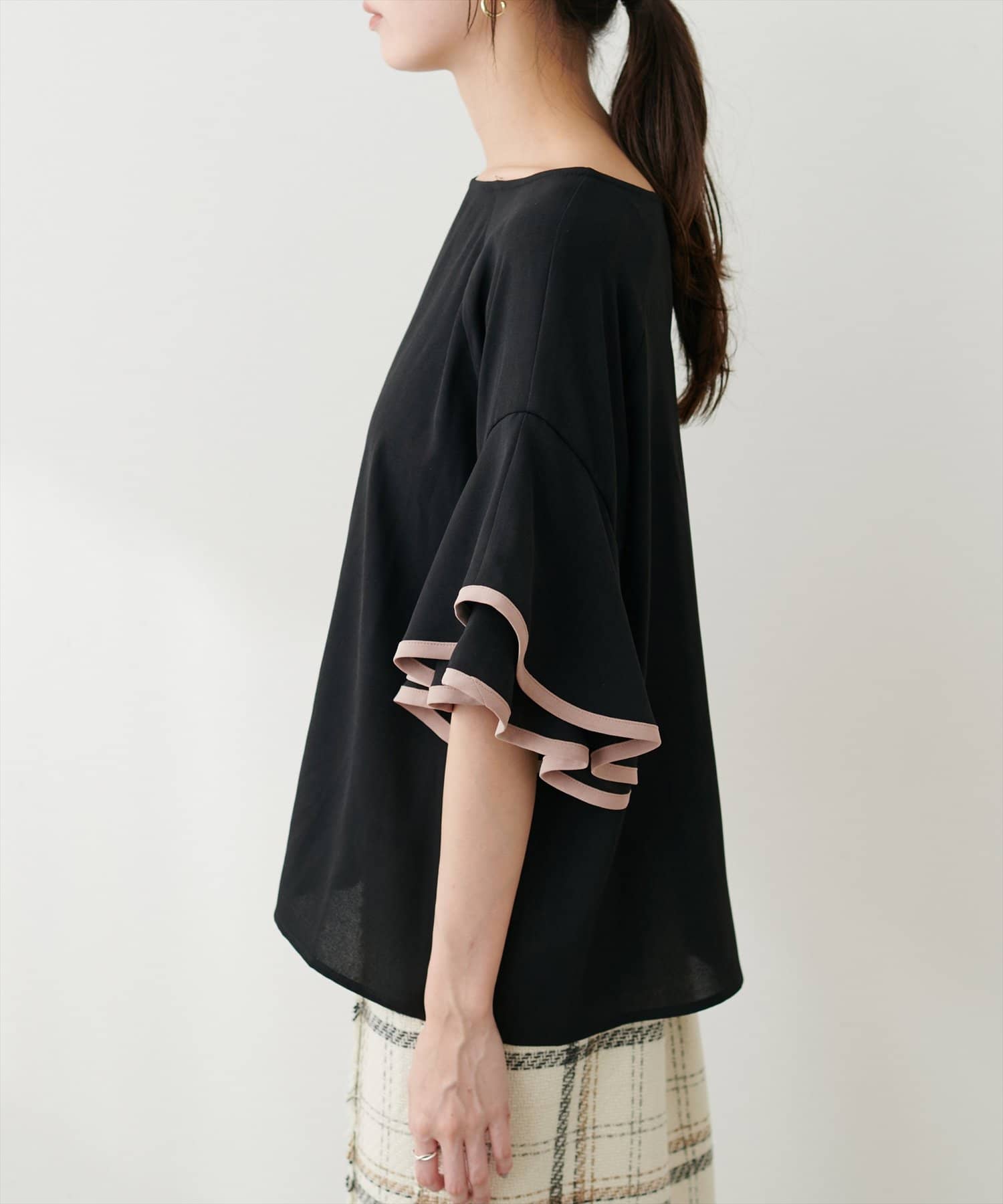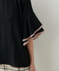 ラッフルフレア袖配色ブラウス