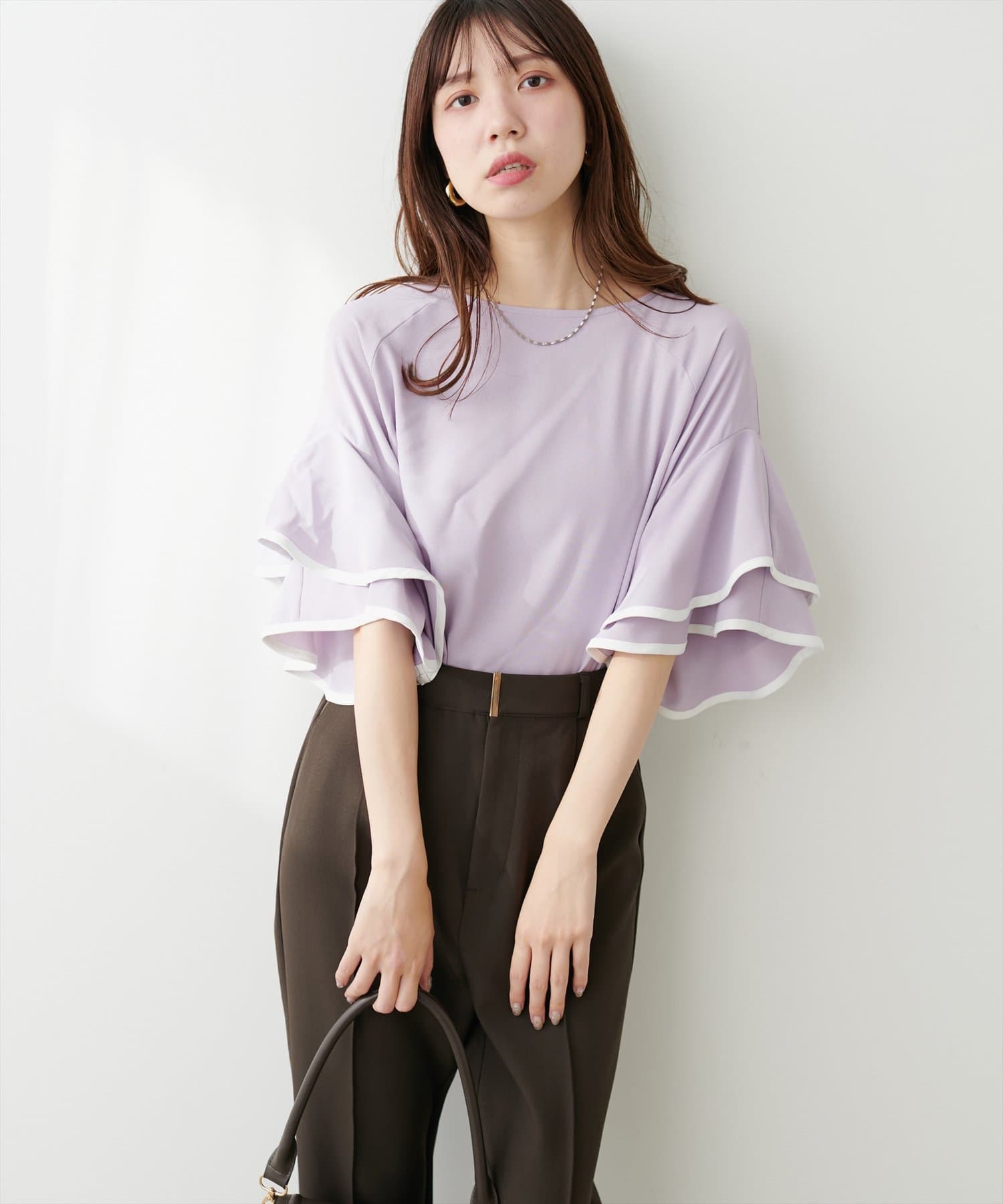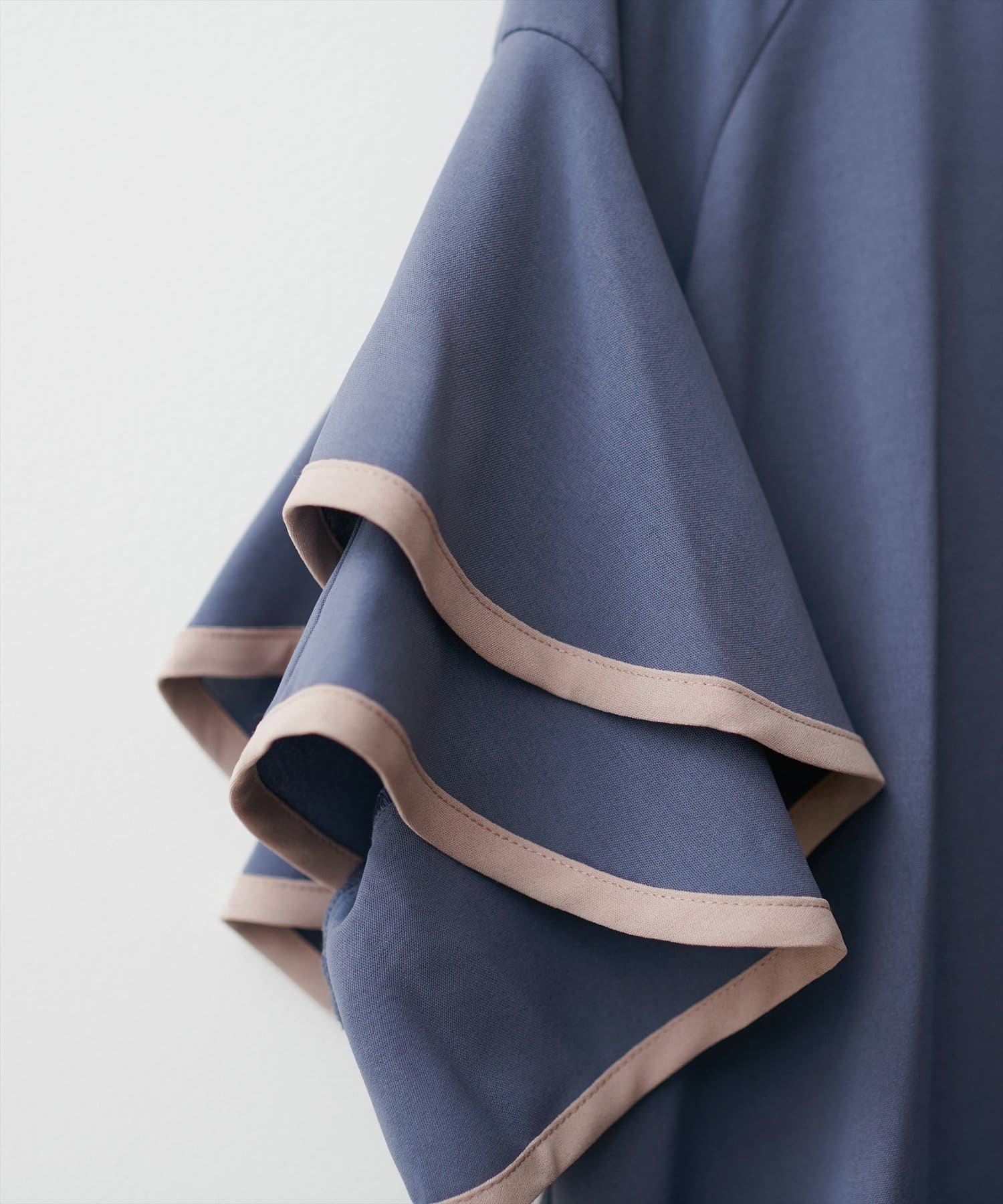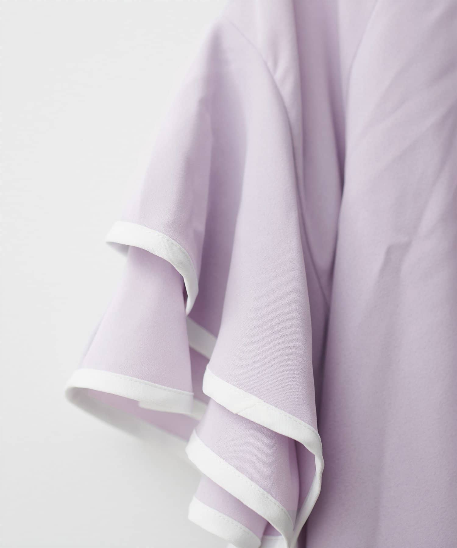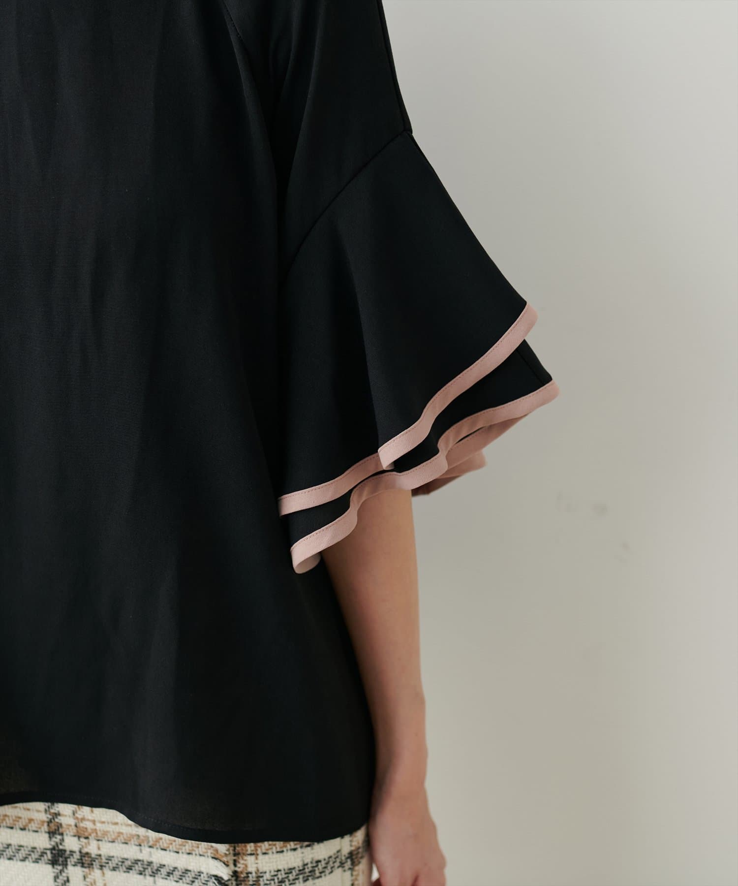 袖口ラッフルにパイピングが施されており、無地でも目を惹くデザイン。