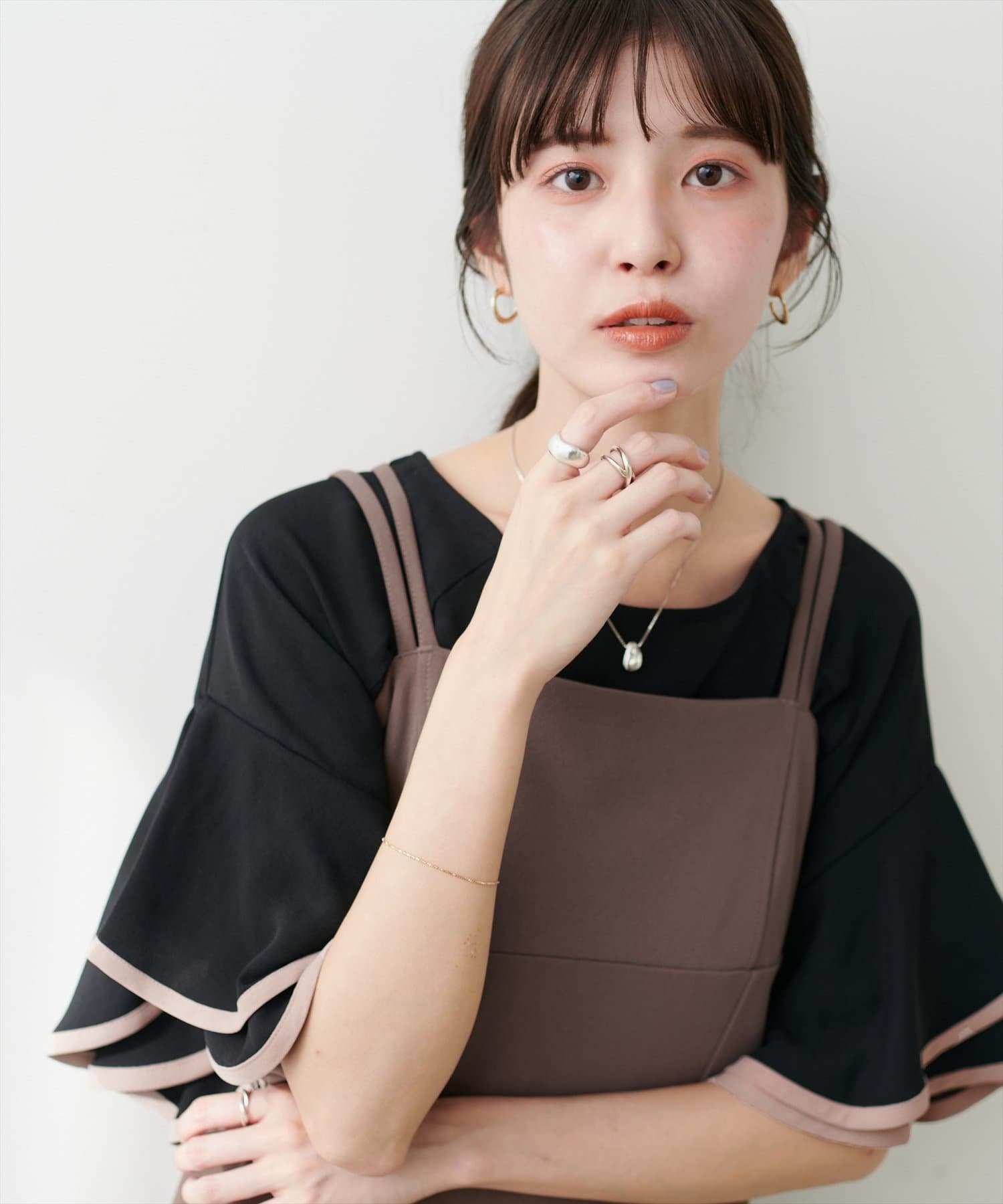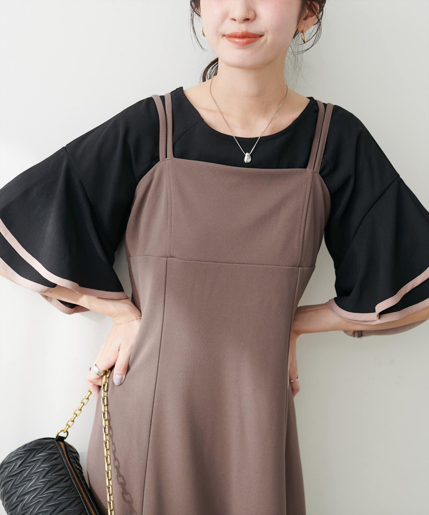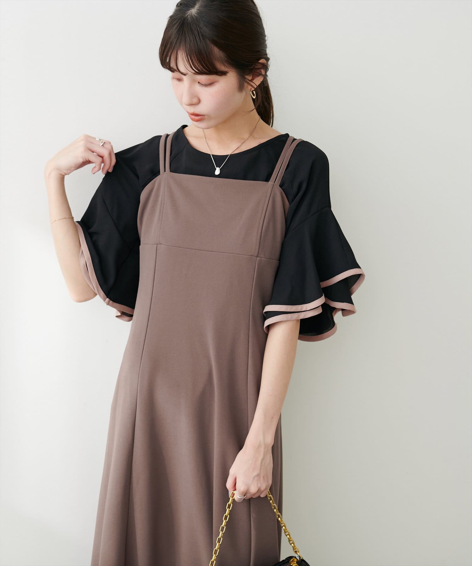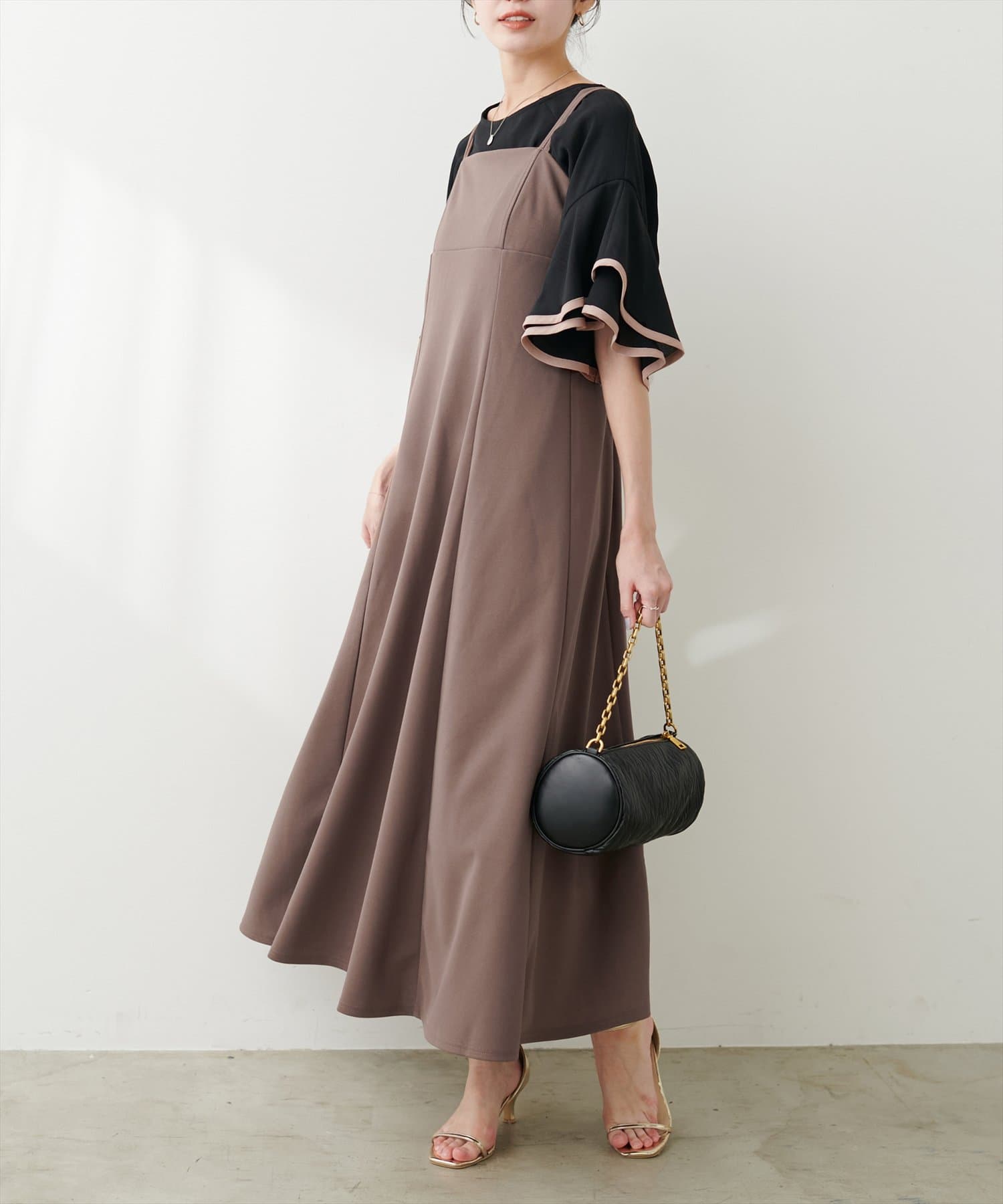 ラッフルフリルのデザインが引き立つ、キャミワンピースやサロペット合わせもおすすめです。