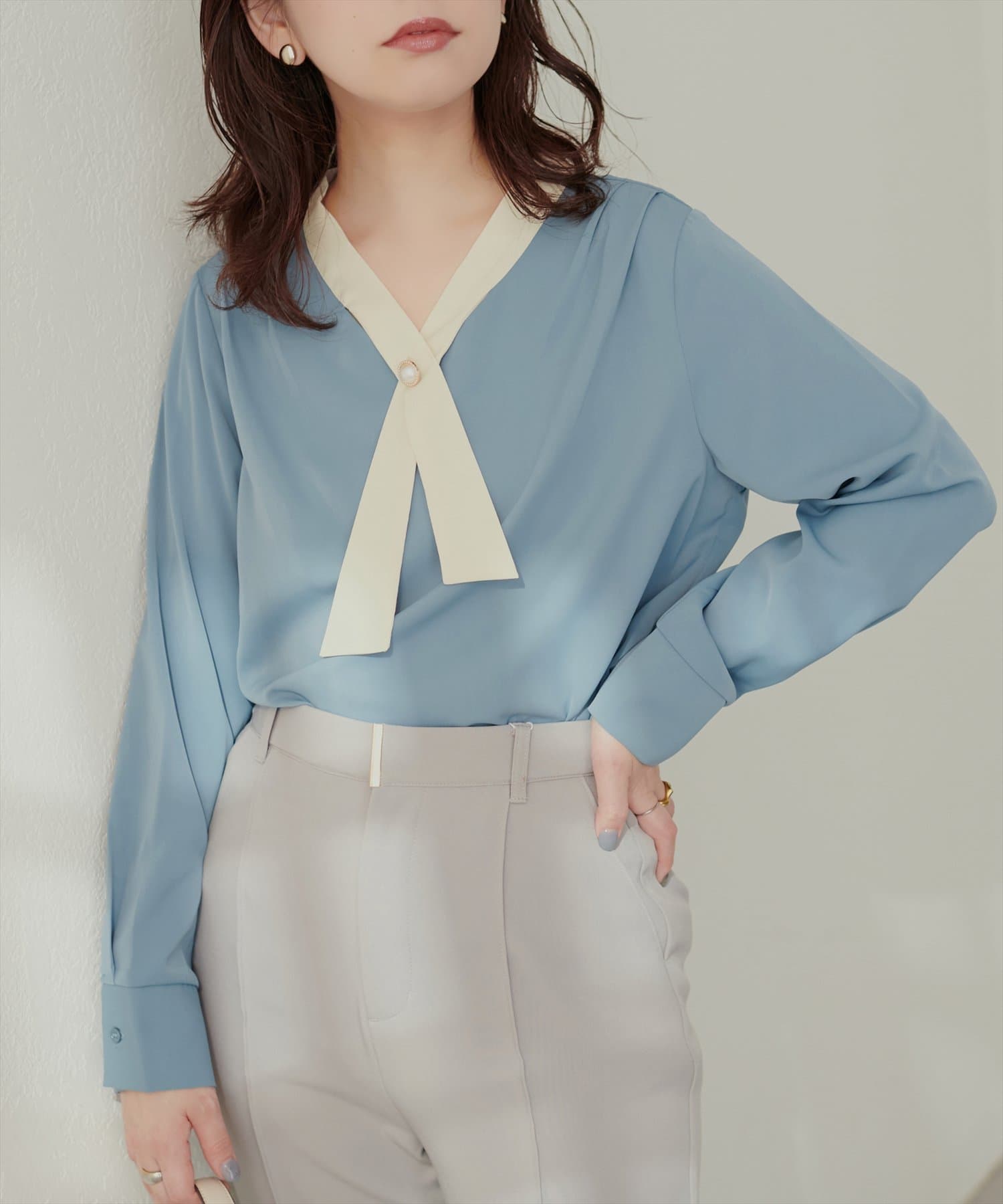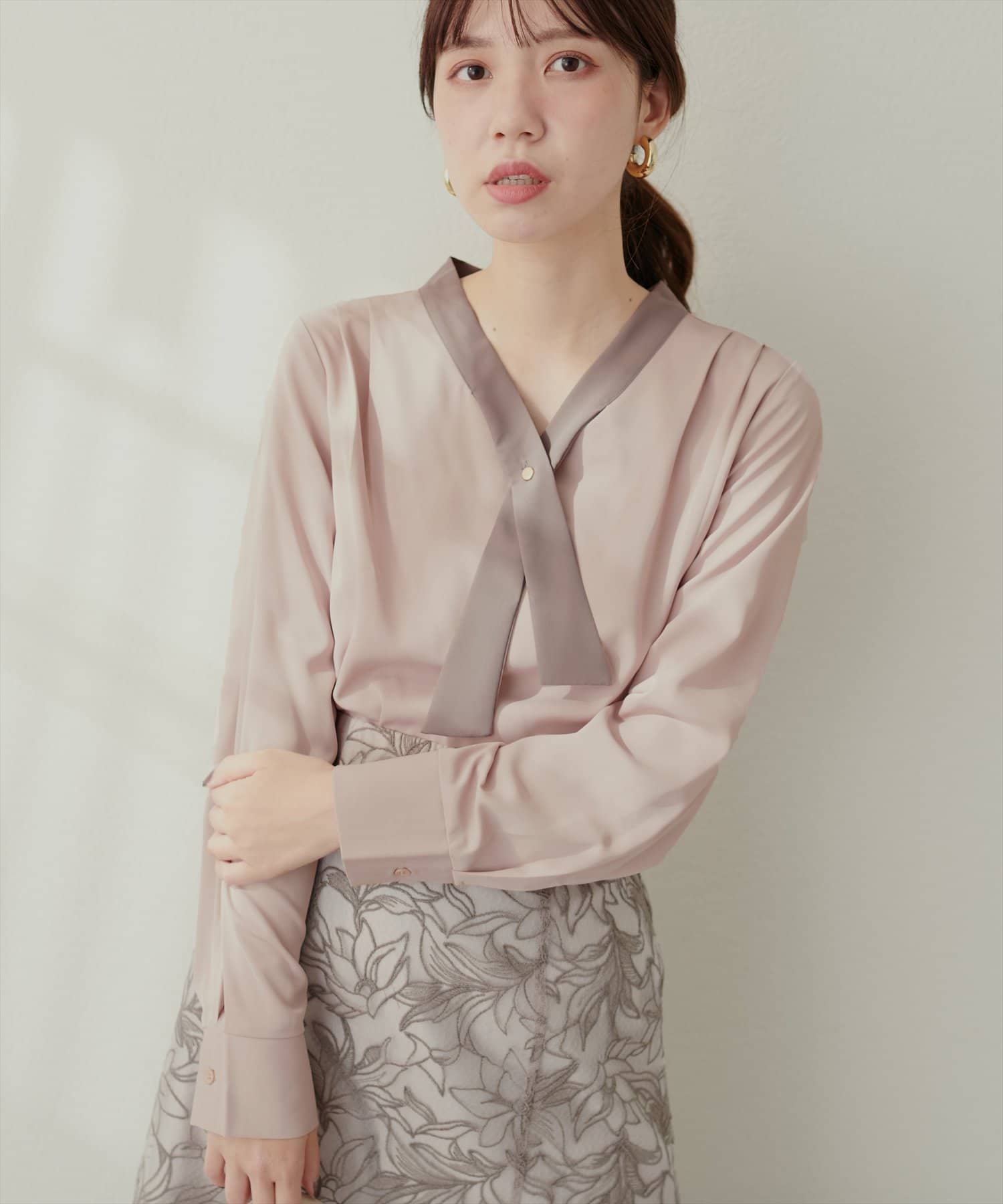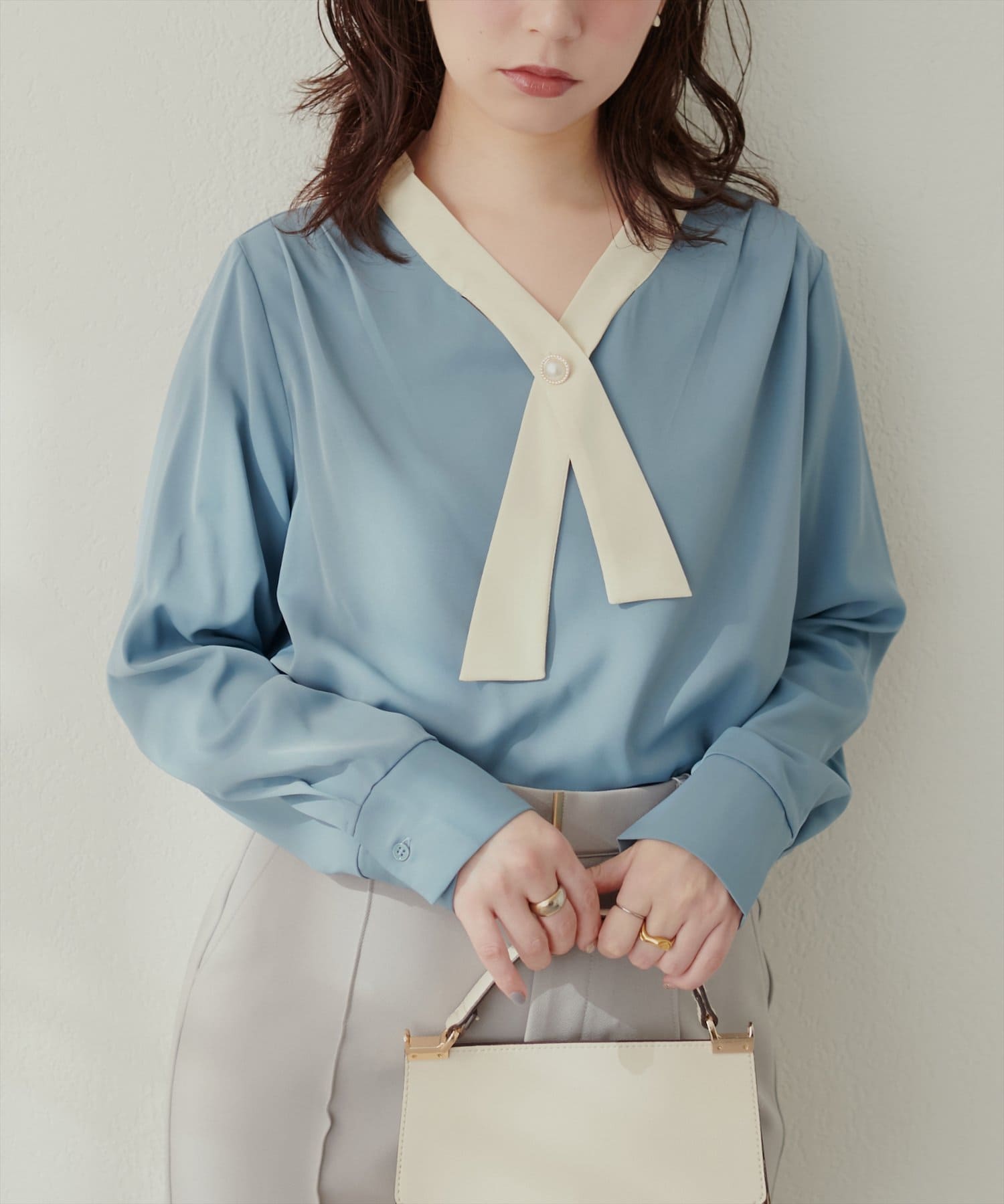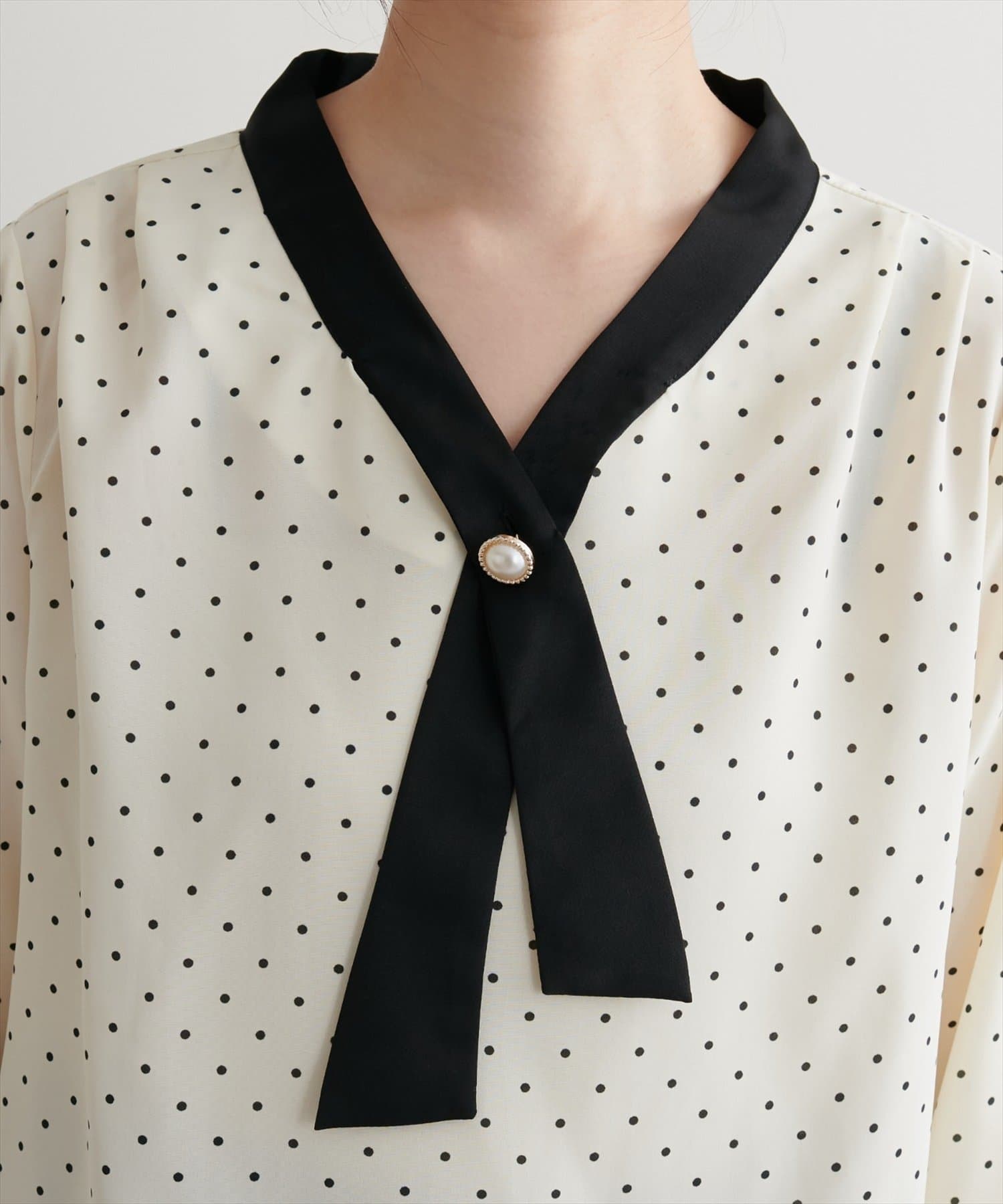 0332040140 WEB限定 / osonoパールリバー釦クロスボータイブラウス