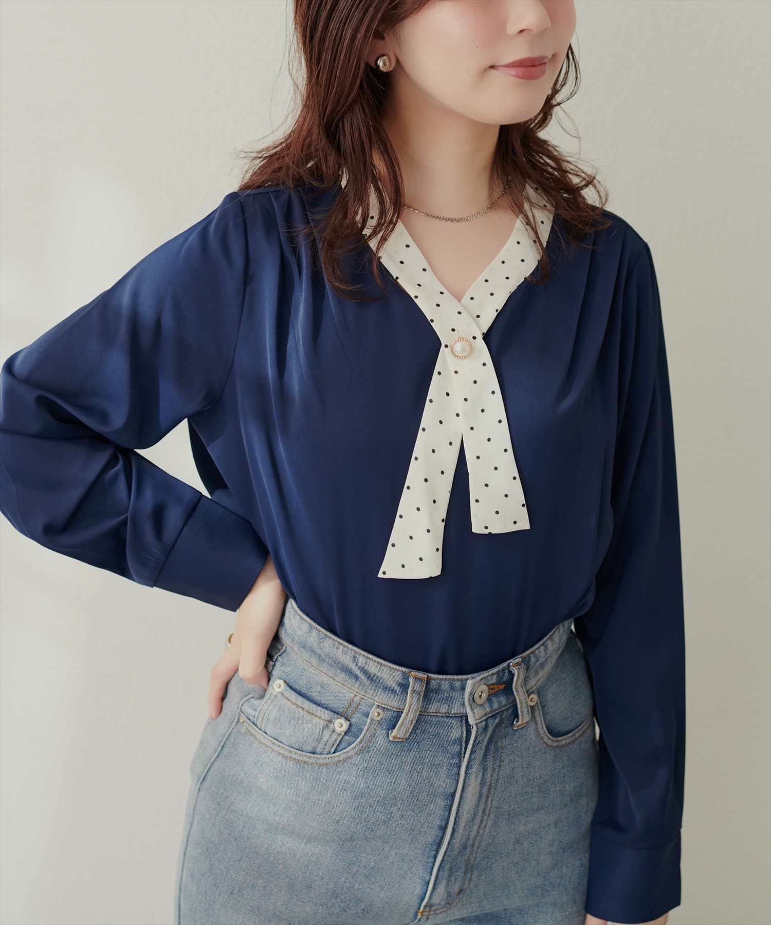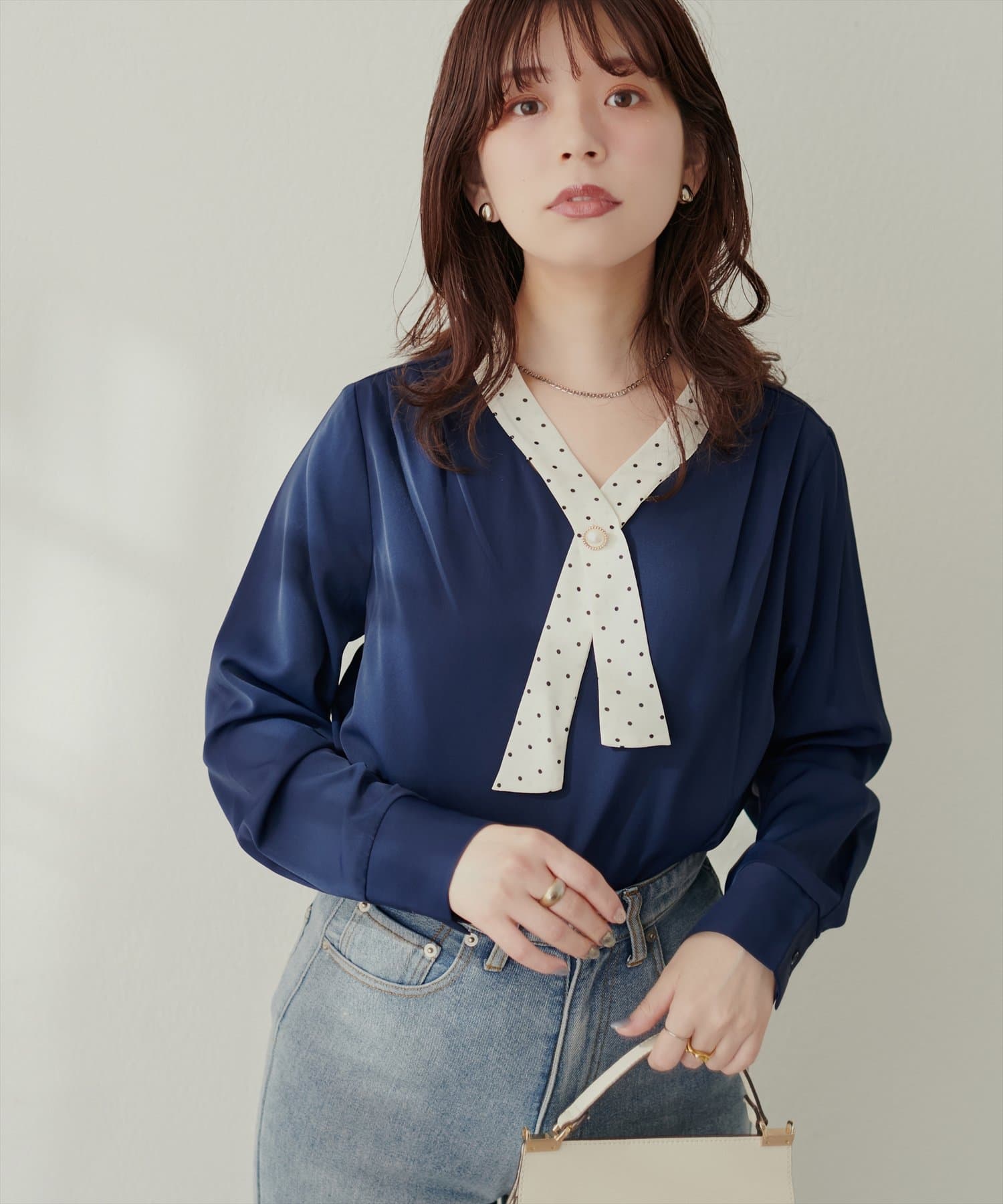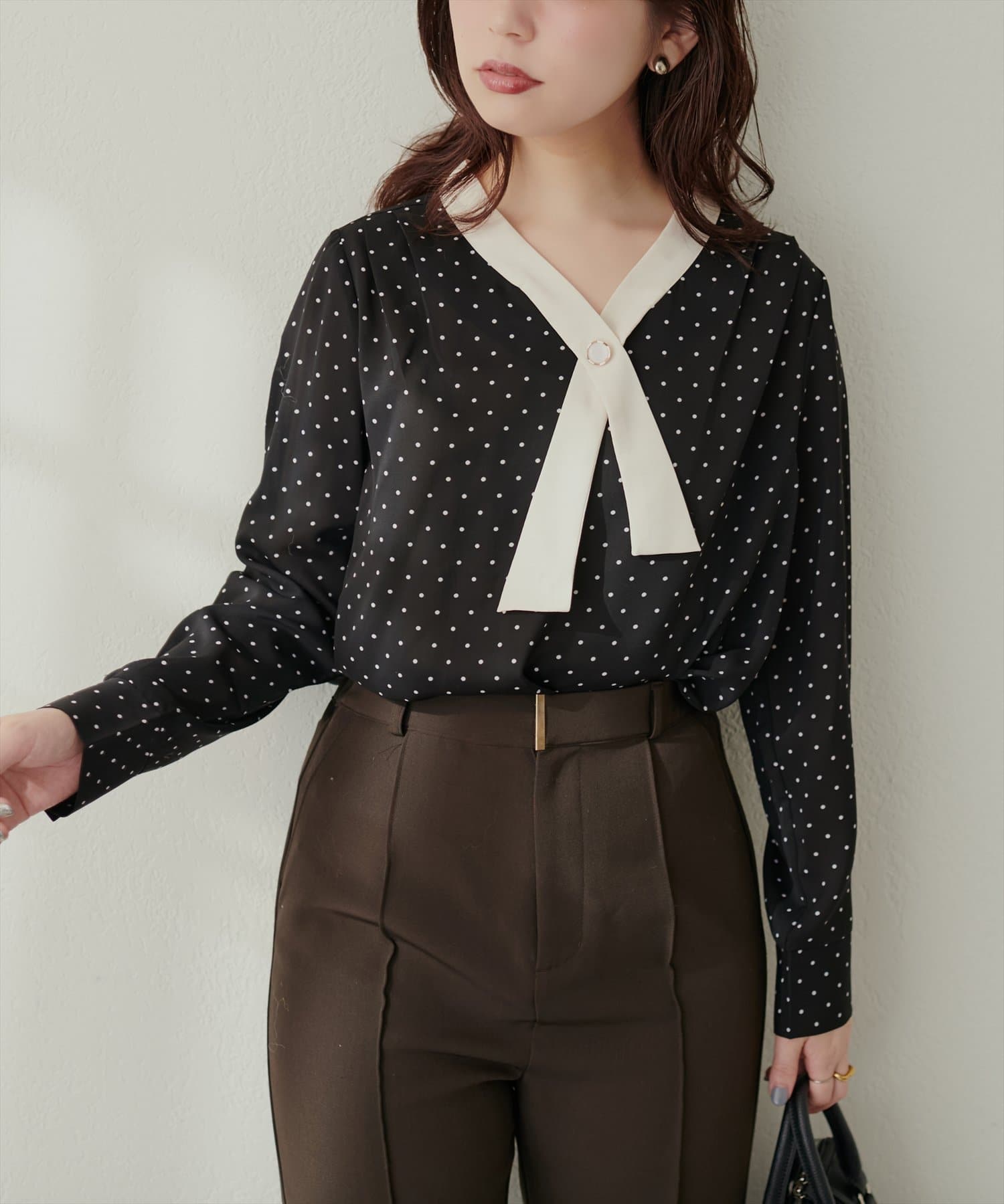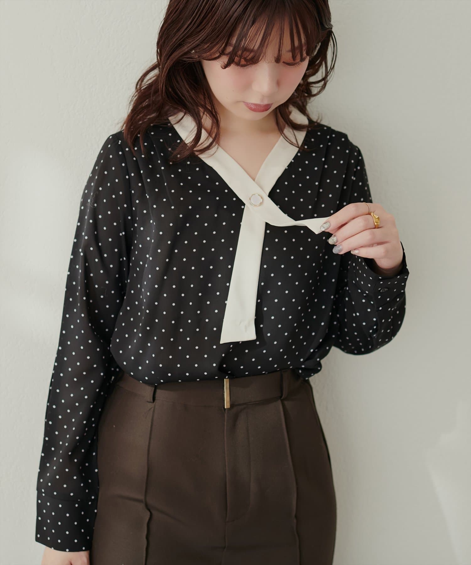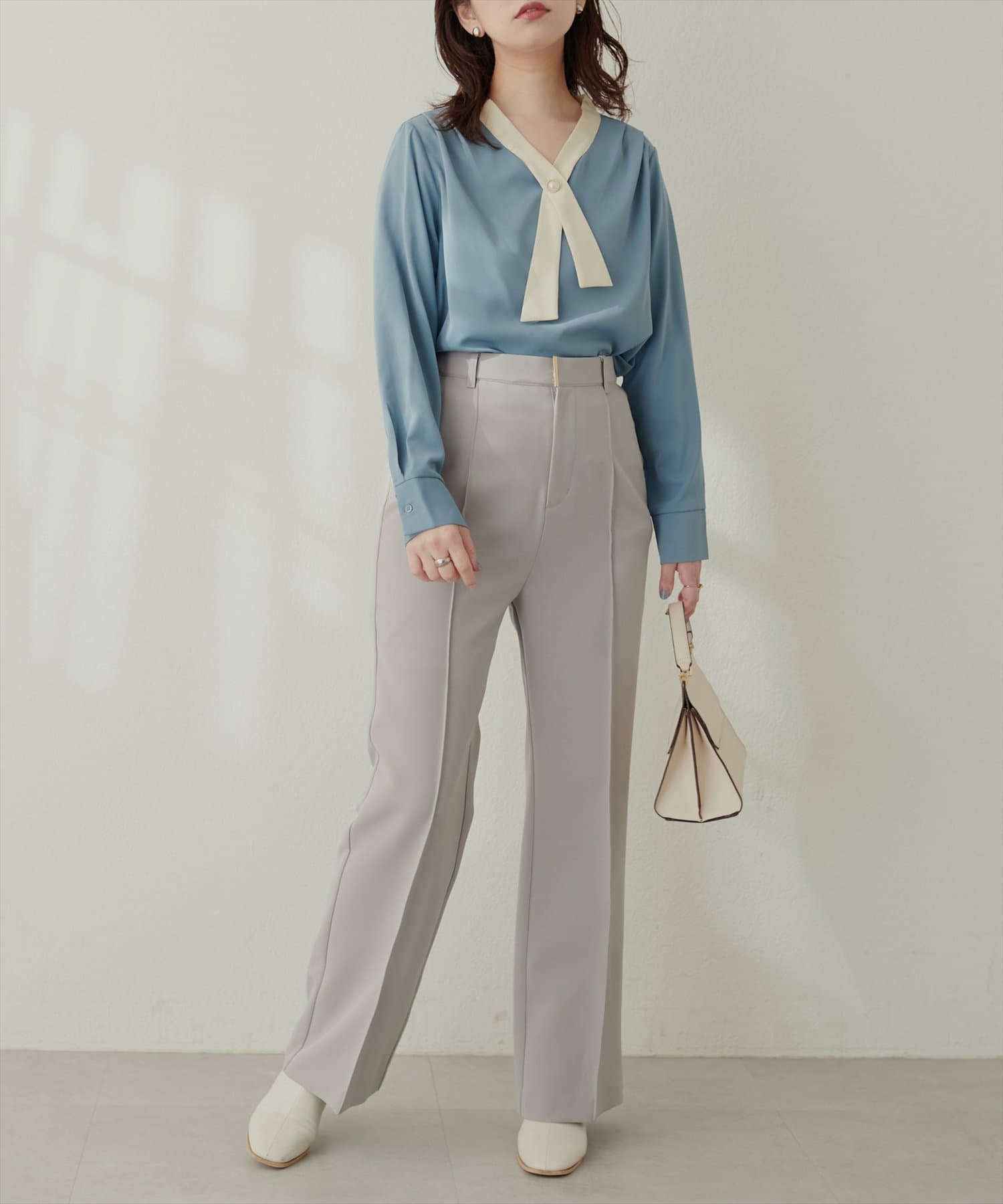 0332040140 WEB限定 / osonoパールリバー釦クロスボータイブラウス