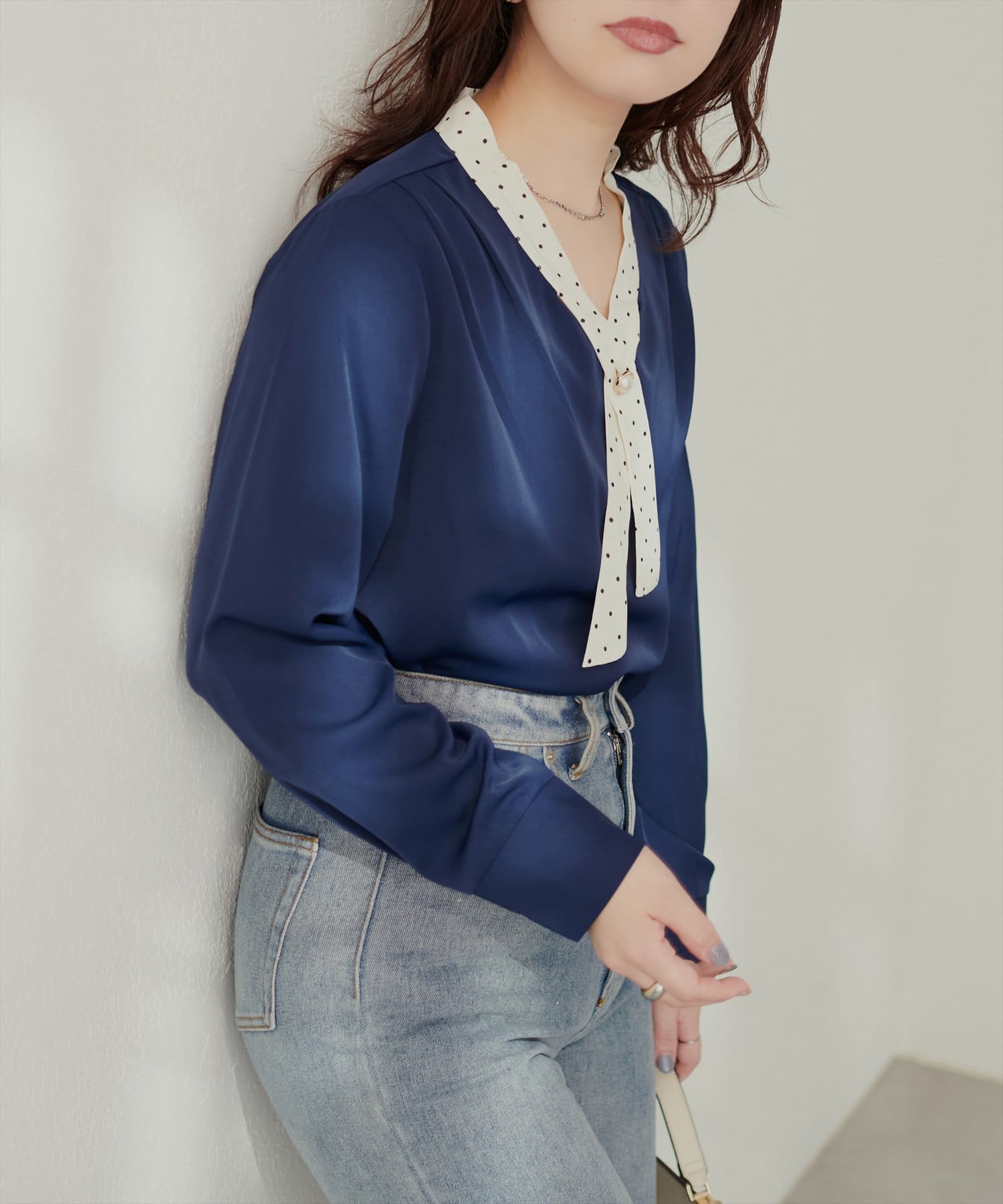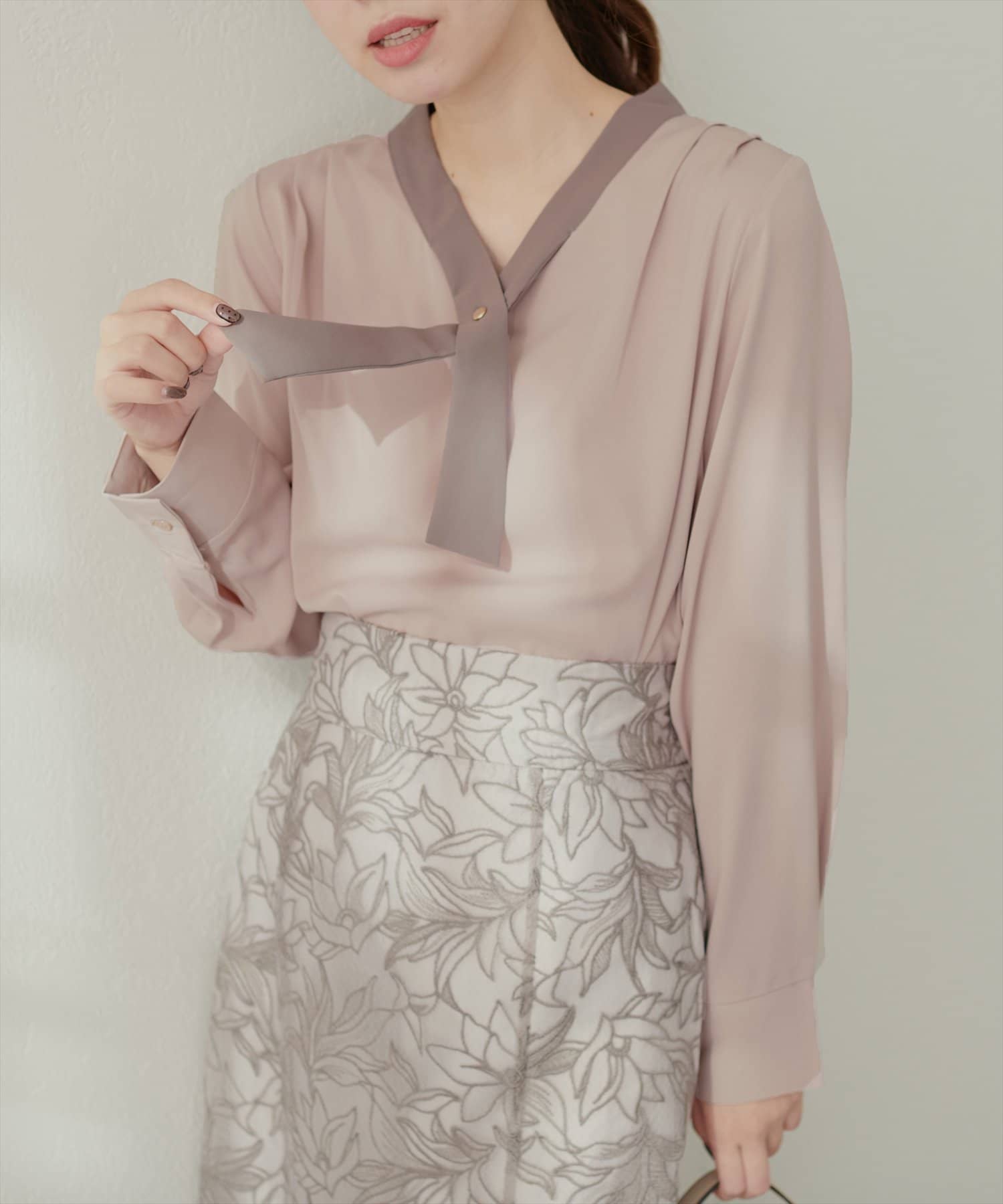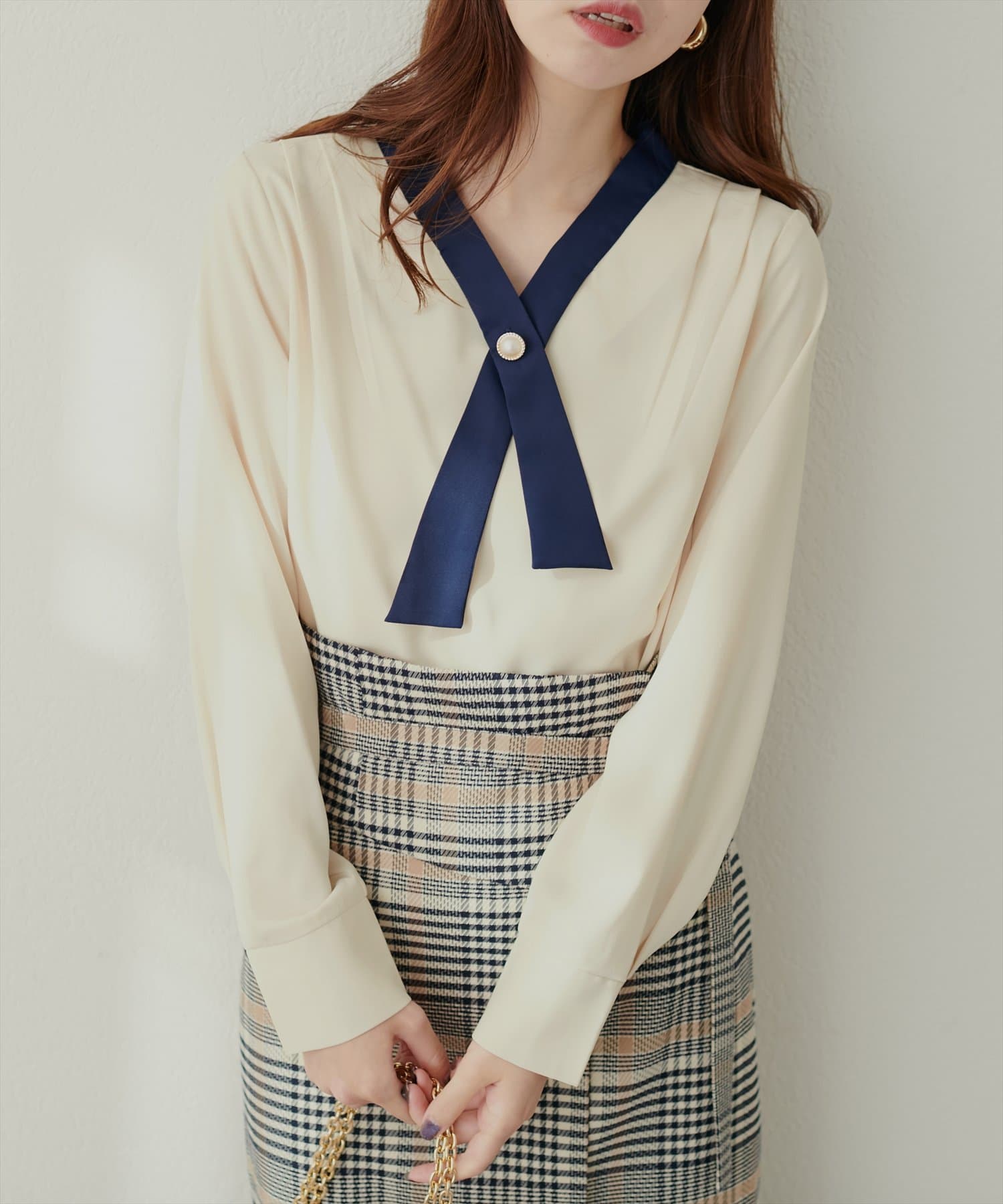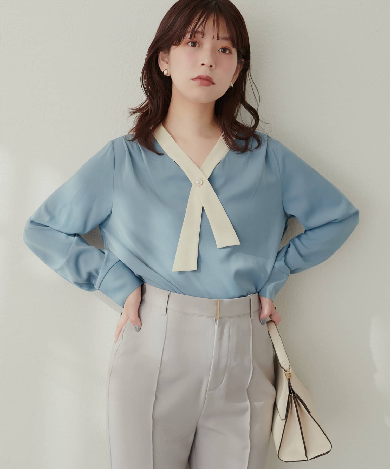 0332040140 WEB限定 / osonoパールリバー釦クロスボータイブラウス