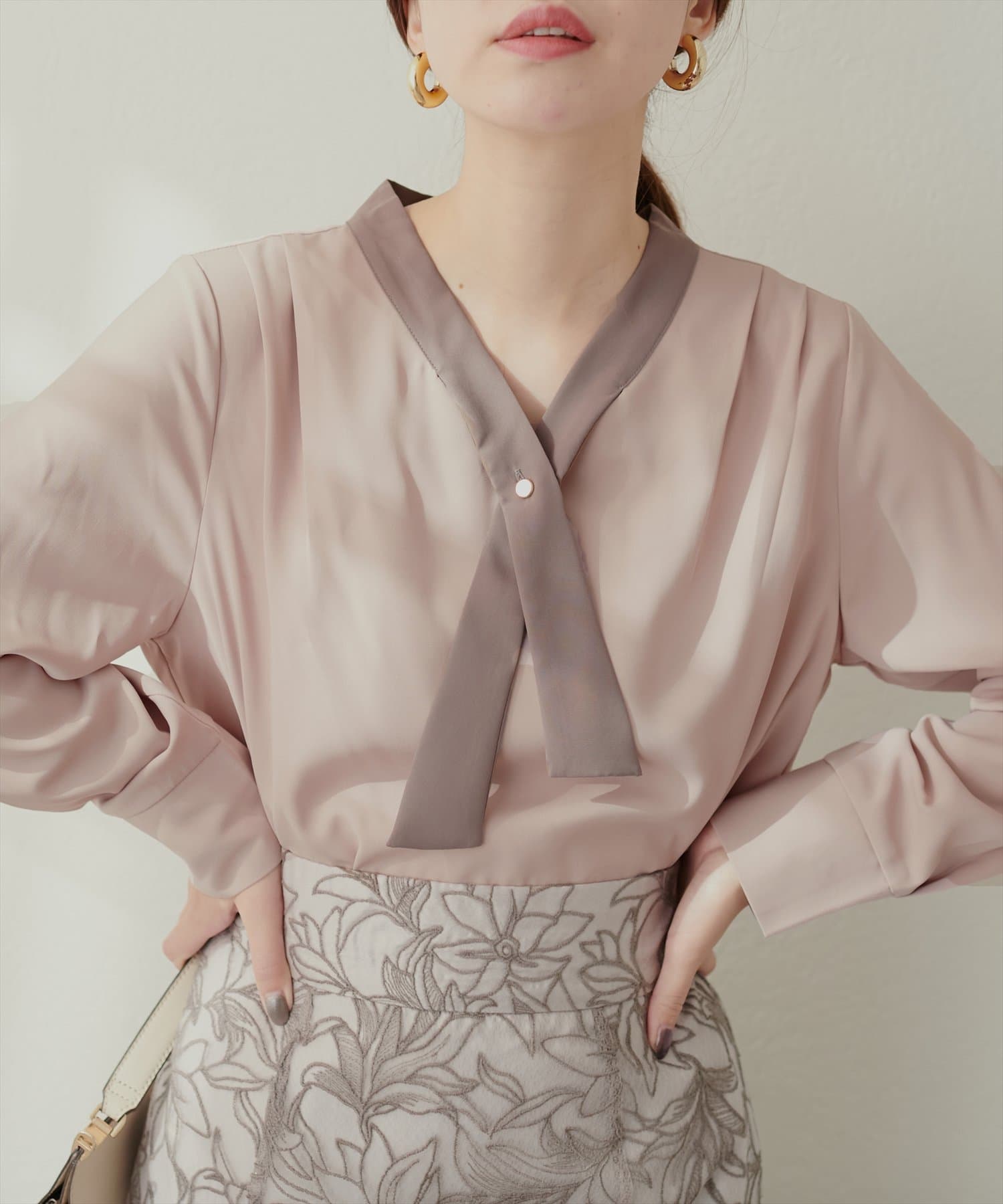 osonoパールリバー釦クロスボータイブラウス