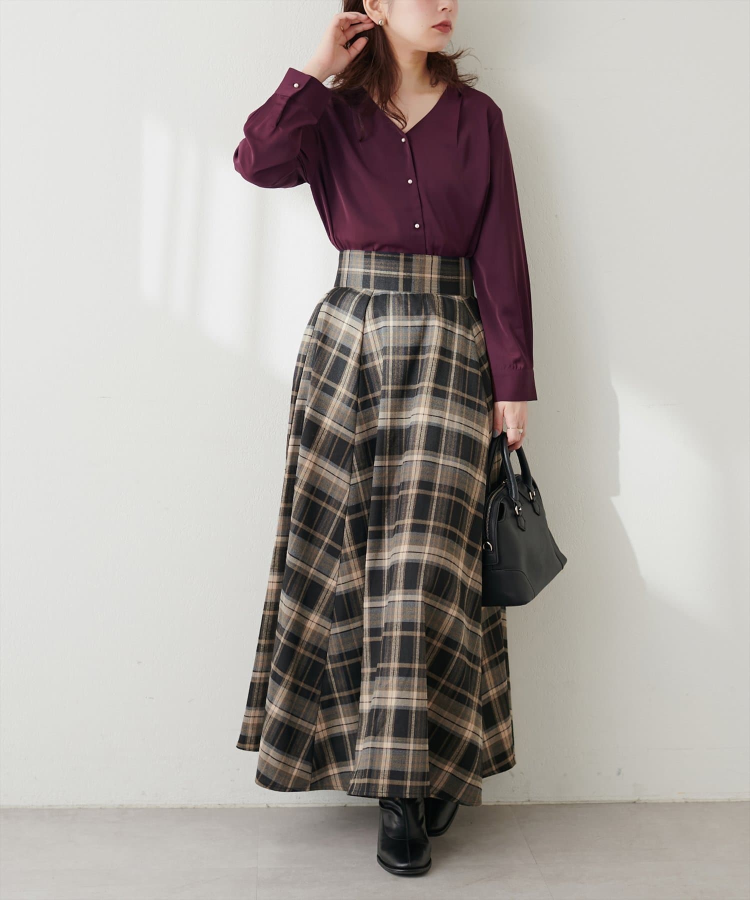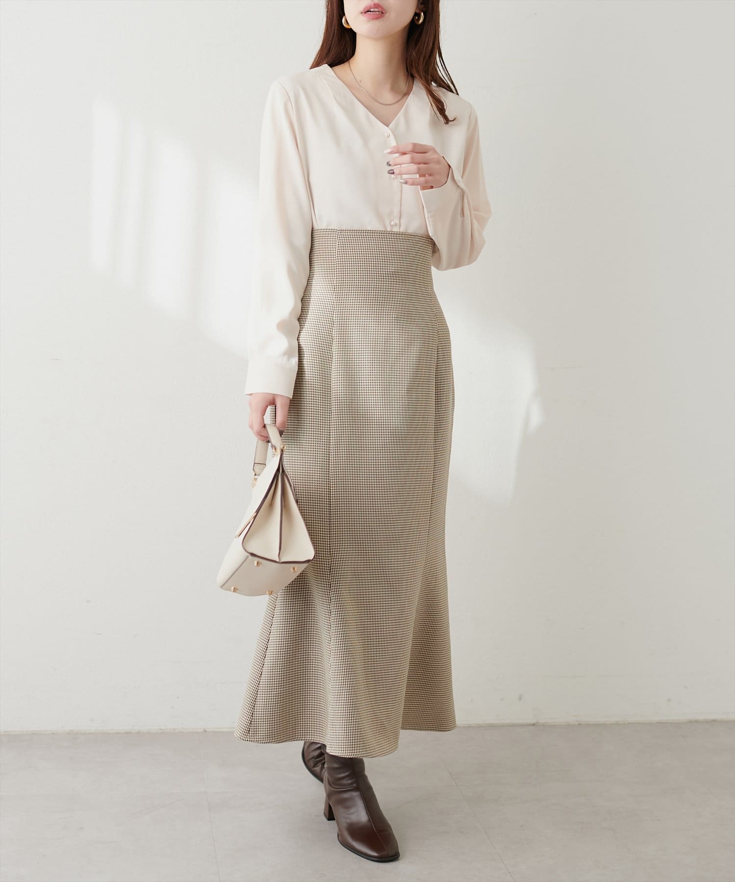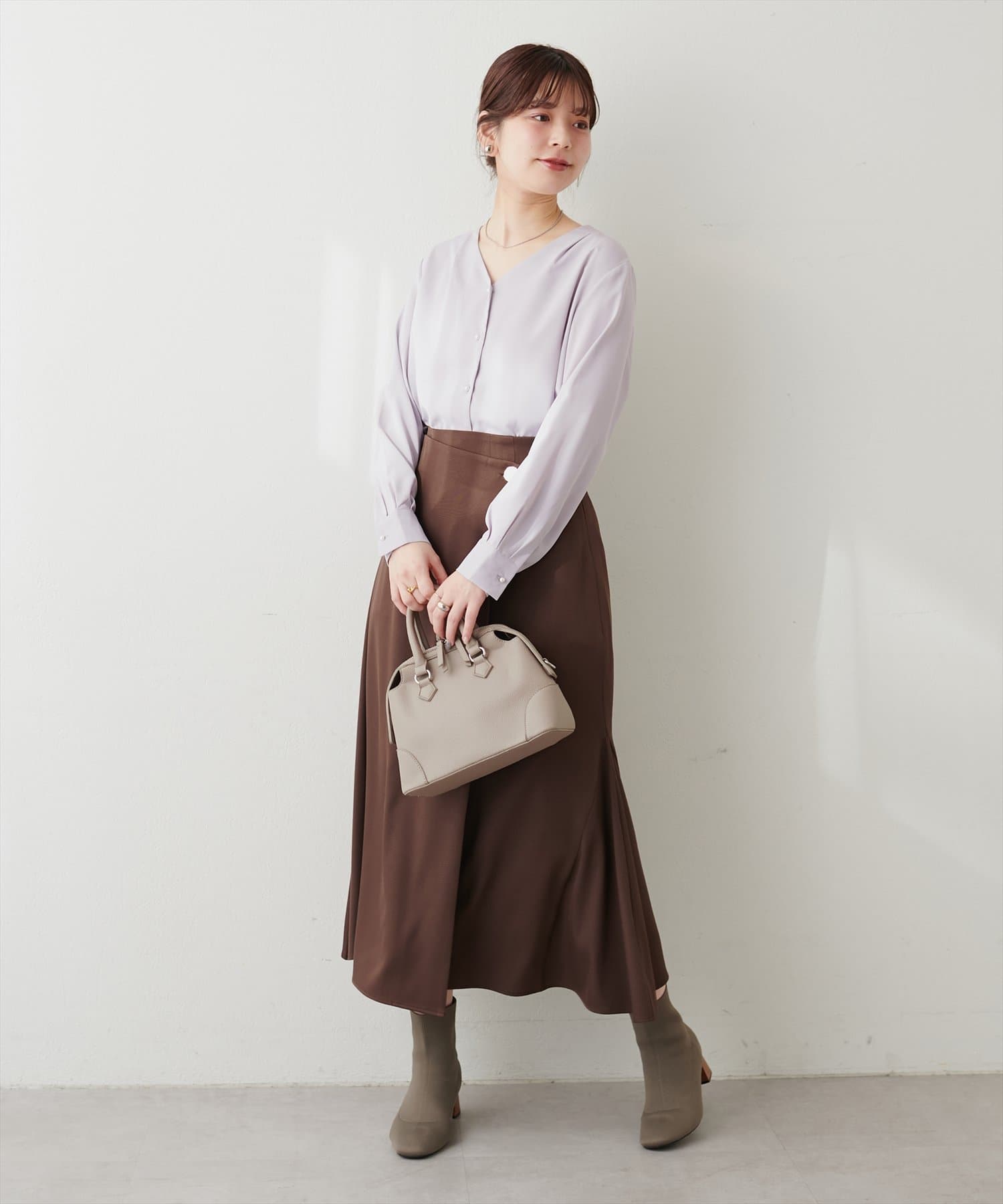 マーメイドシルエットやフレアラインのスカートにウエストインして、