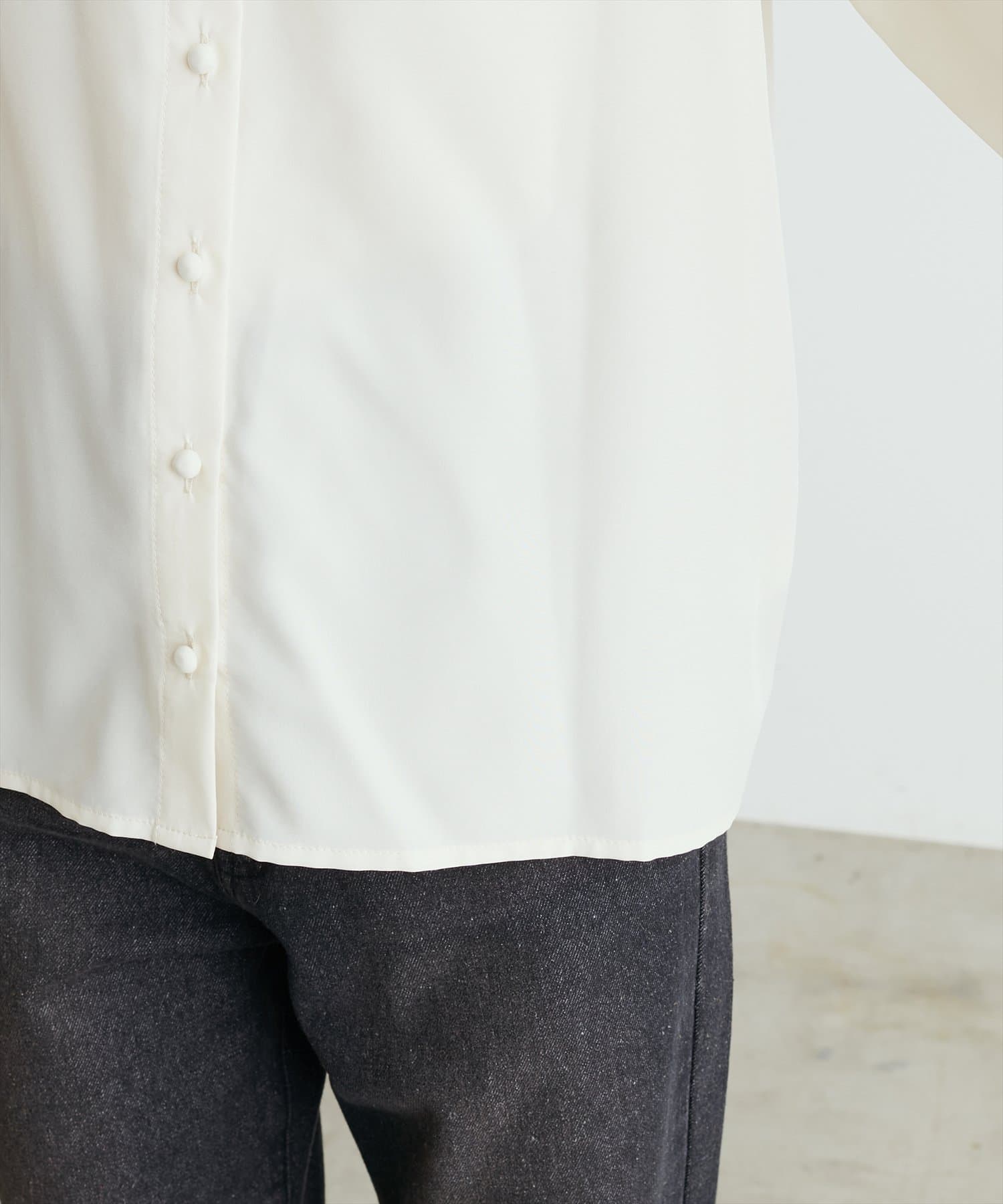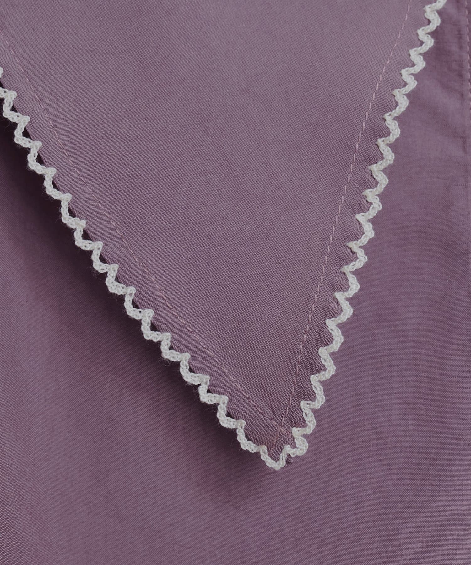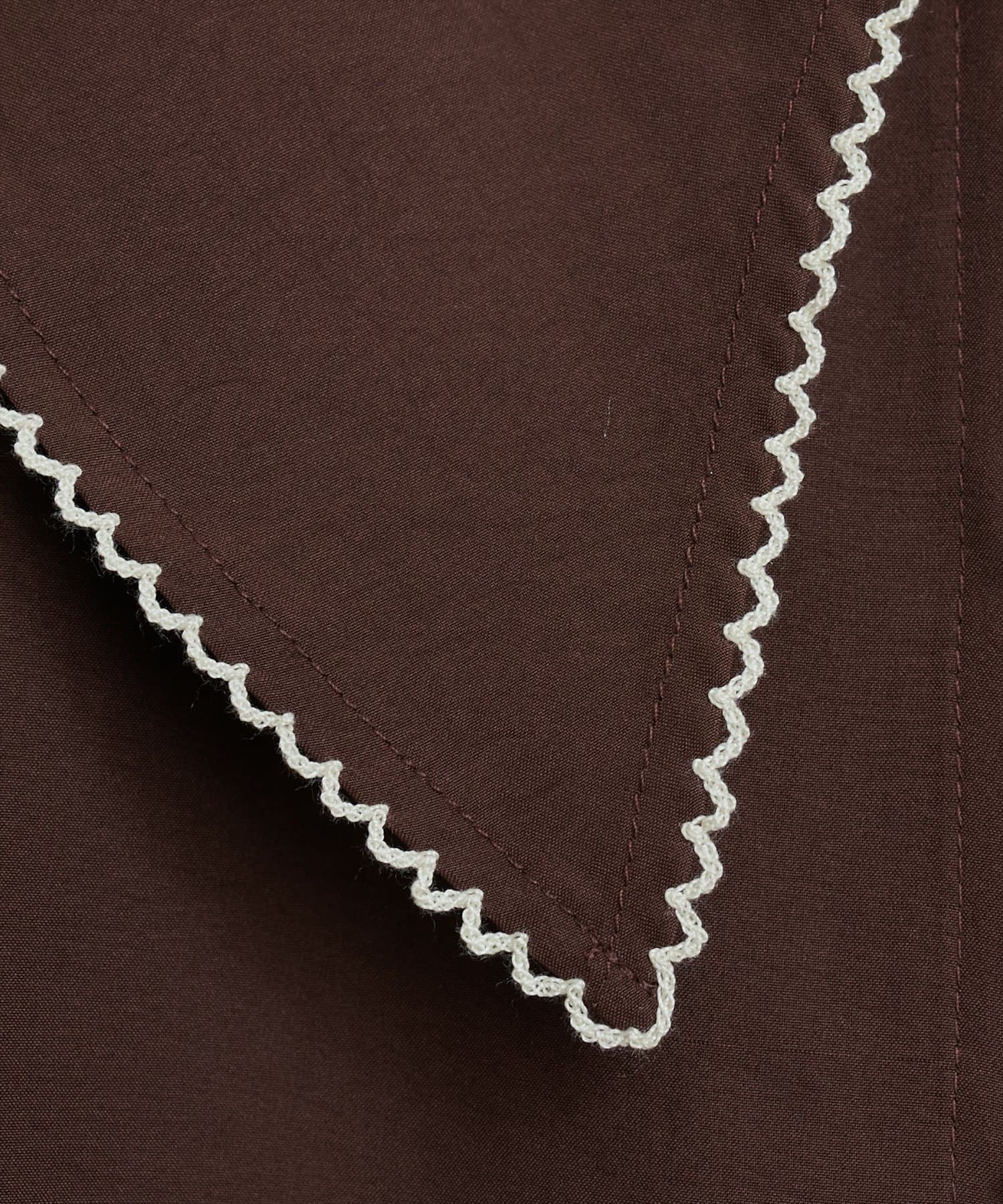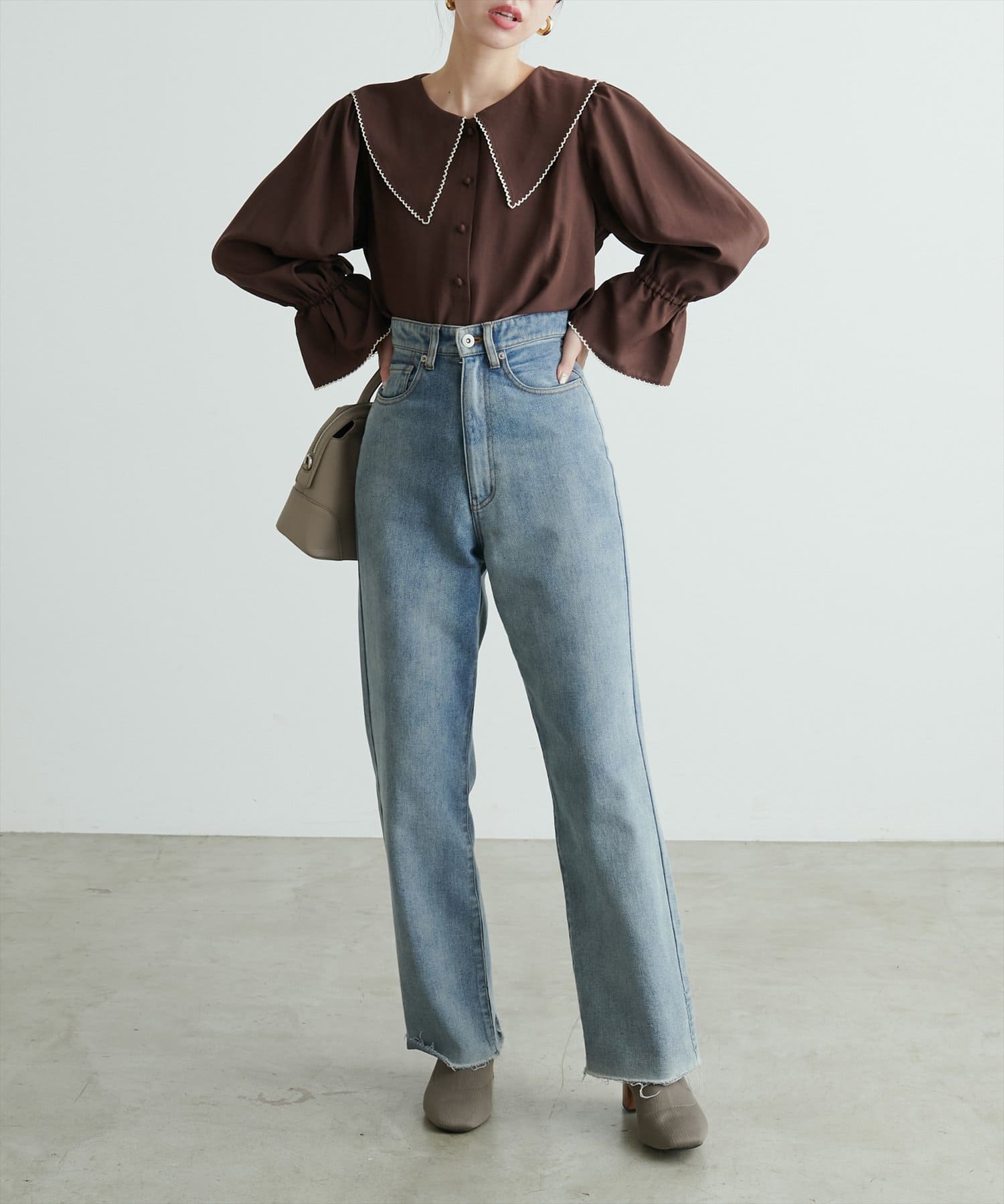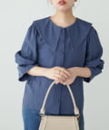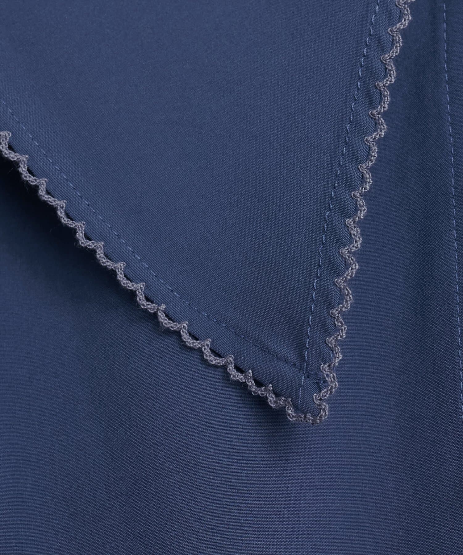 衿端と袖口にあしらったスカラップ刺繍がキャチーなブラウス。