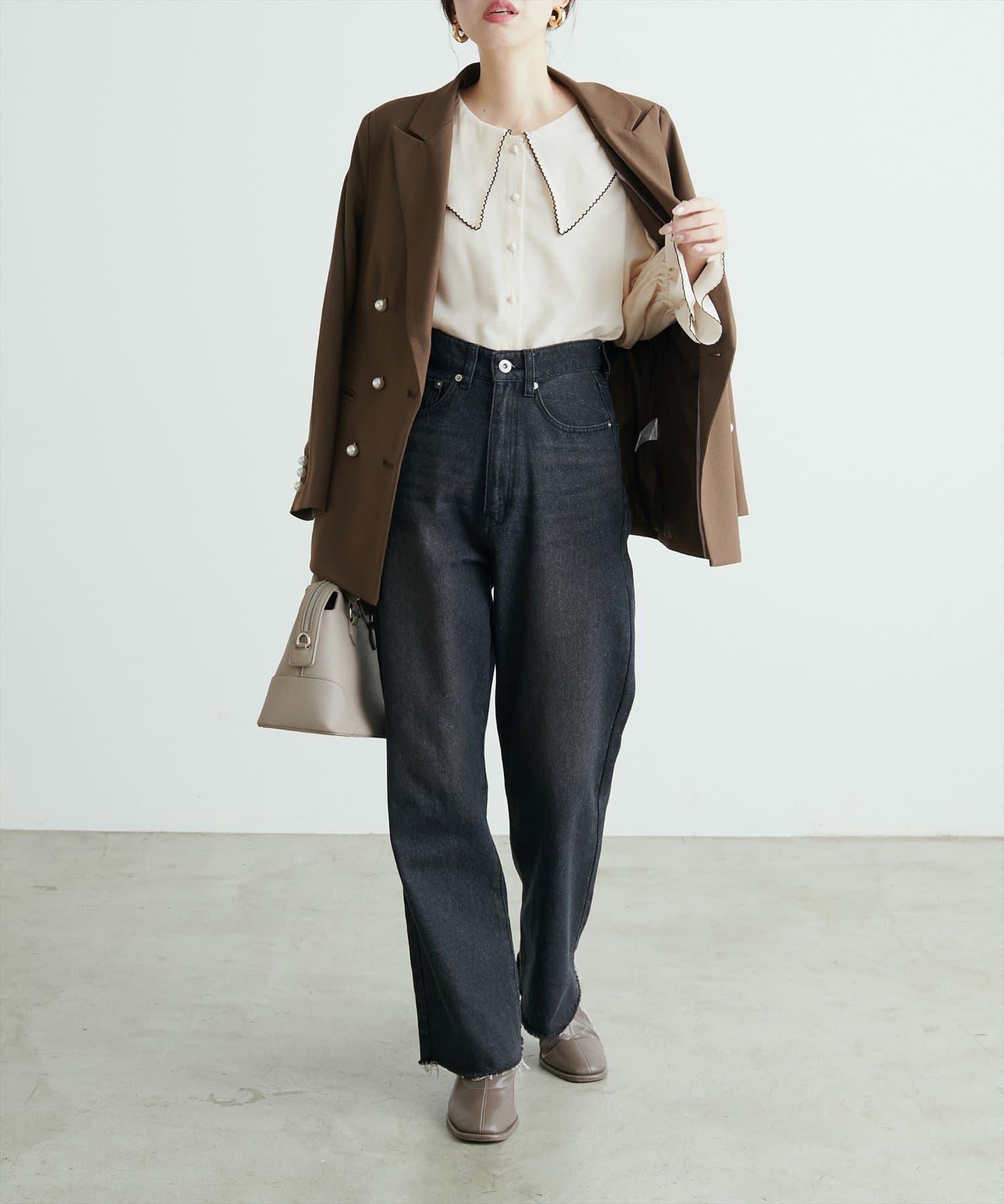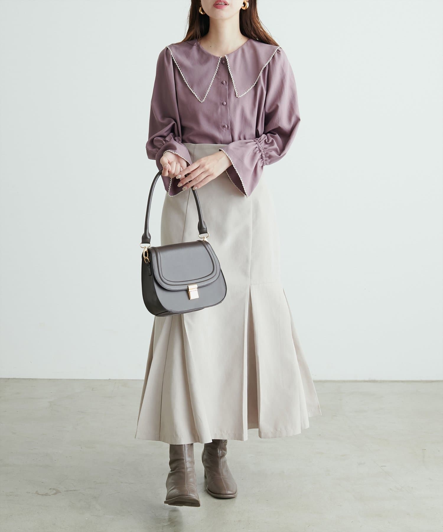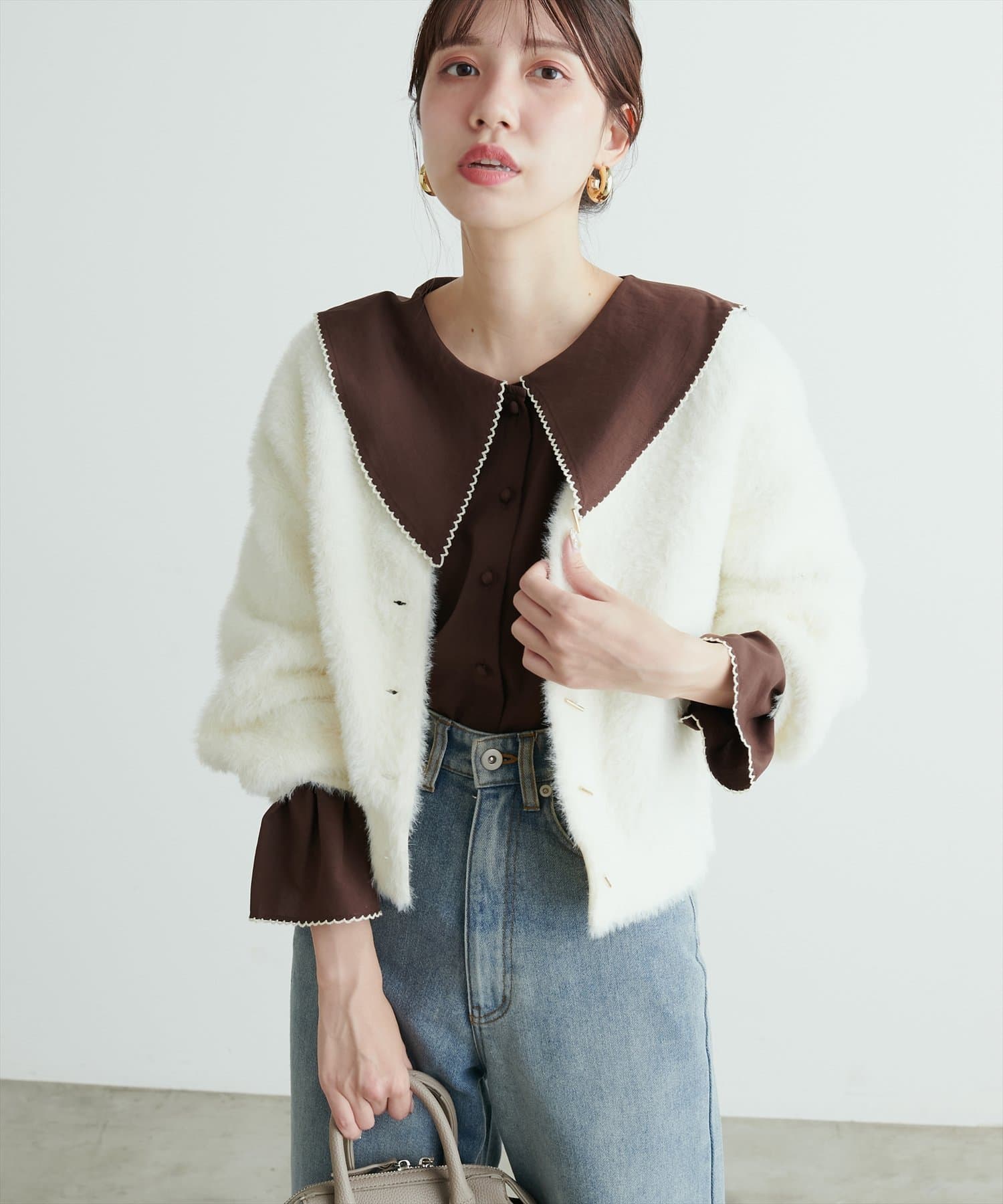 トレンドのビッグ衿を大人可愛く仕上げました。