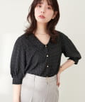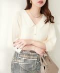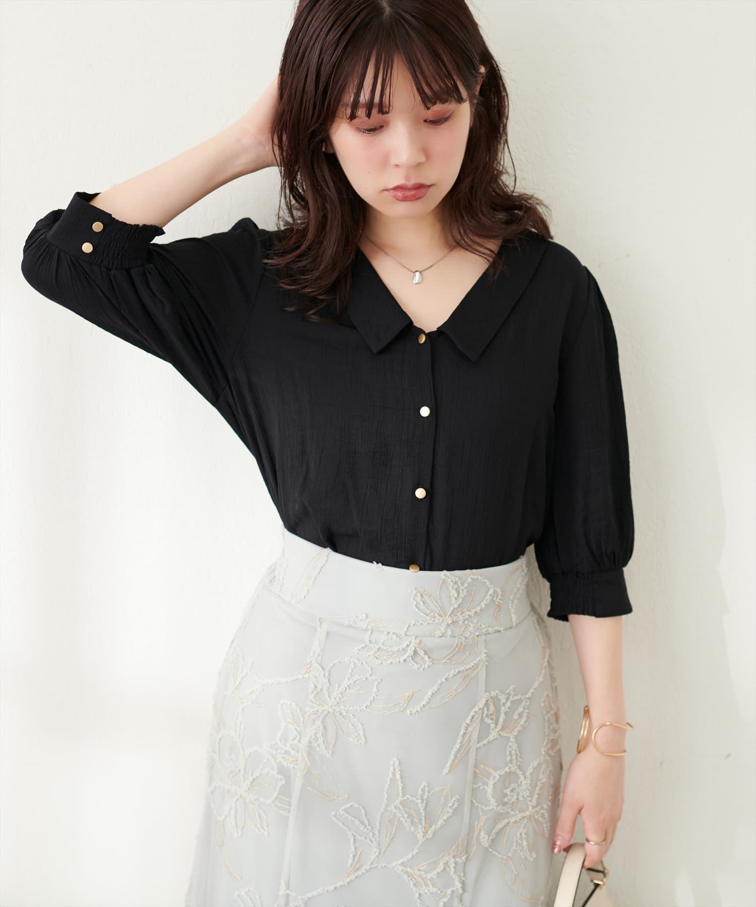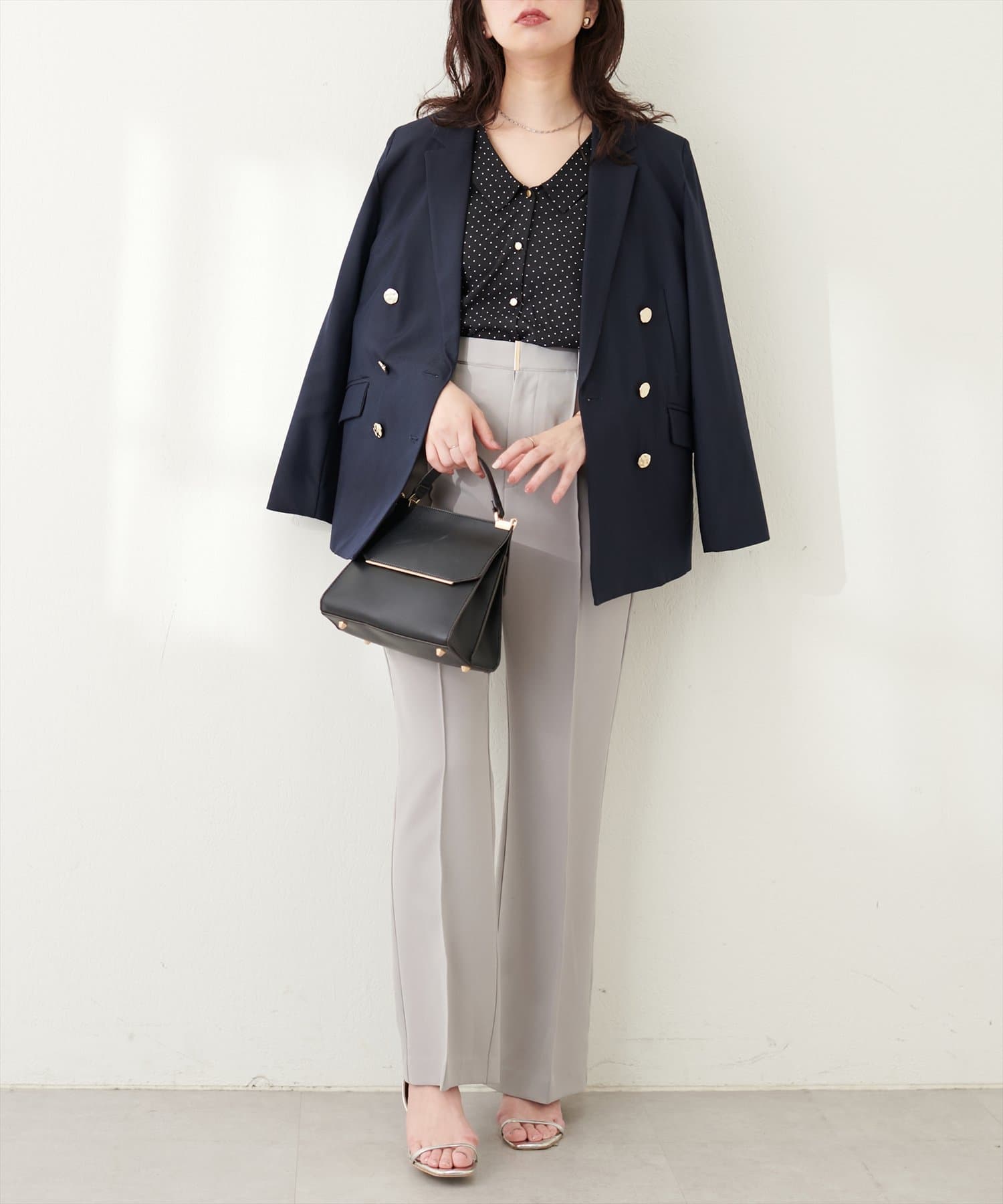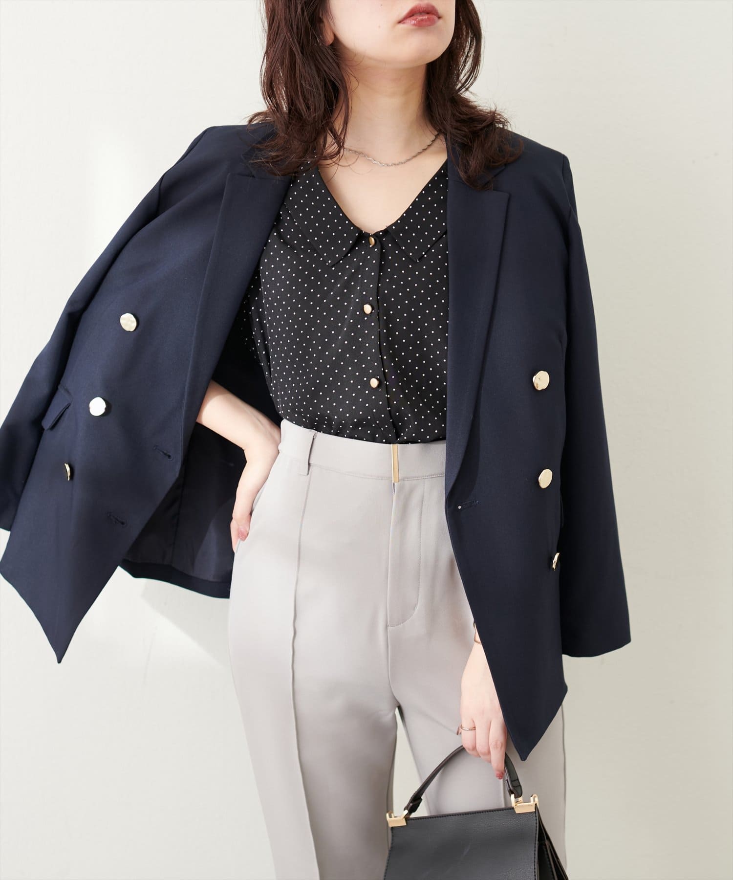 フロントと袖口に金ボタンを施し、大人レディな雰囲気の中に上品な要素をプラスしました。