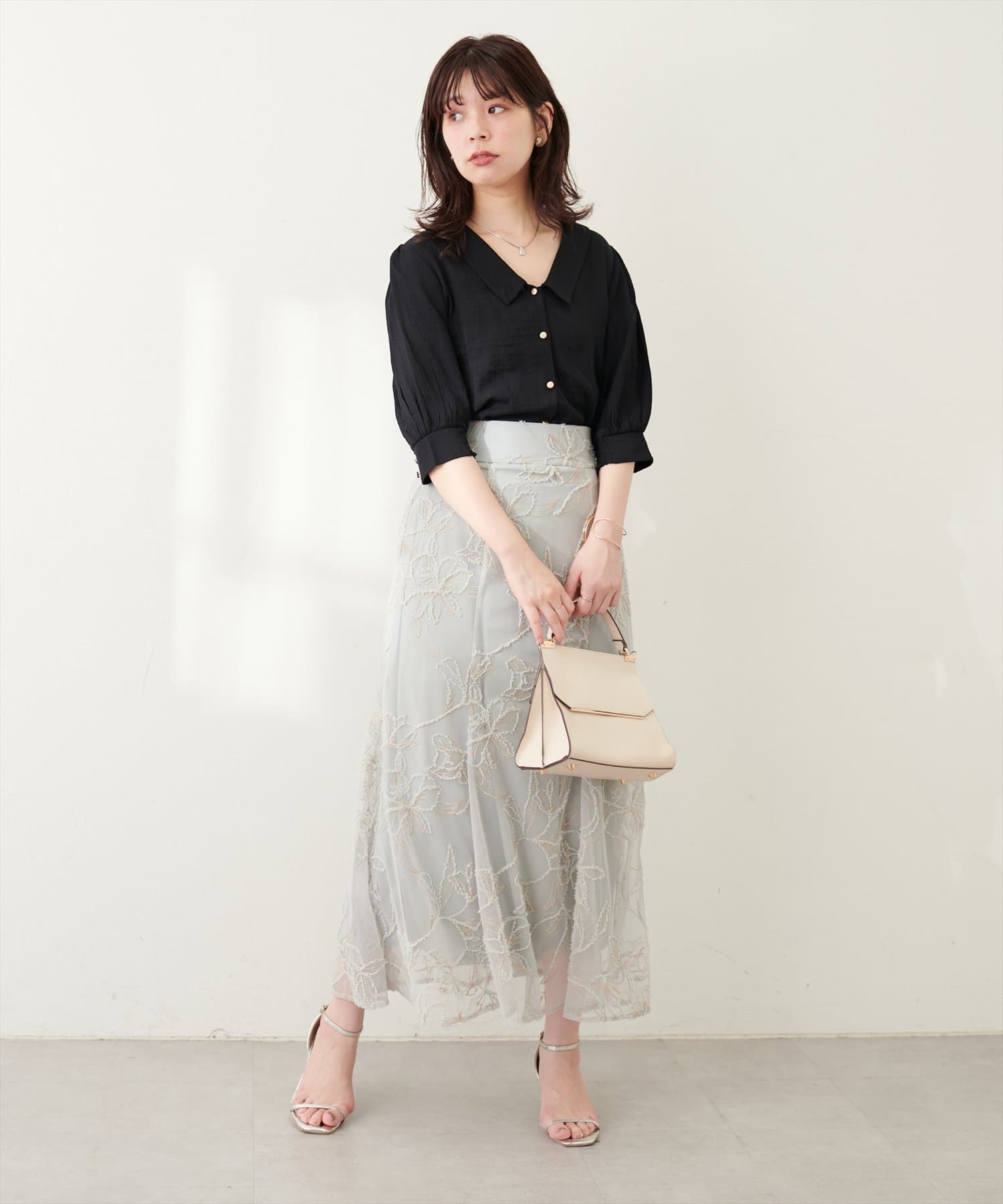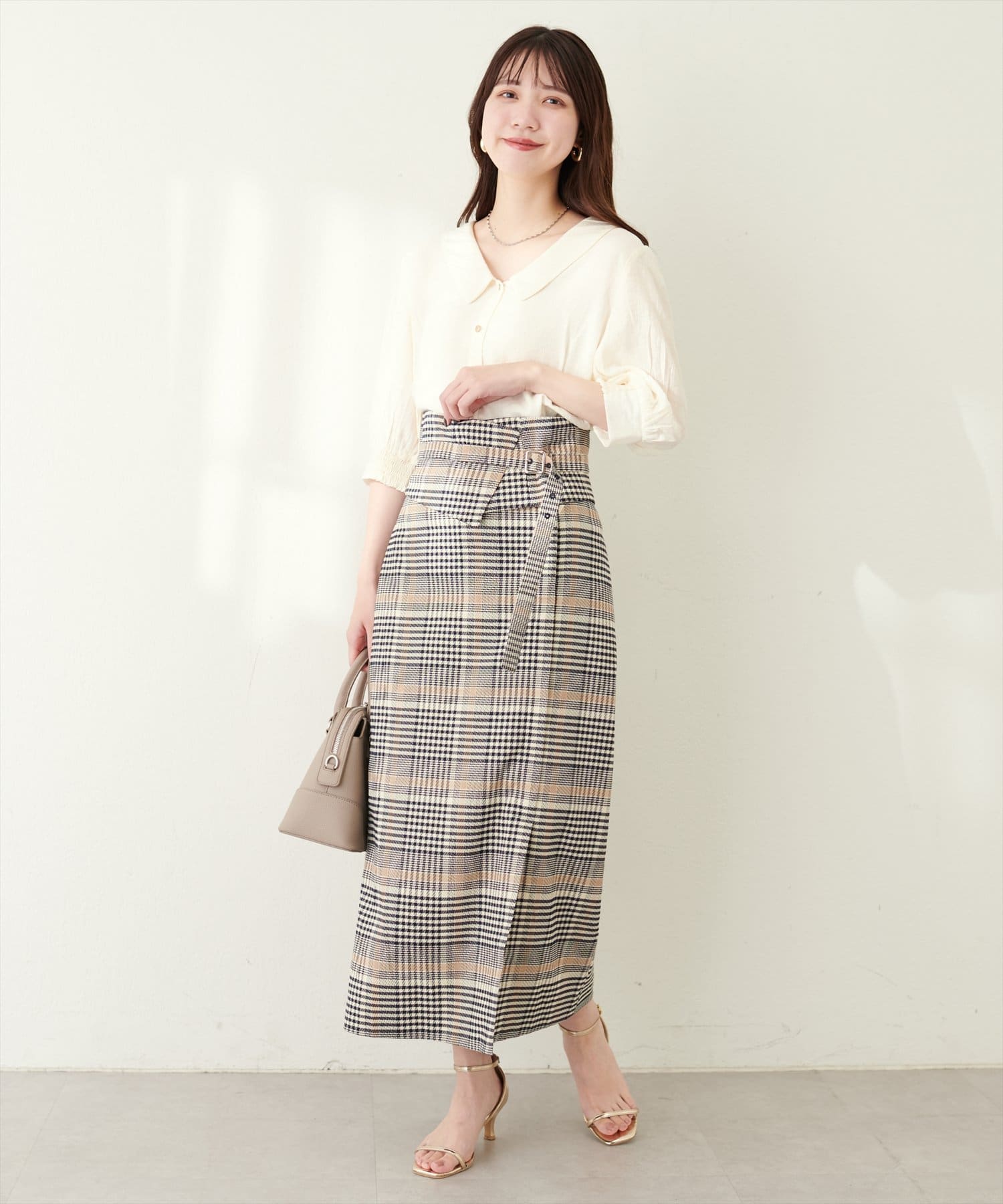 ハイウエストデザインのスカートにウエストインして、すっきりスタイリッシュな印象に仕上げるのはもちろん、