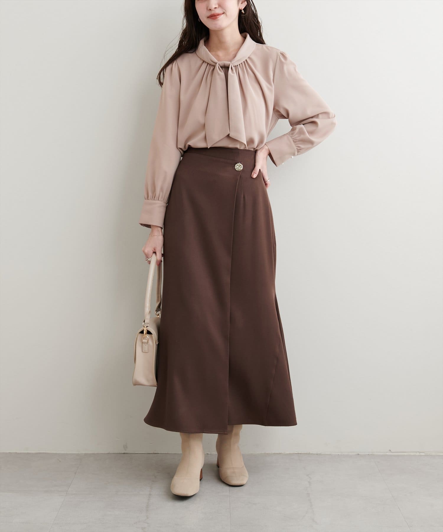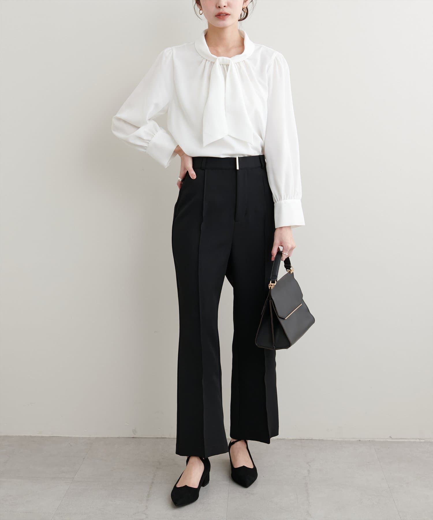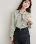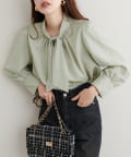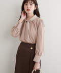 【蓄熱・保温】袖口パールノット結びボータイブラウス
