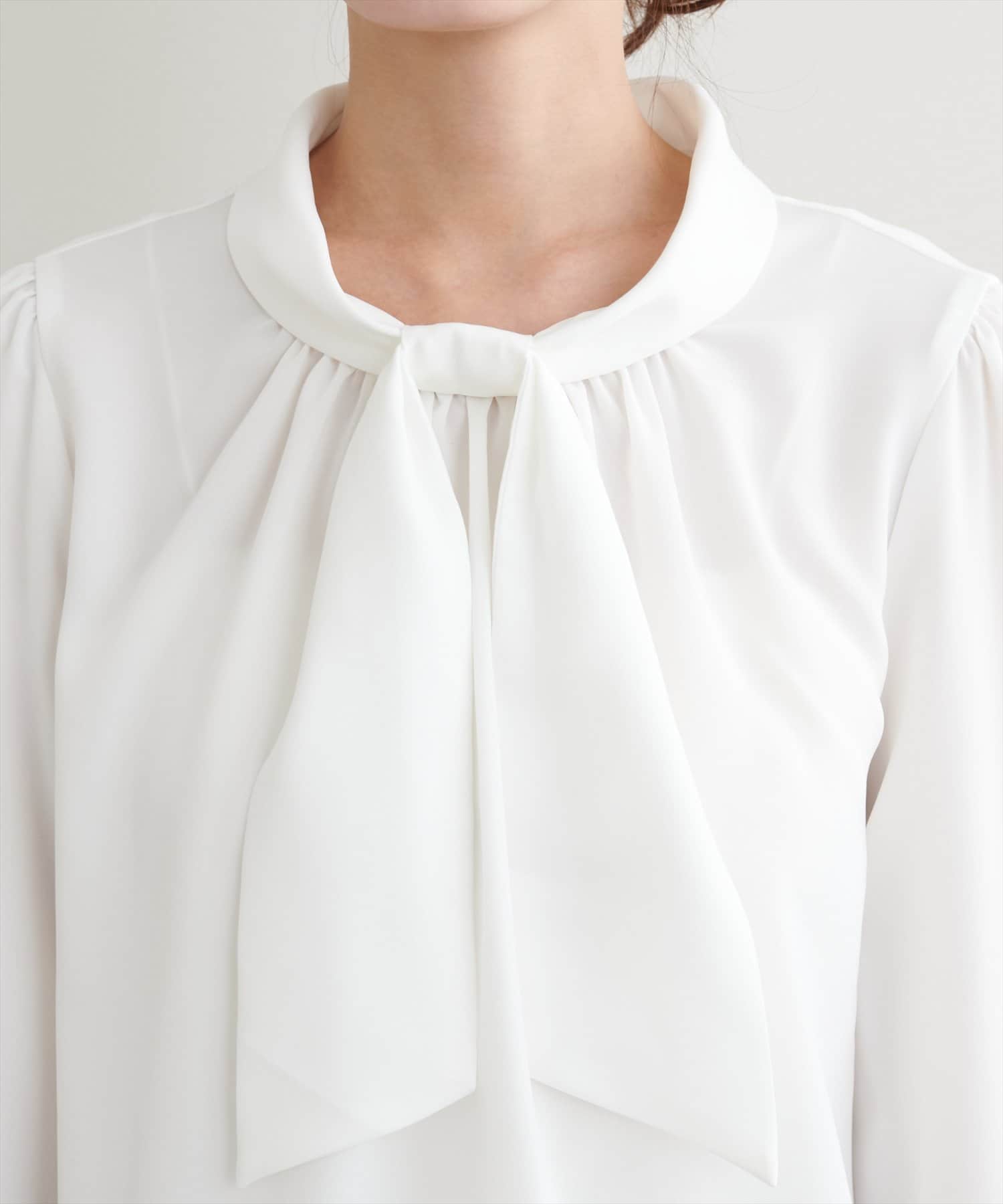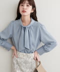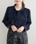 蓄熱・保温加工がついたパールノットボウタイブラウス