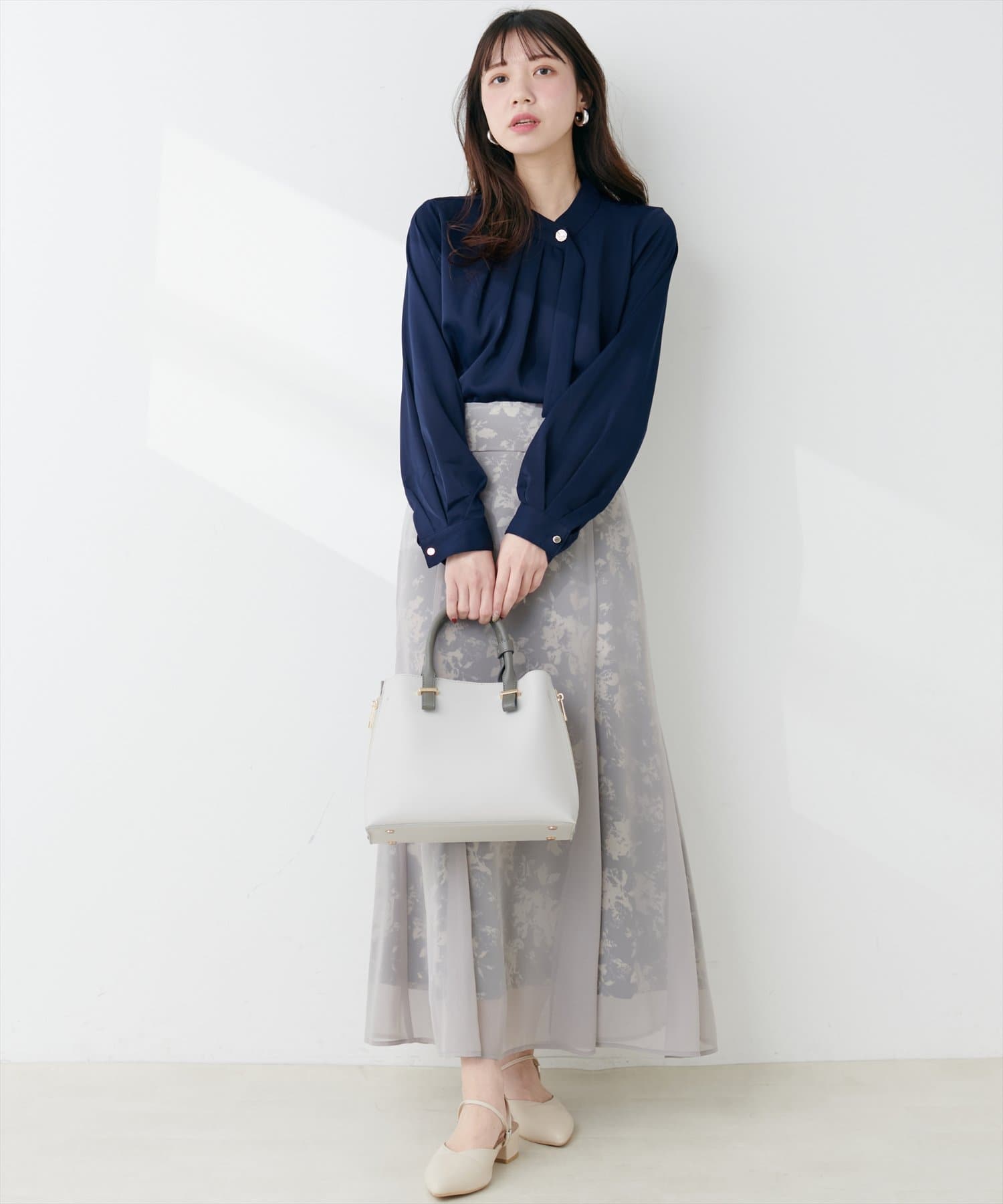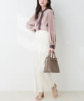 さらっとしたポリエステル素材で落ち感のある生地が、コーデを上品さと女性らしい印象に仕上げてくれます。