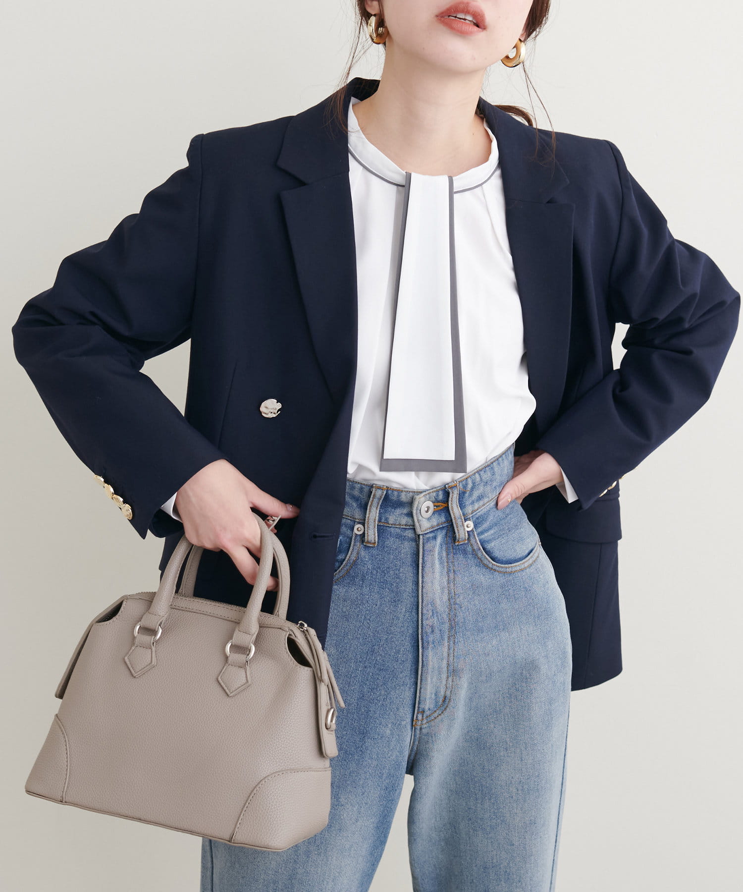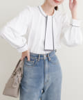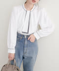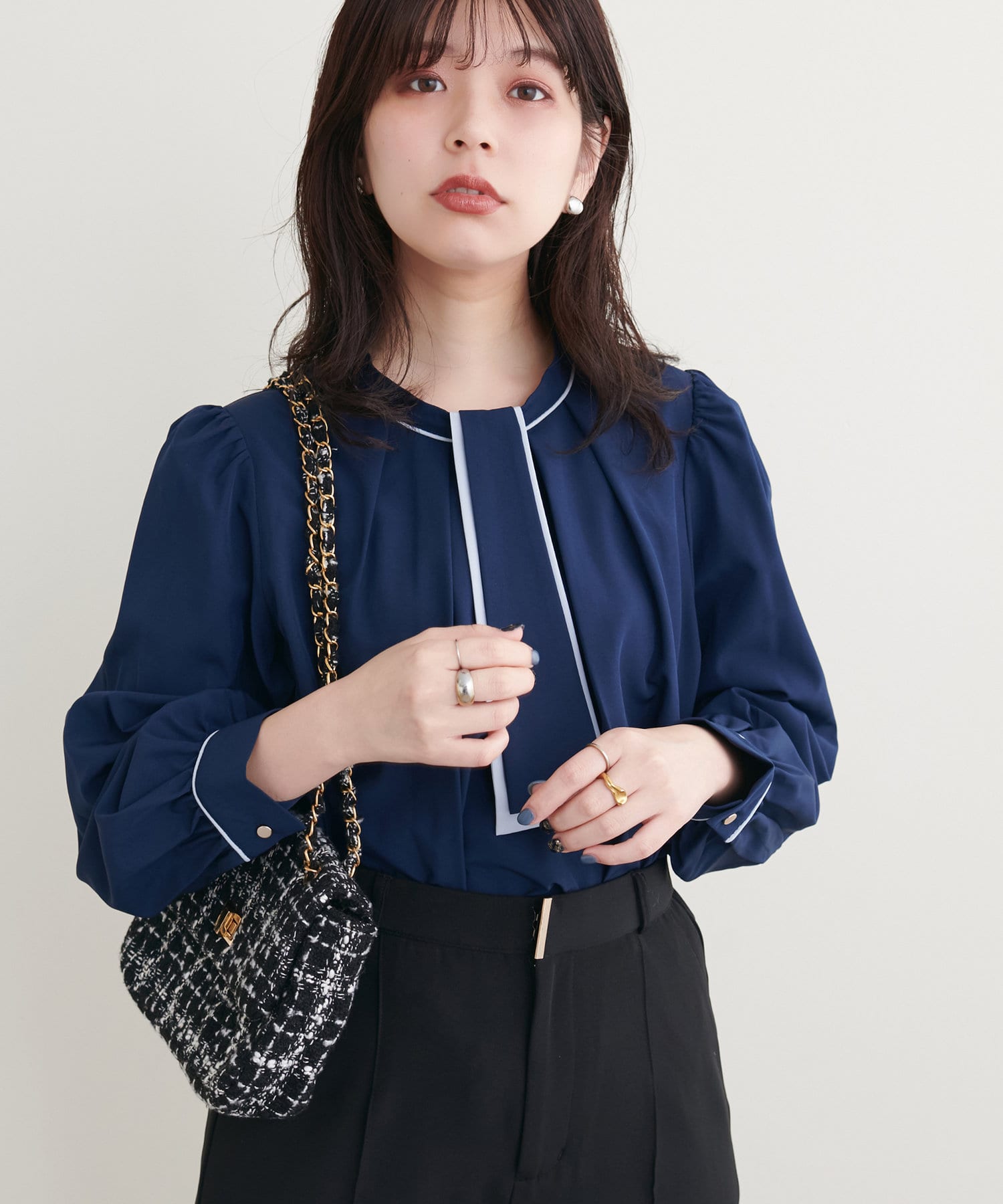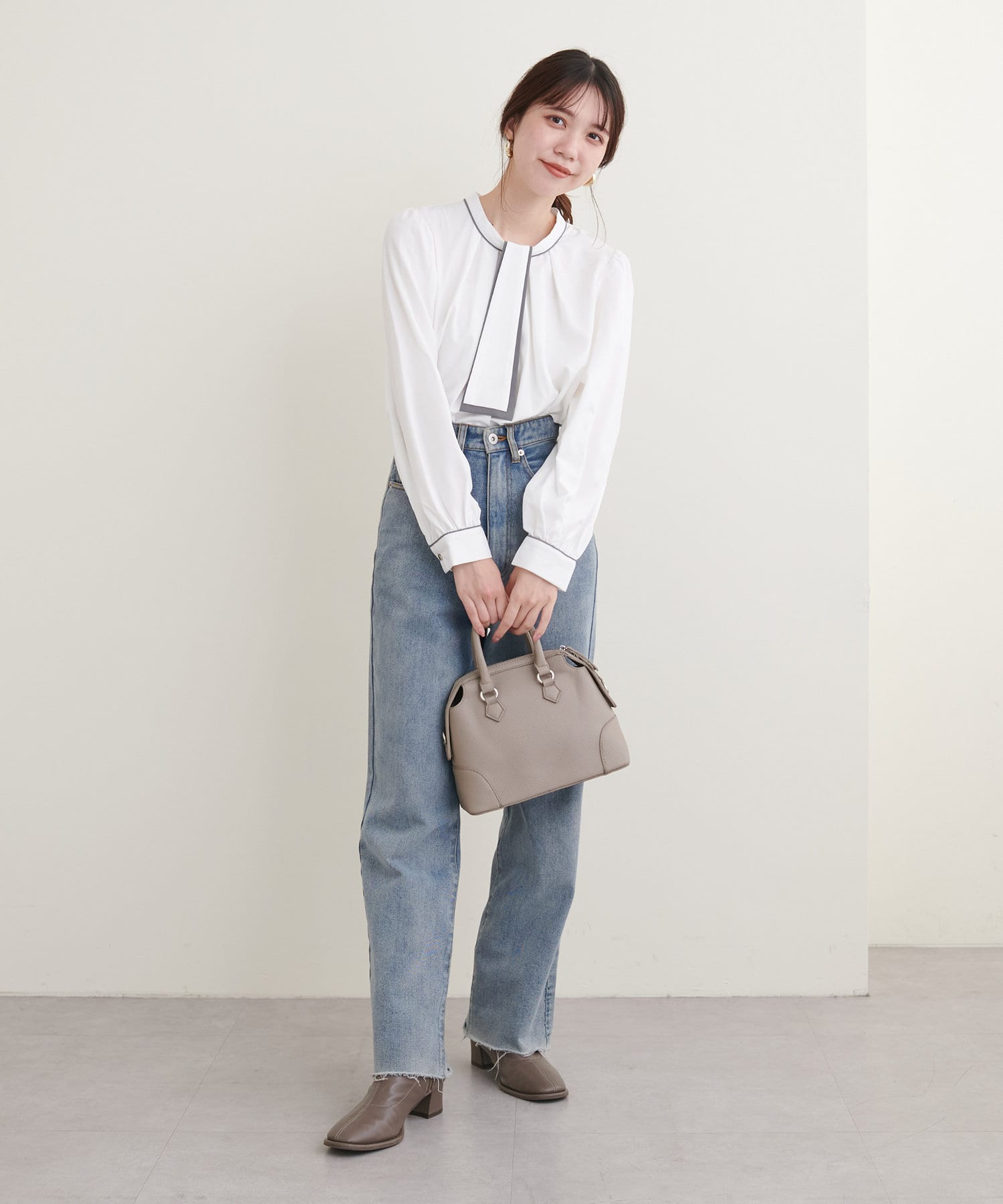 ブラウスがさらりとしている分、ボトムは厚みのあるアイテムを合わせて素材感にメリハリを付けるのがおすすめです。