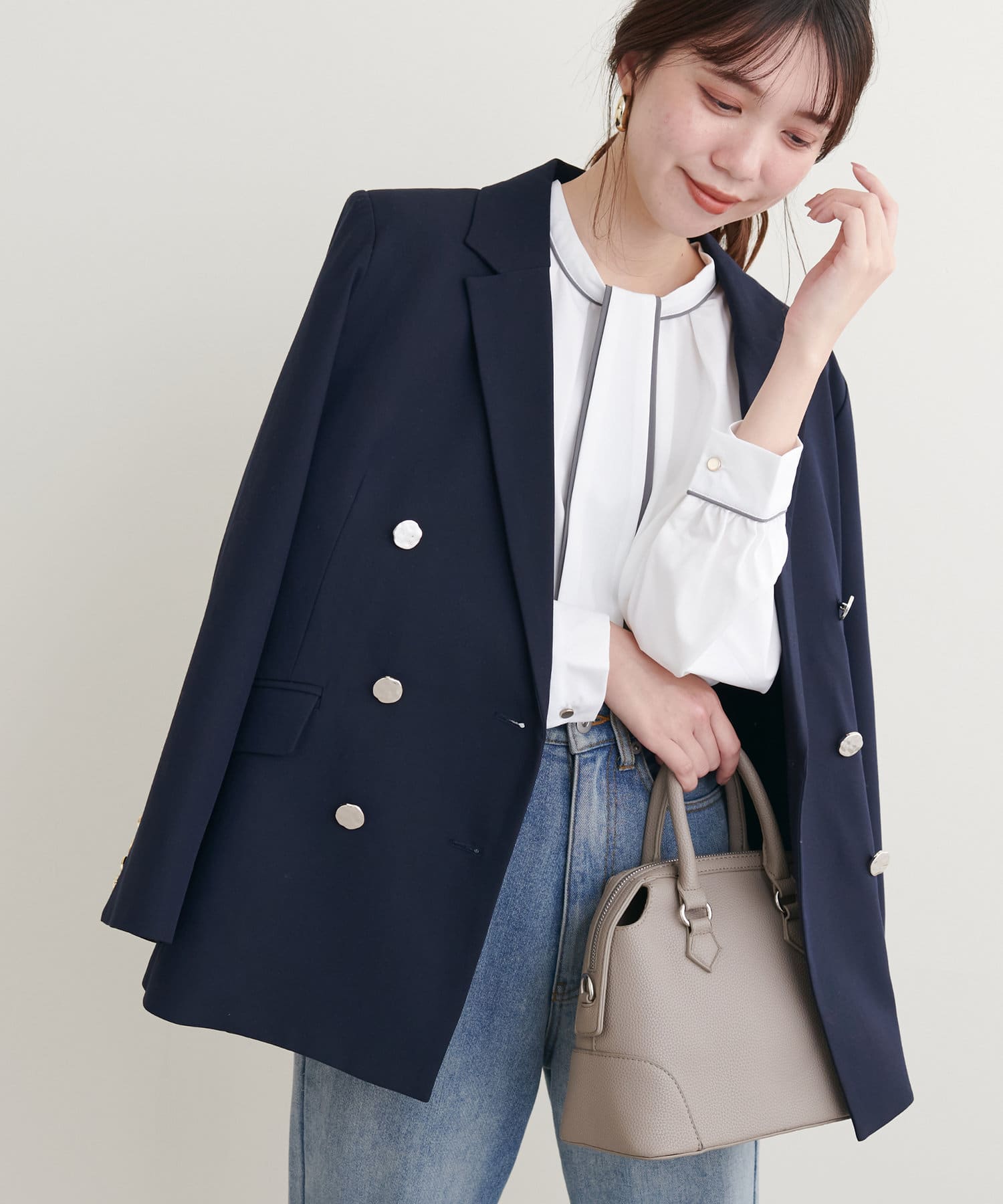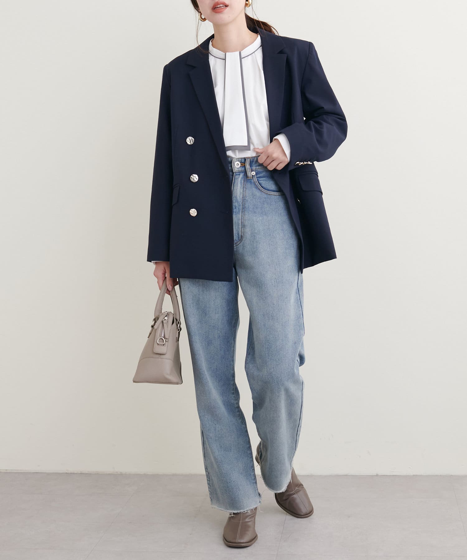 一枚で上品なアイテムなので、スカートスタイルはもちろん、デニムなどを合わせてカジュアルダウンするスタイルも◎