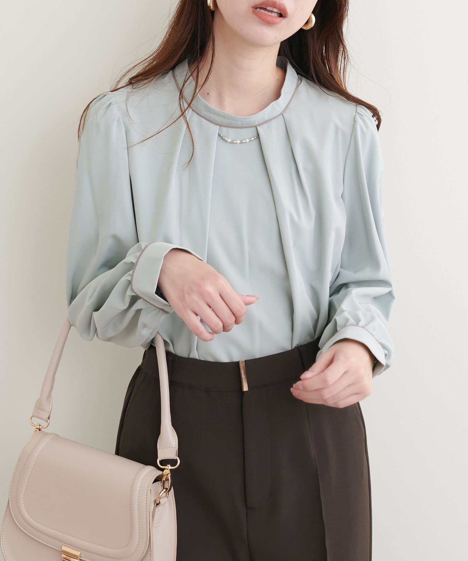 さらっとした薄手のブラウス地で秋冬の季節には上からジャケットや