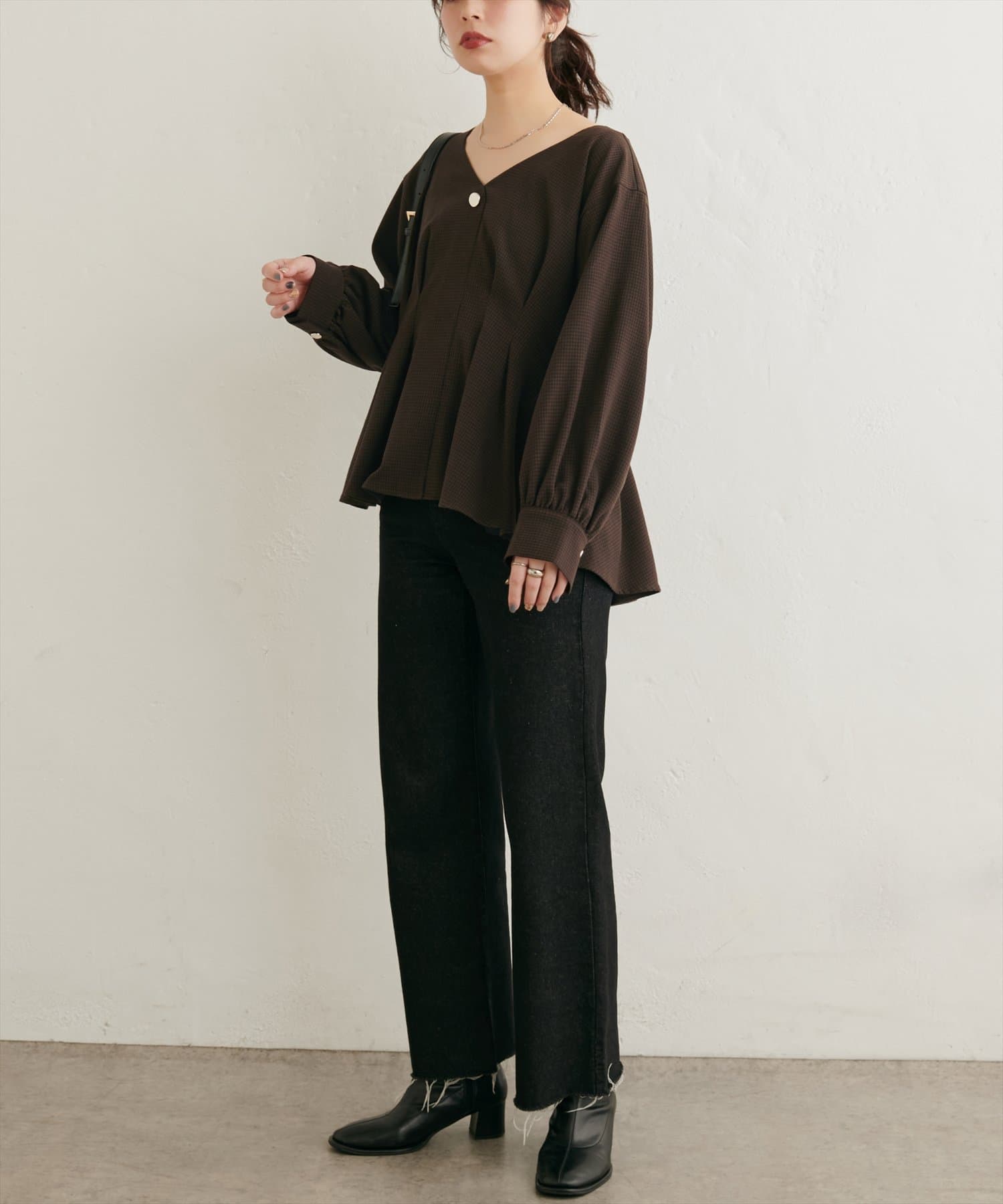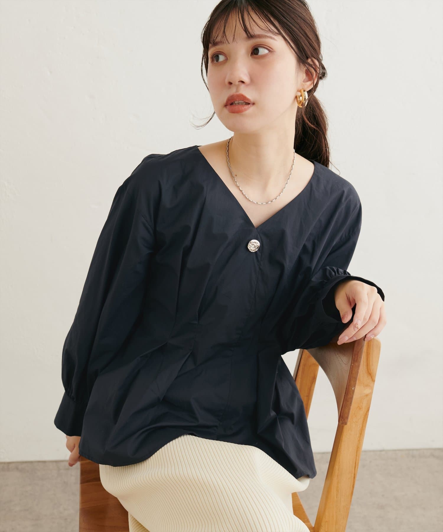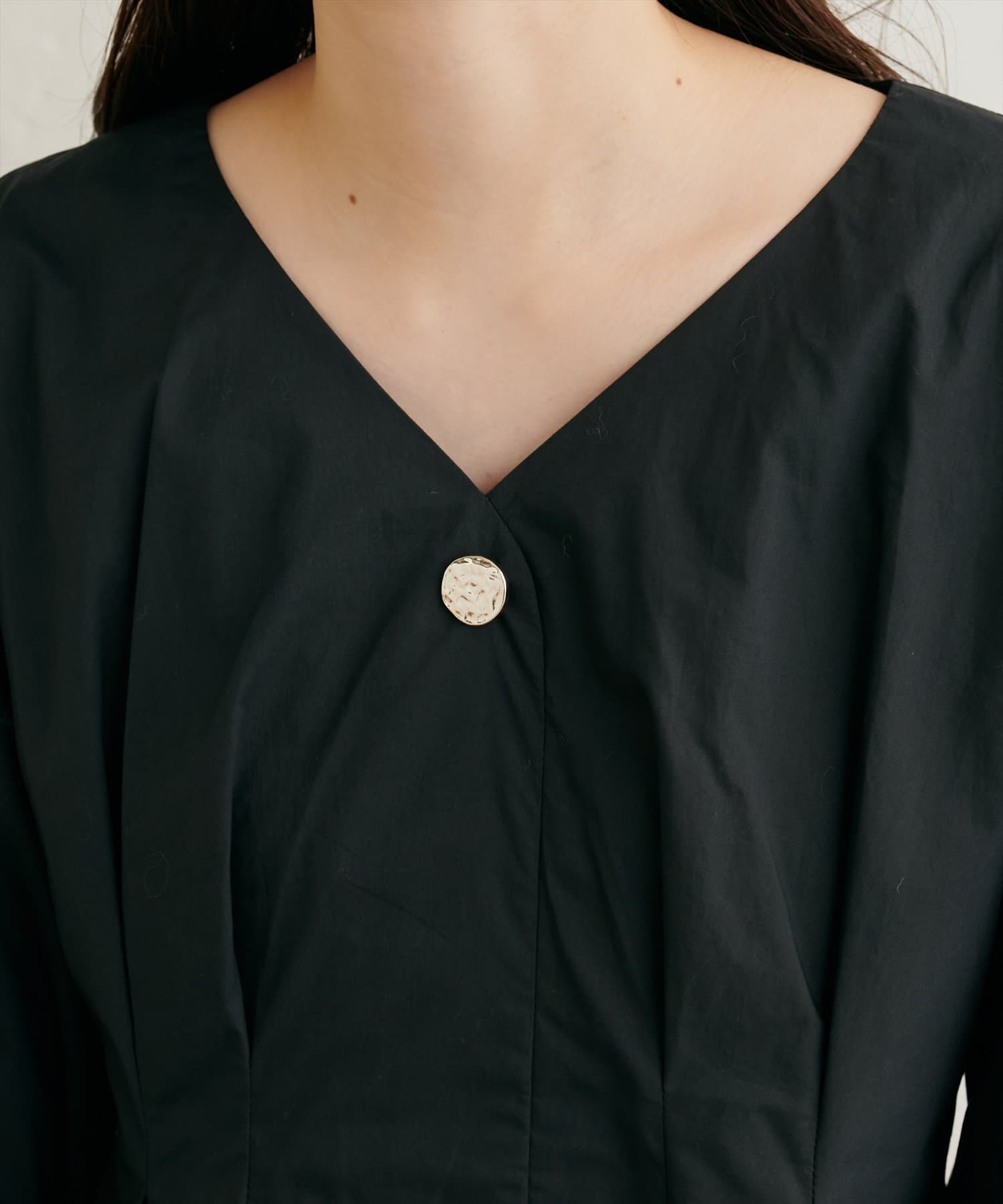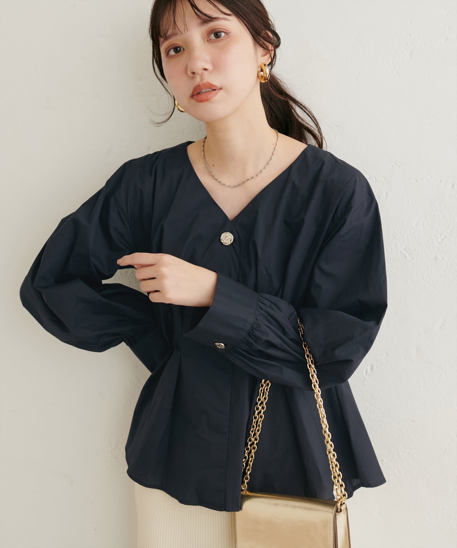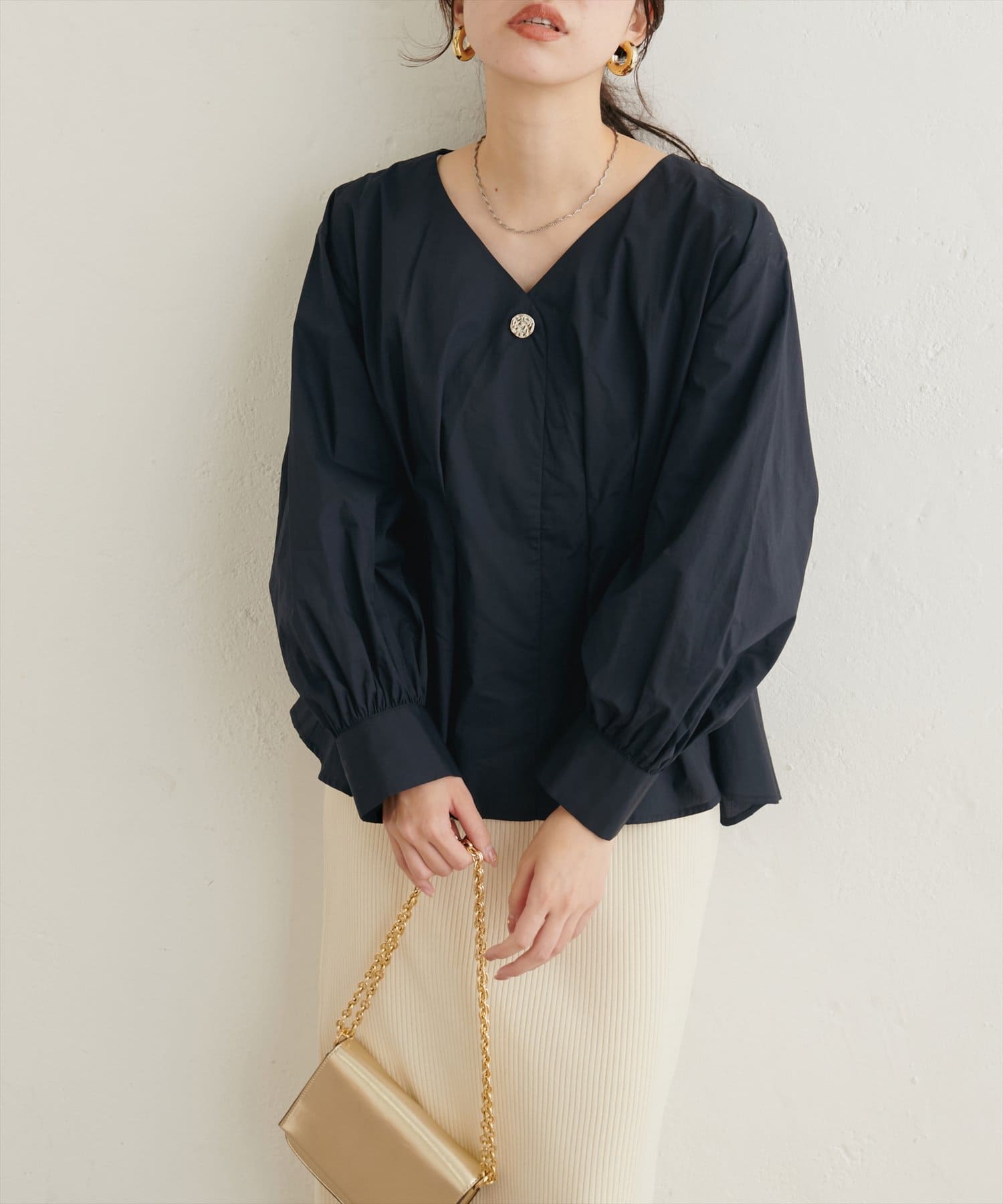 フロントと袖のボタンで上品さを演出し、Vネックですっきり抜け感も叶います。