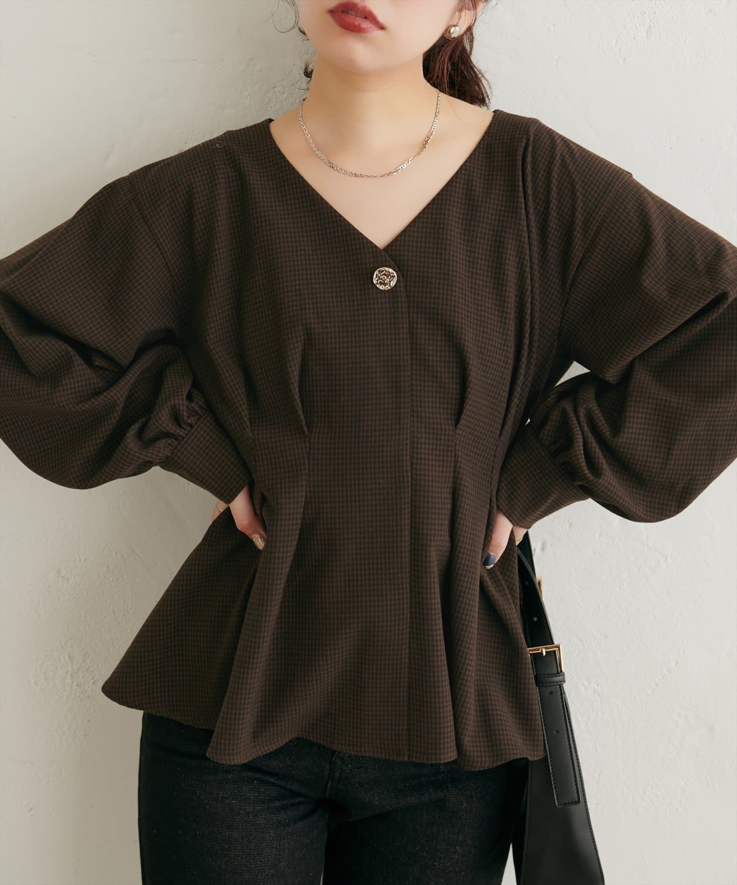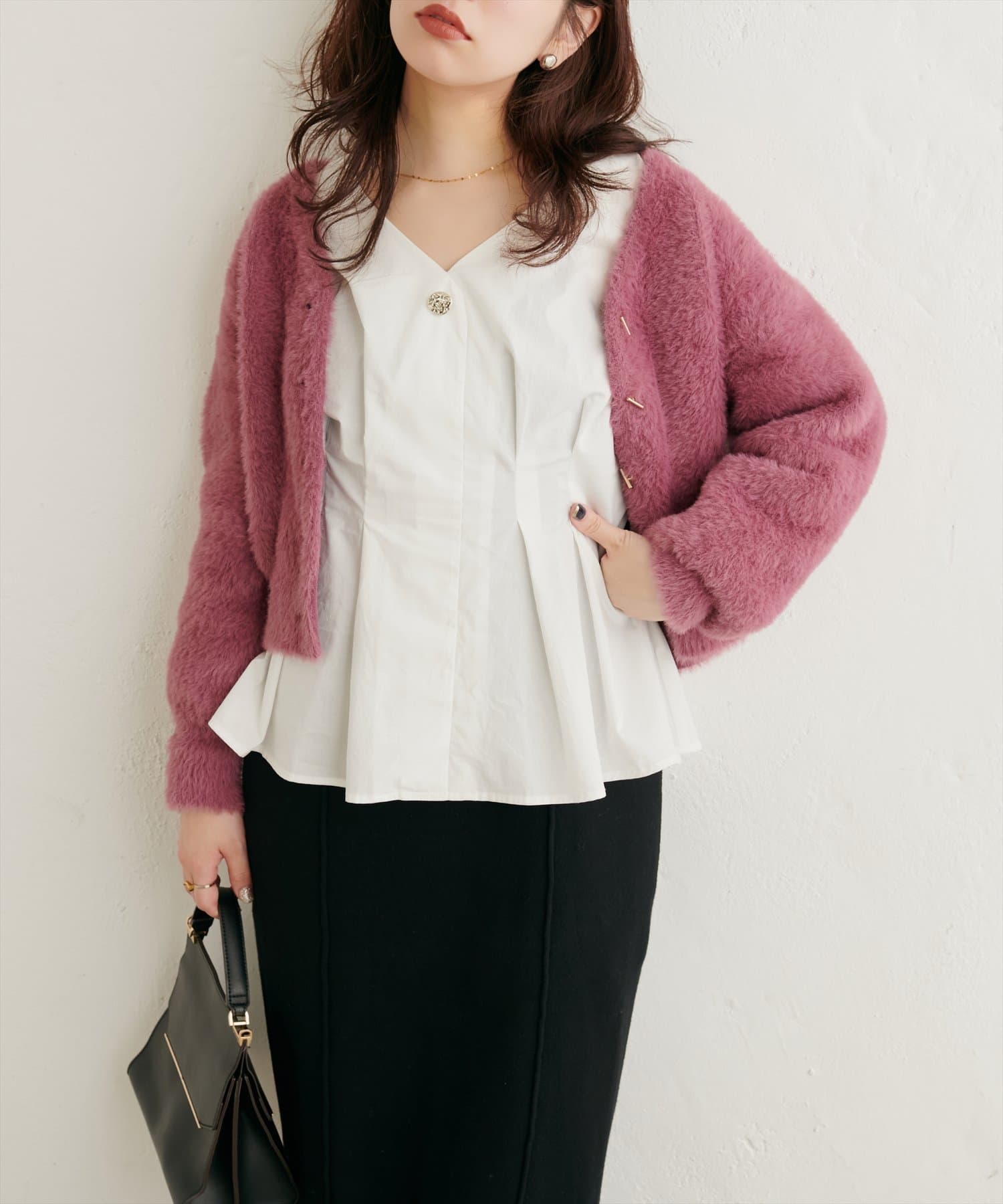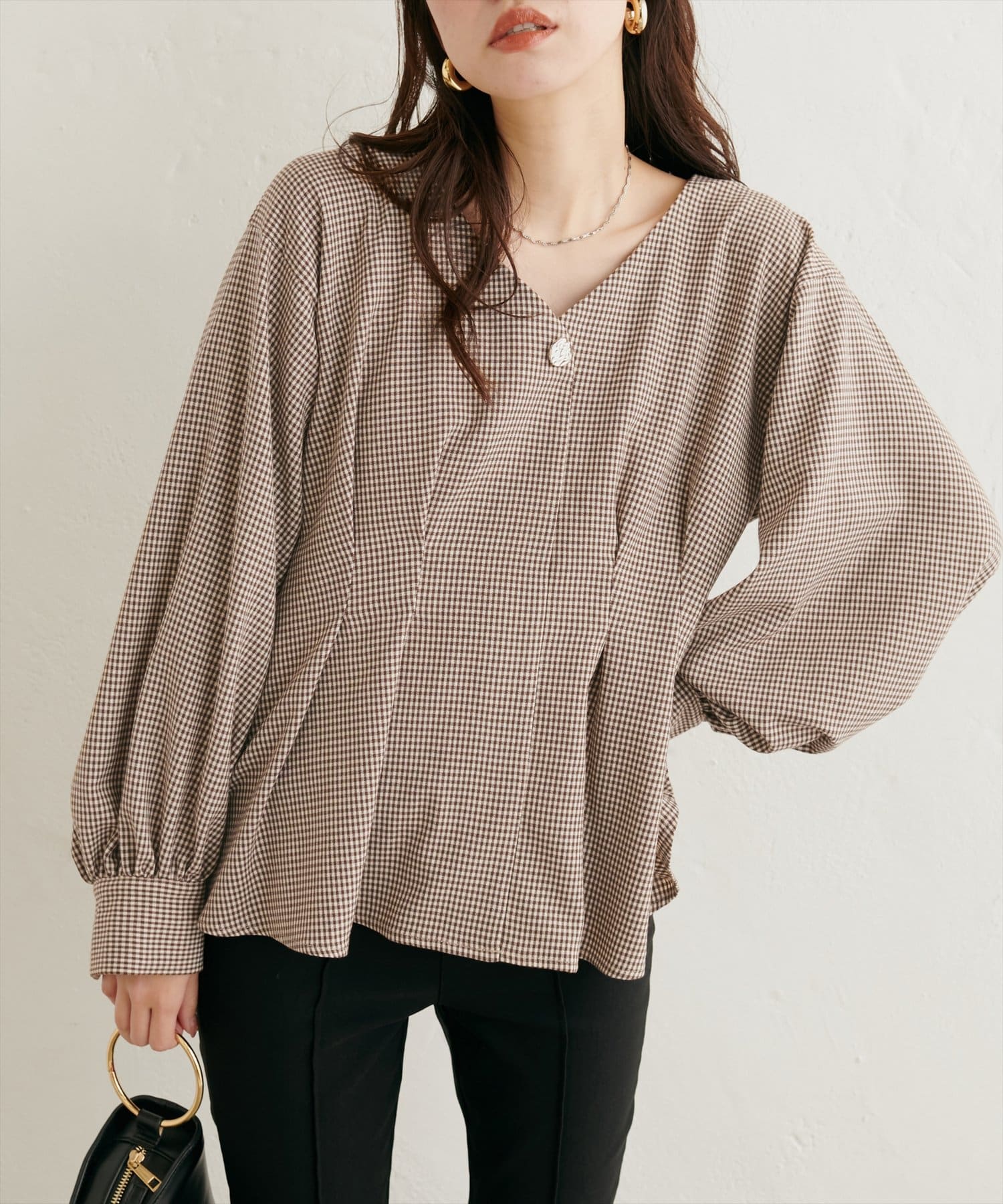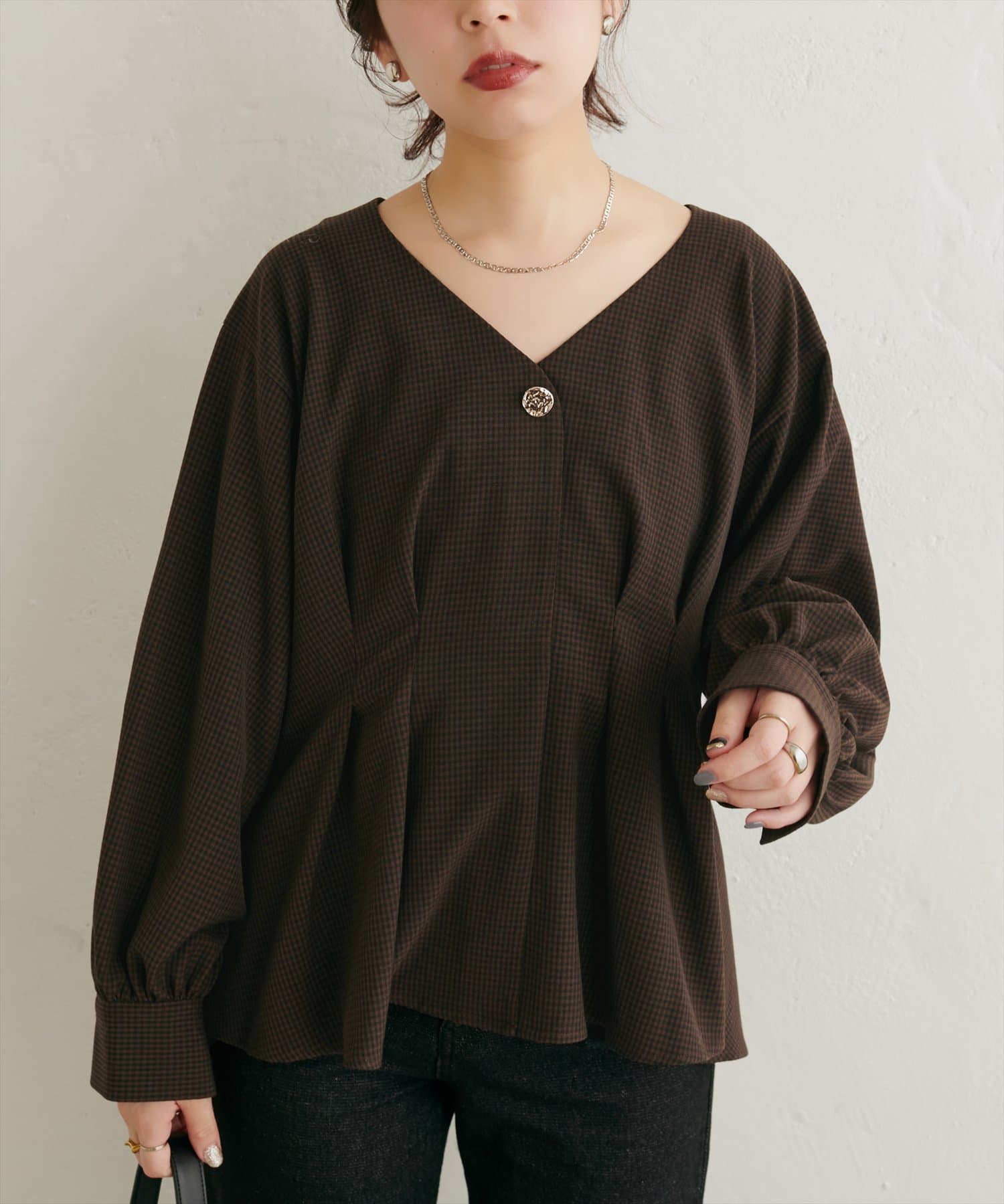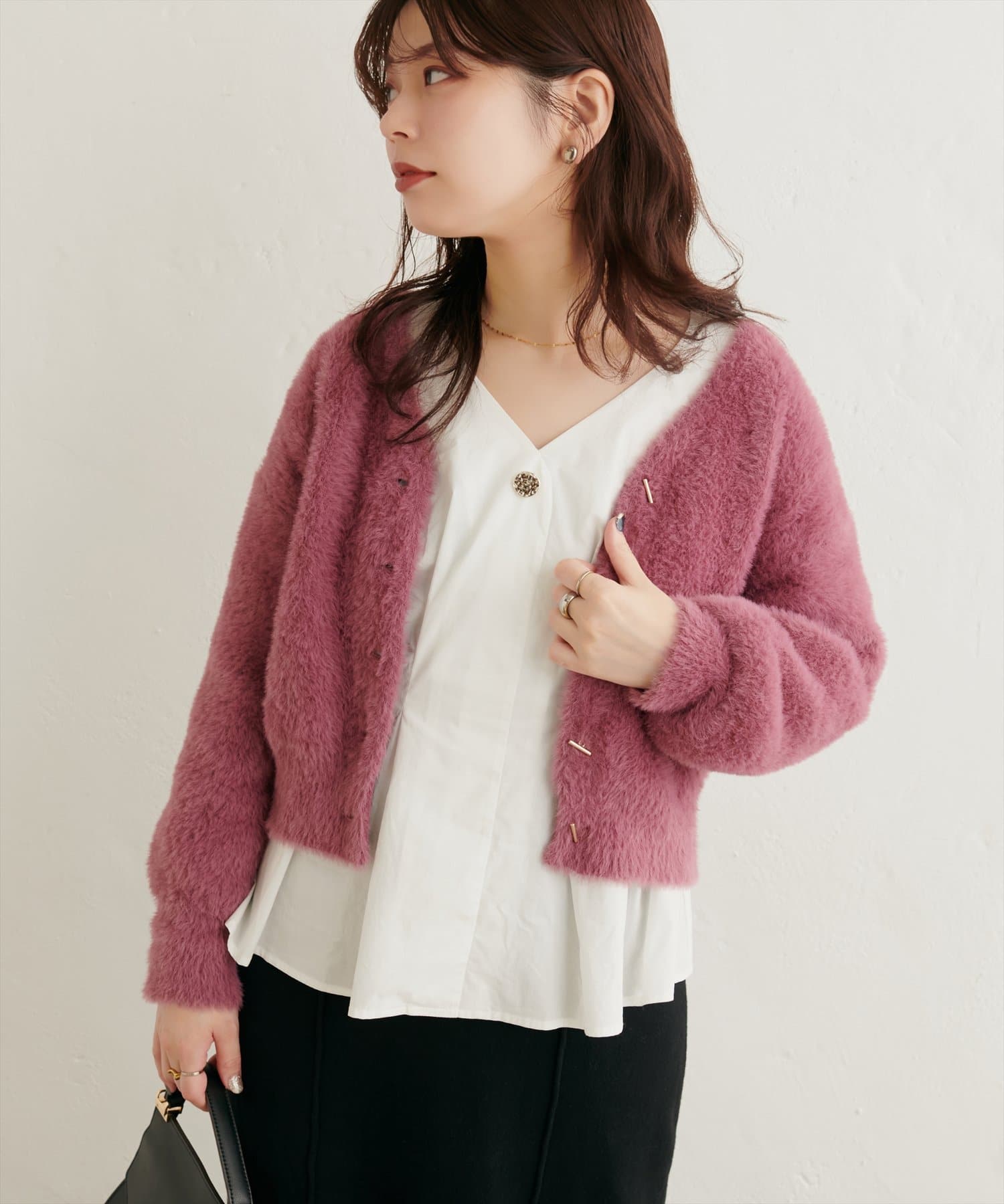 フロントと袖のボタンで上品さを演出し、Vネックですっきり抜け感も叶います。