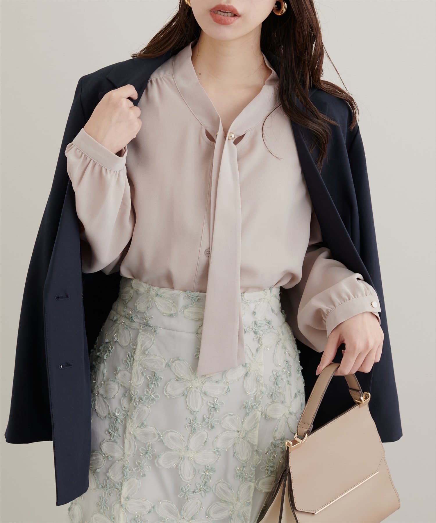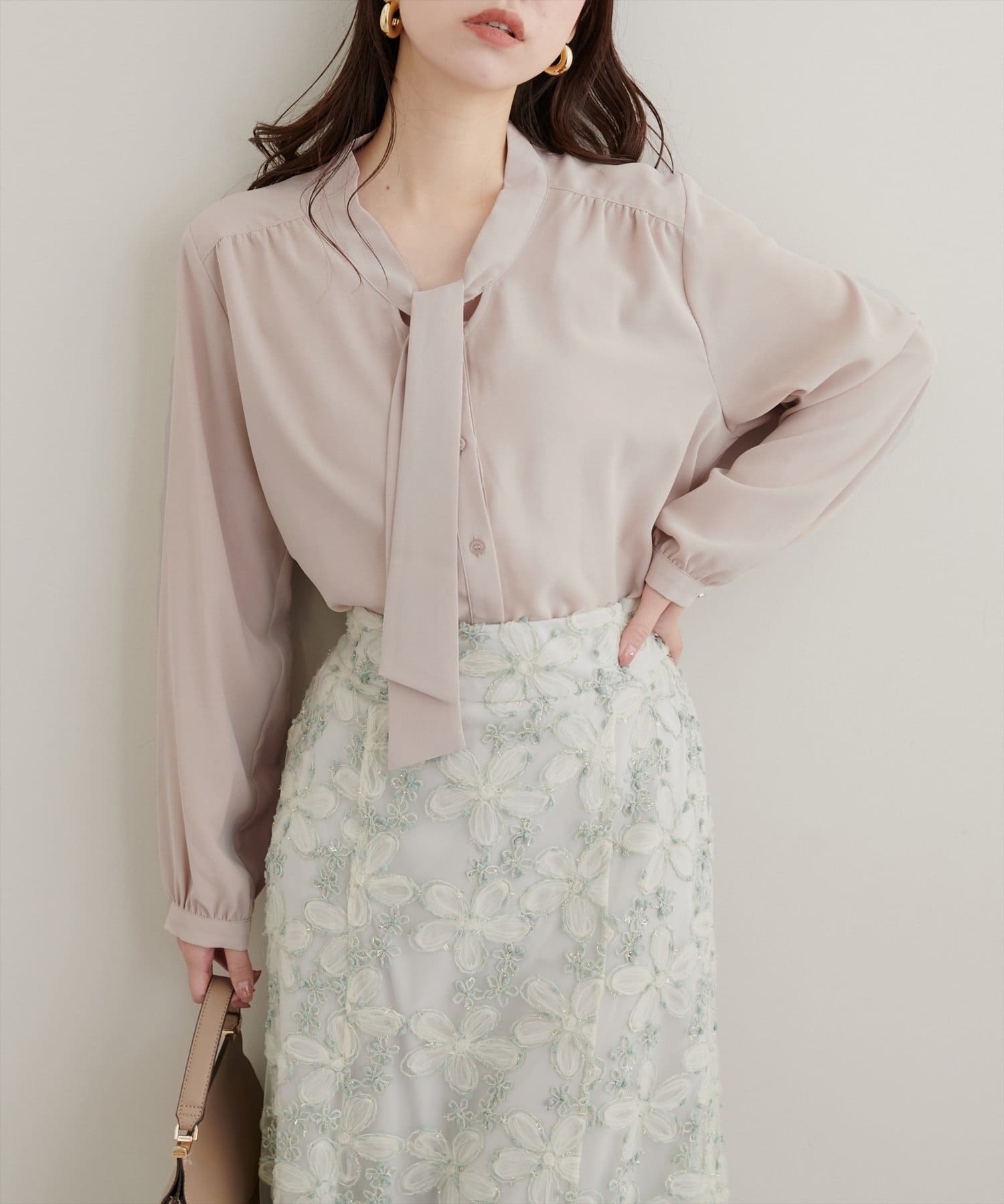 リボン結びでフェミニンに、さまざまな着方でお召頂けます。