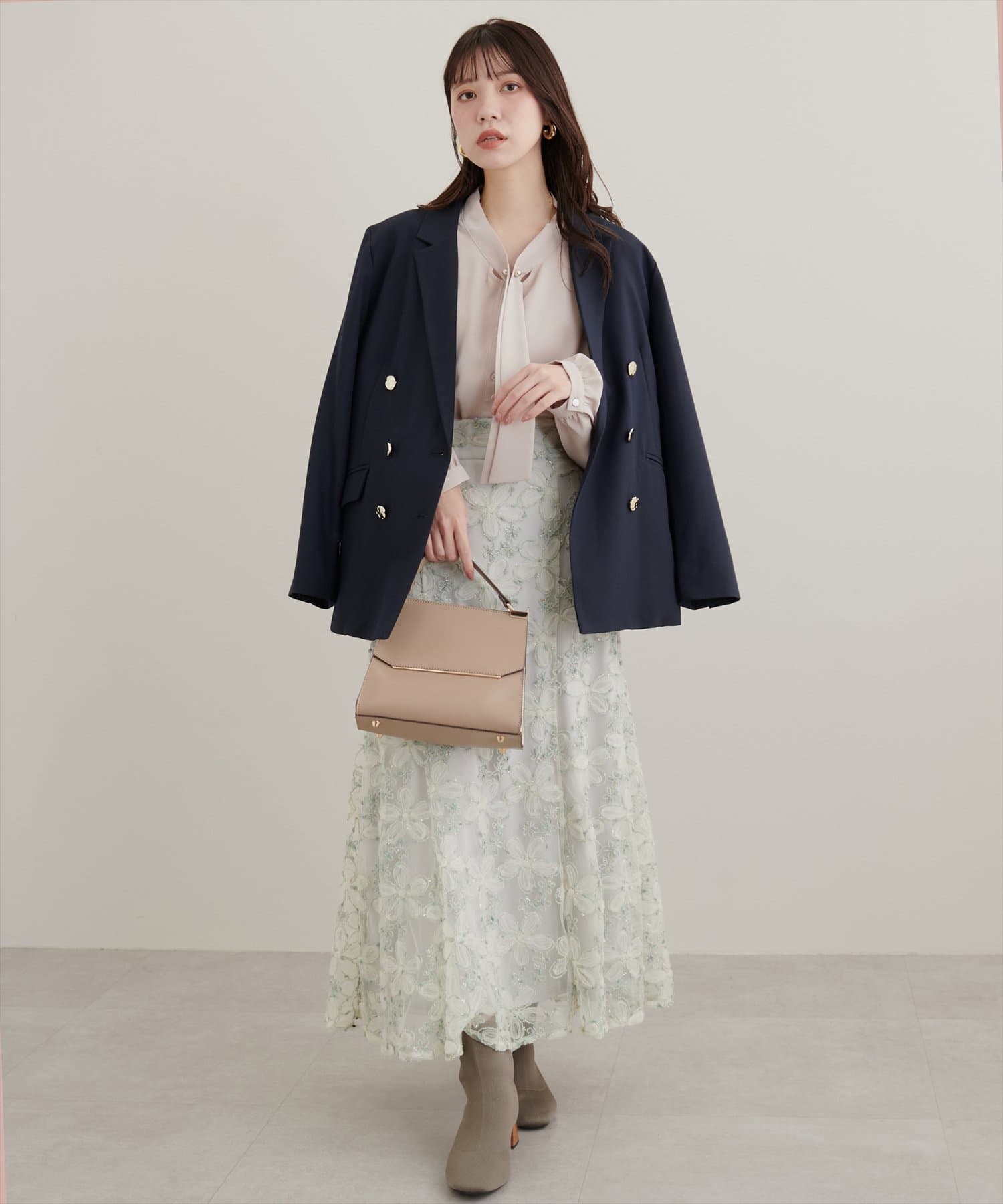 マーメイドシルエットやフレアラインのスカートにウエストインして頂くと、