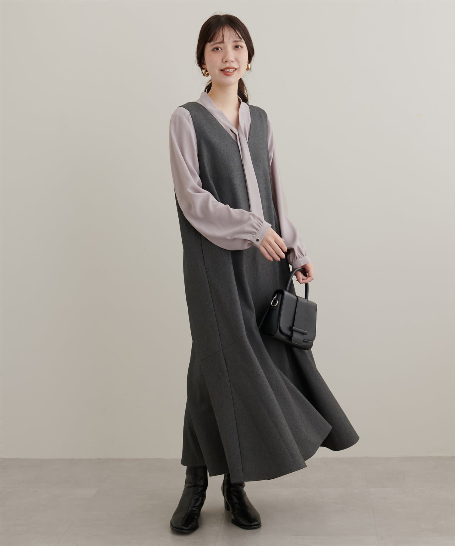 カーディガンやジャケットのインナーとしても使いやすいので、オフィスシーンにもぴったりです。
