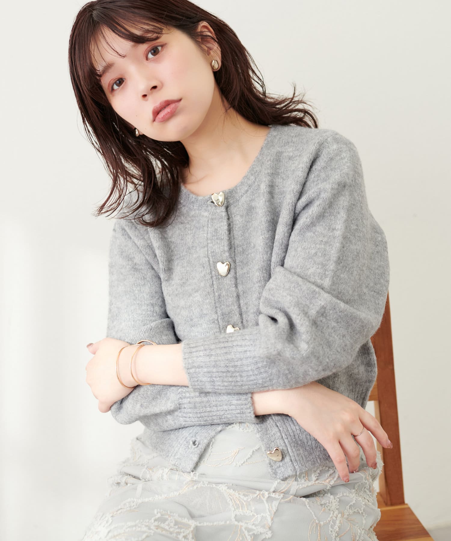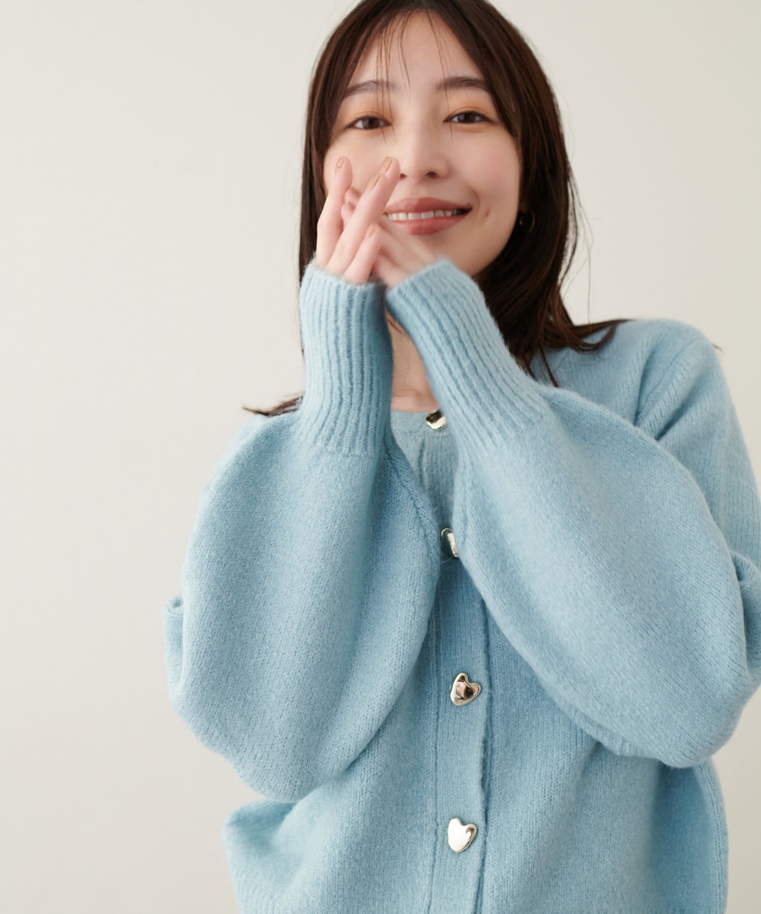 ニュアンス型のハート釦が大人レディなふわふわカーディガン