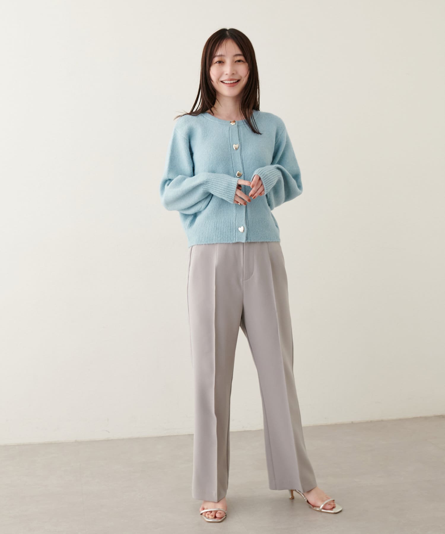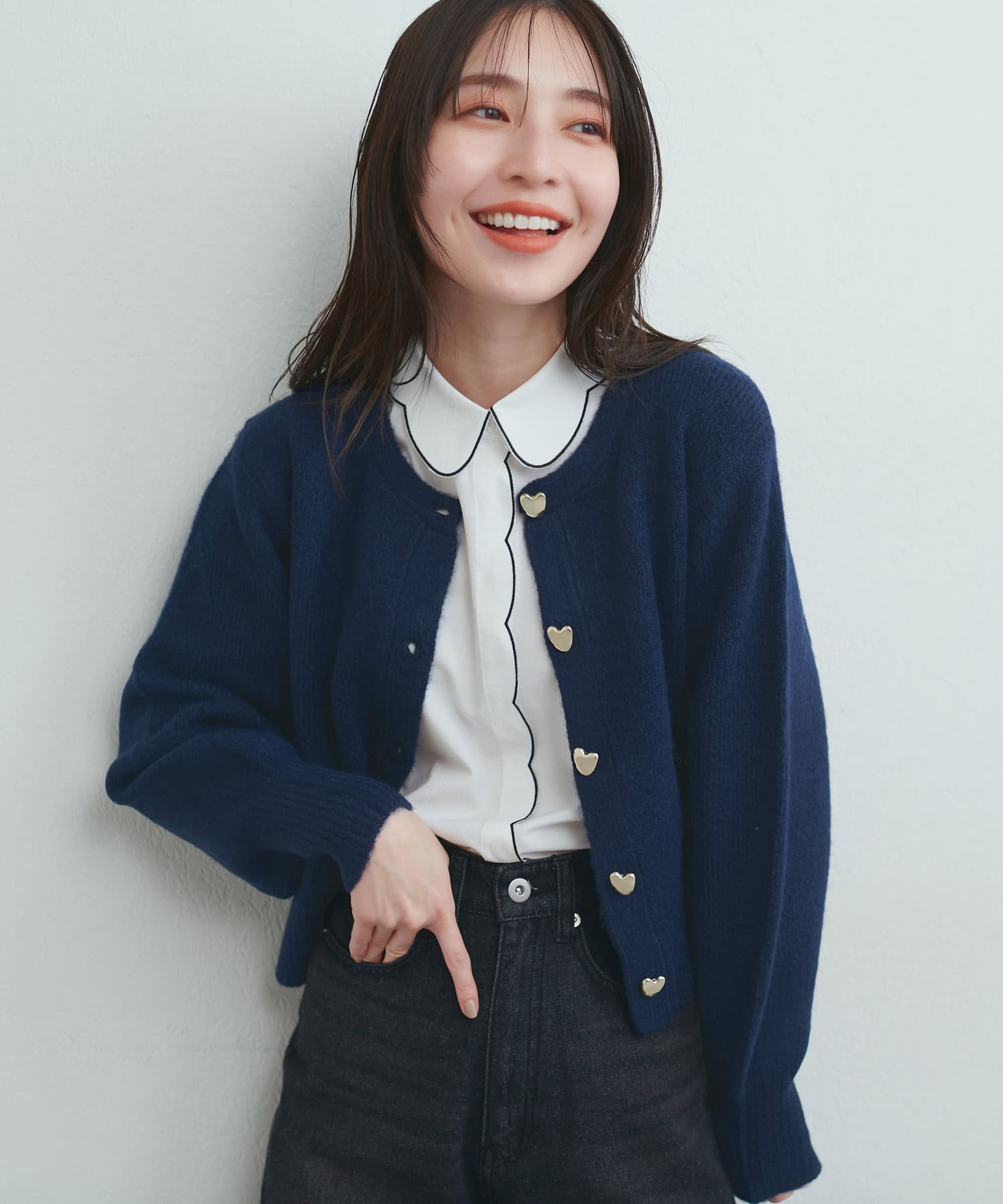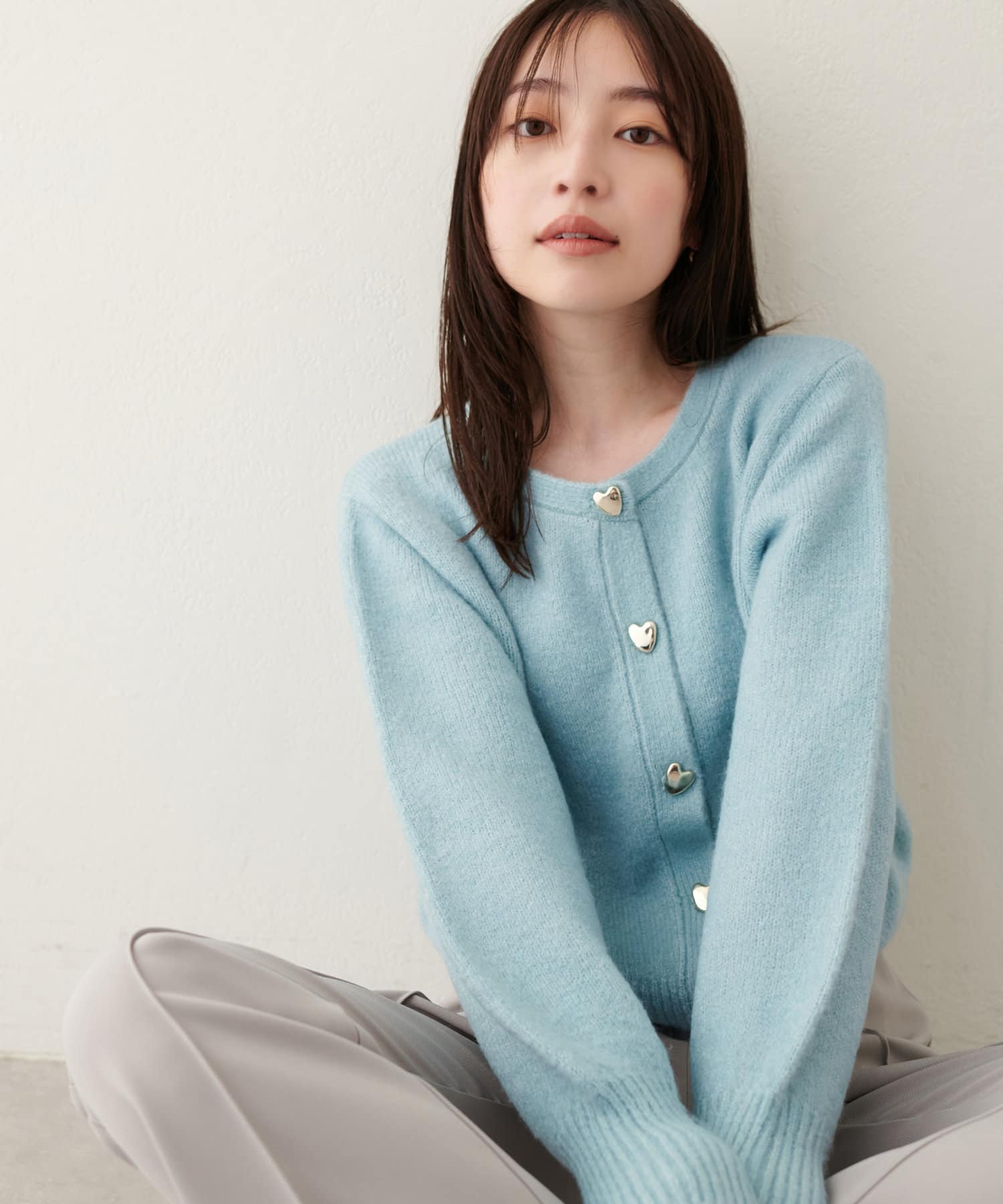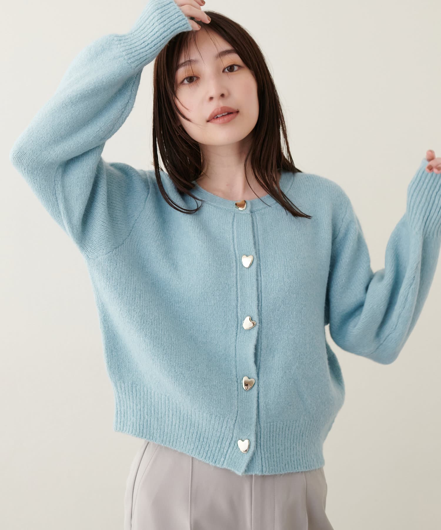 ふわふわの生地感とハート釦に存在感があるので、シンプルなコーディネートのアクセントになってくれます。