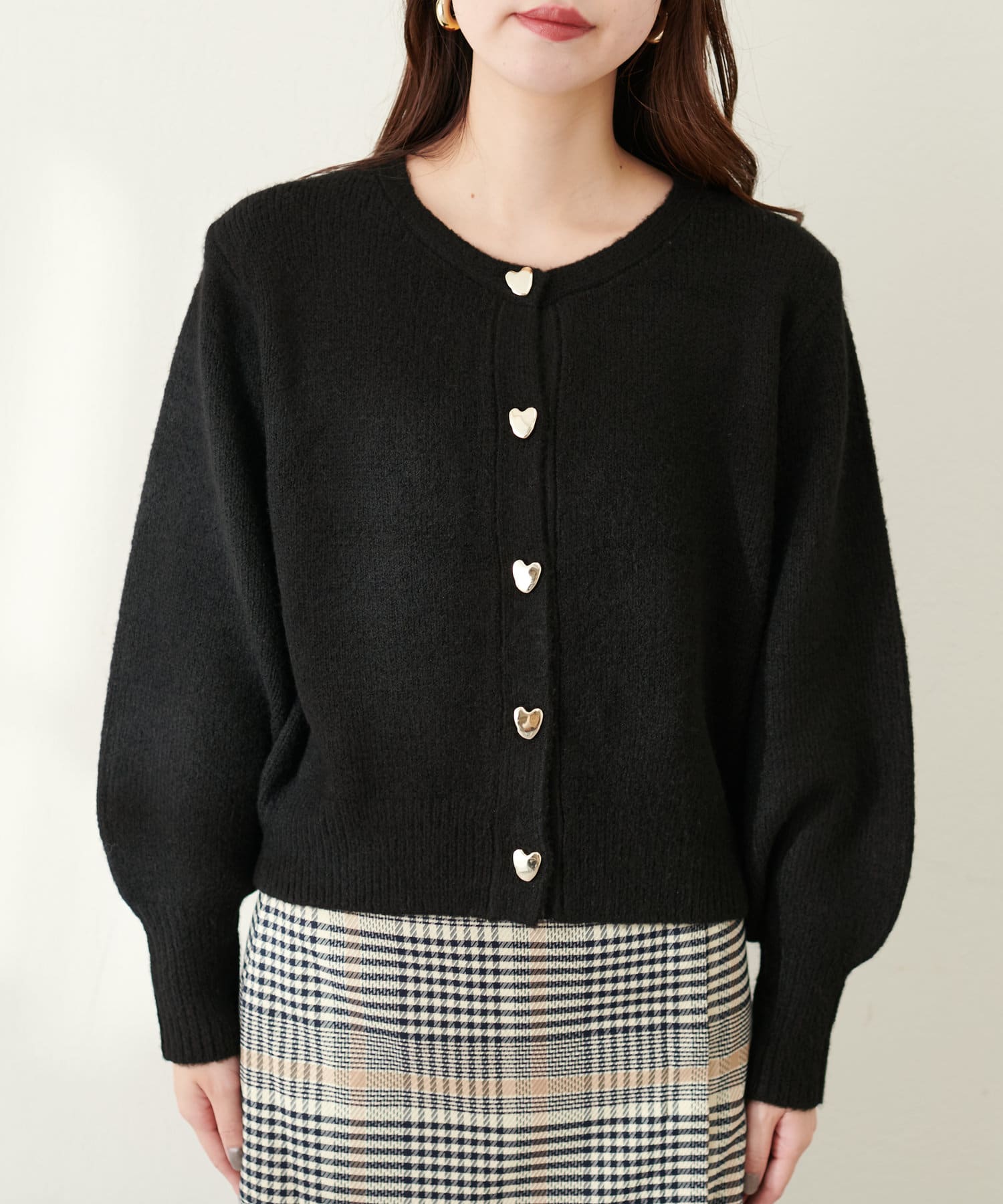 ハート釦クルーネックカーデ