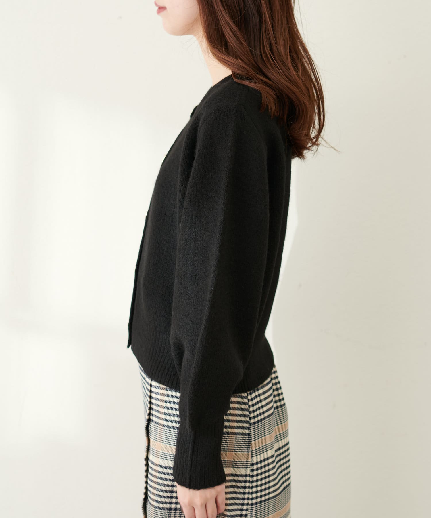 毛足がありふんわりと優しい触り心地のニットカーディガン。