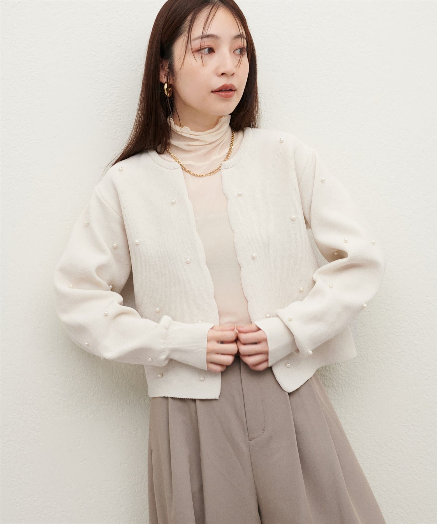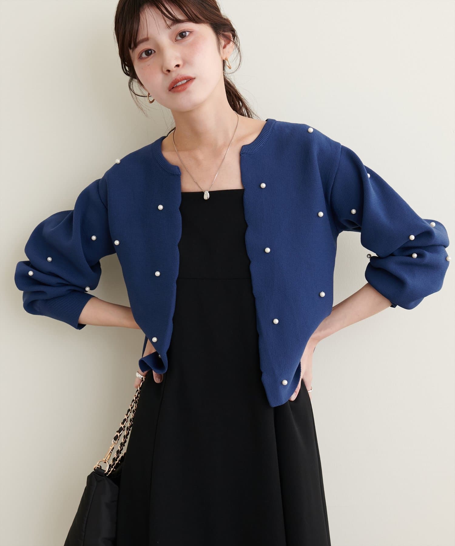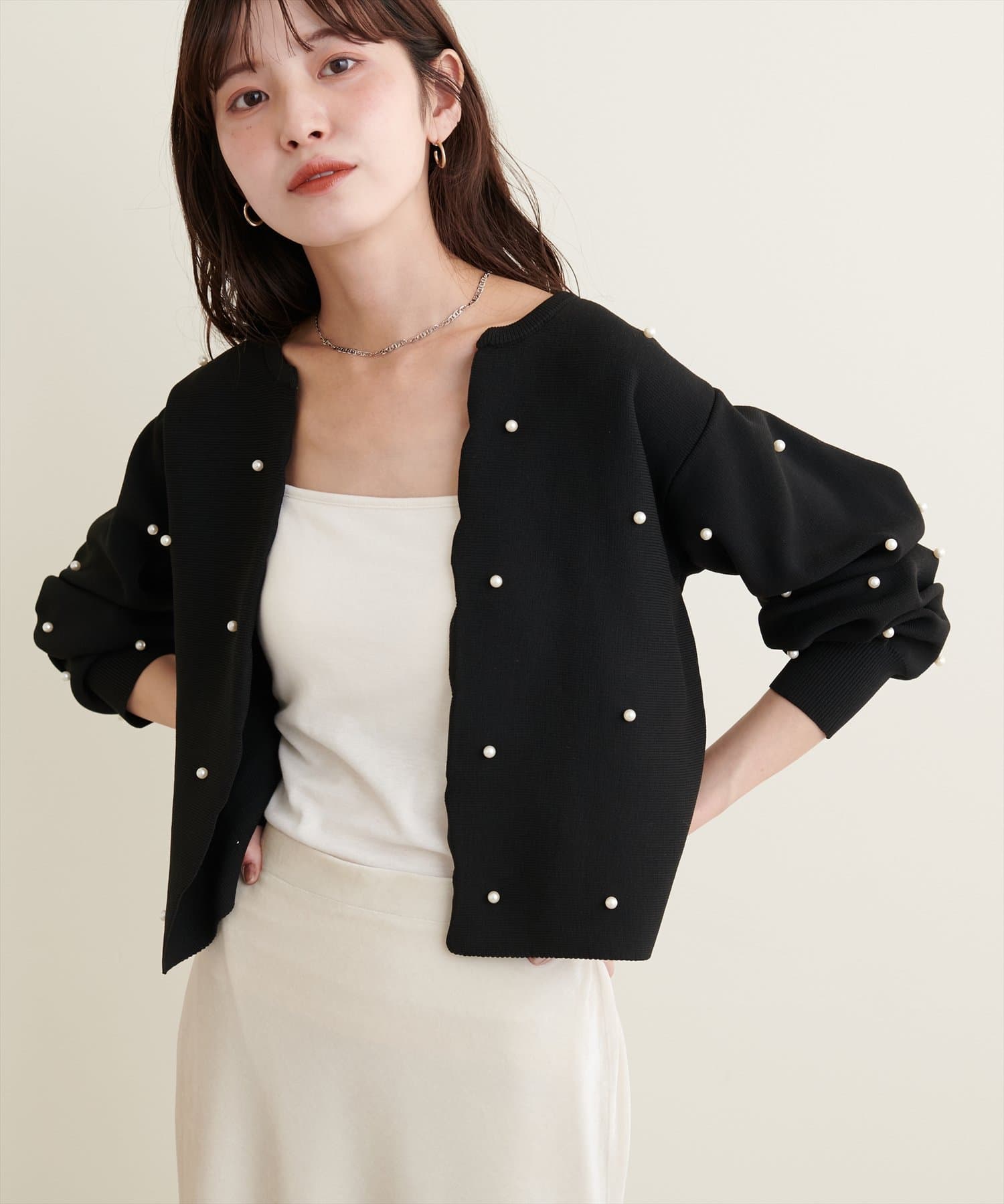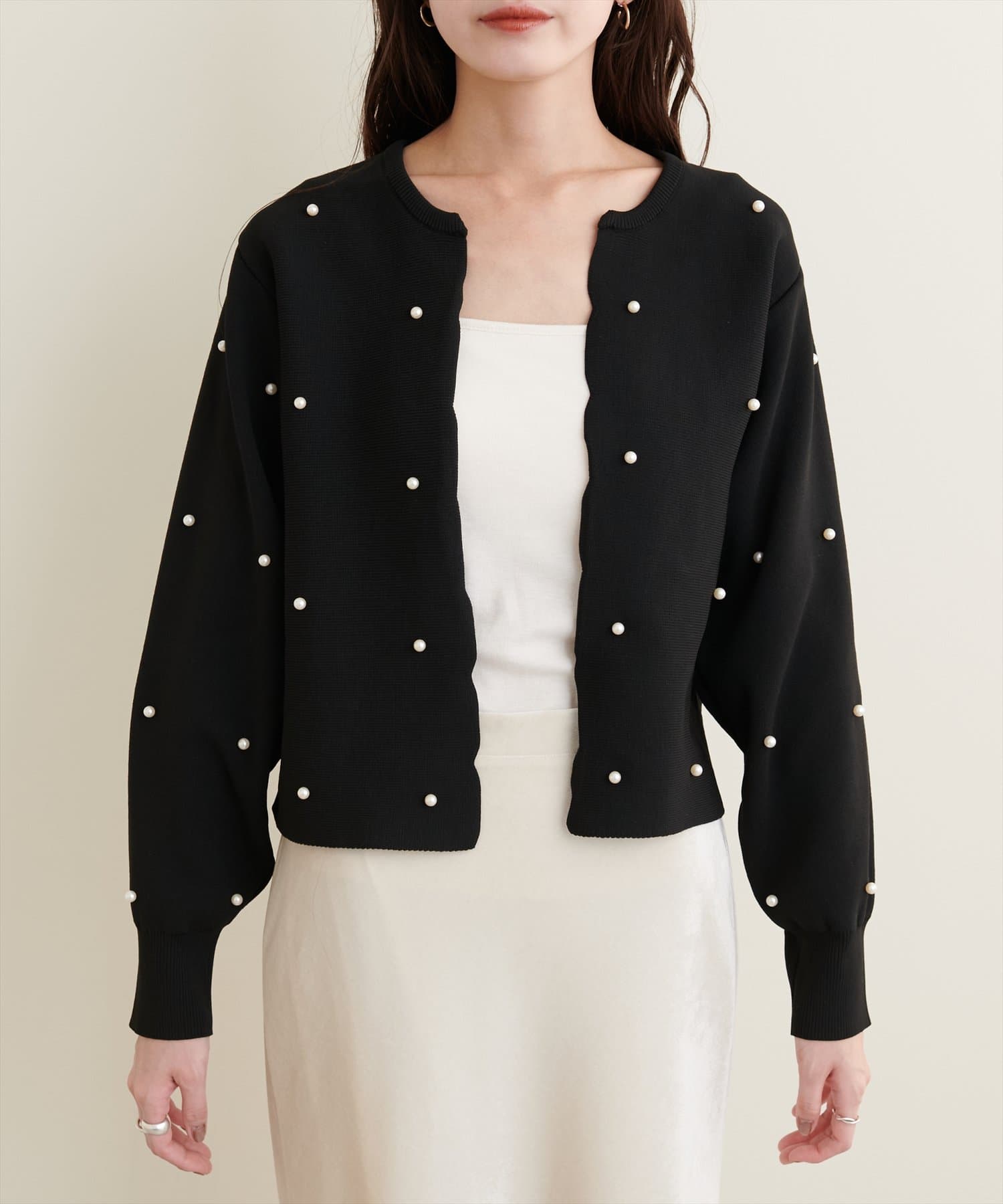 【Web限定】パールドットスカラップカーデ