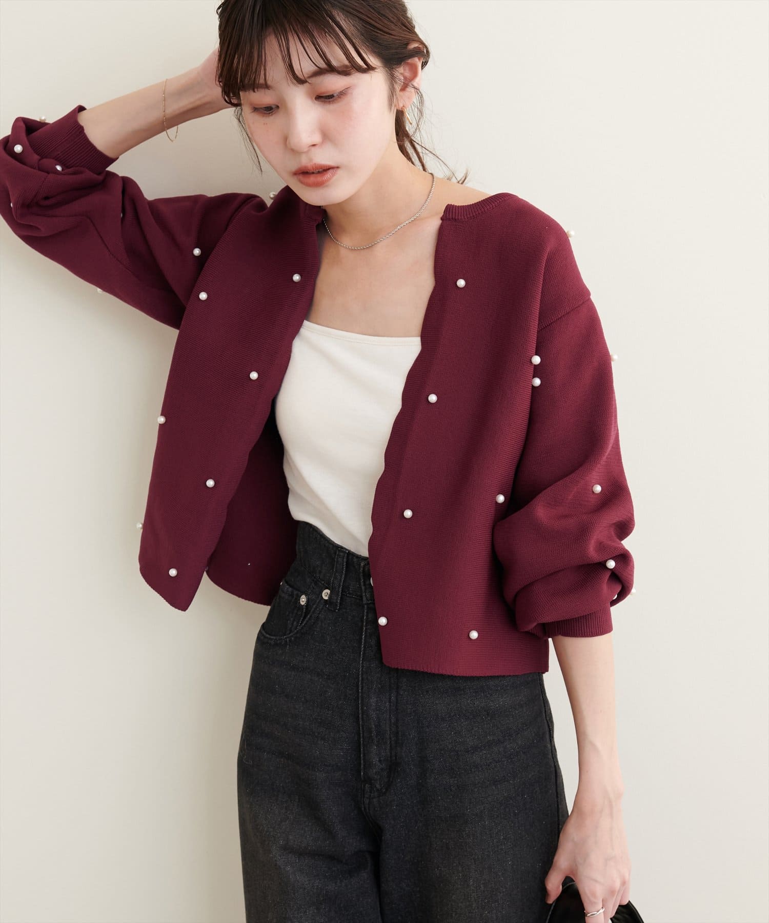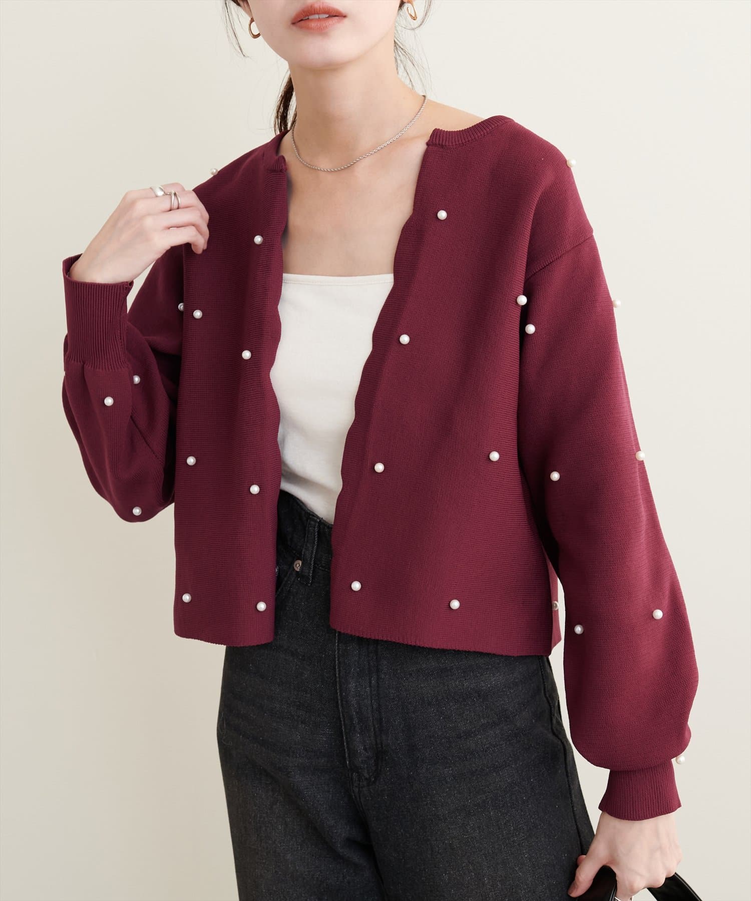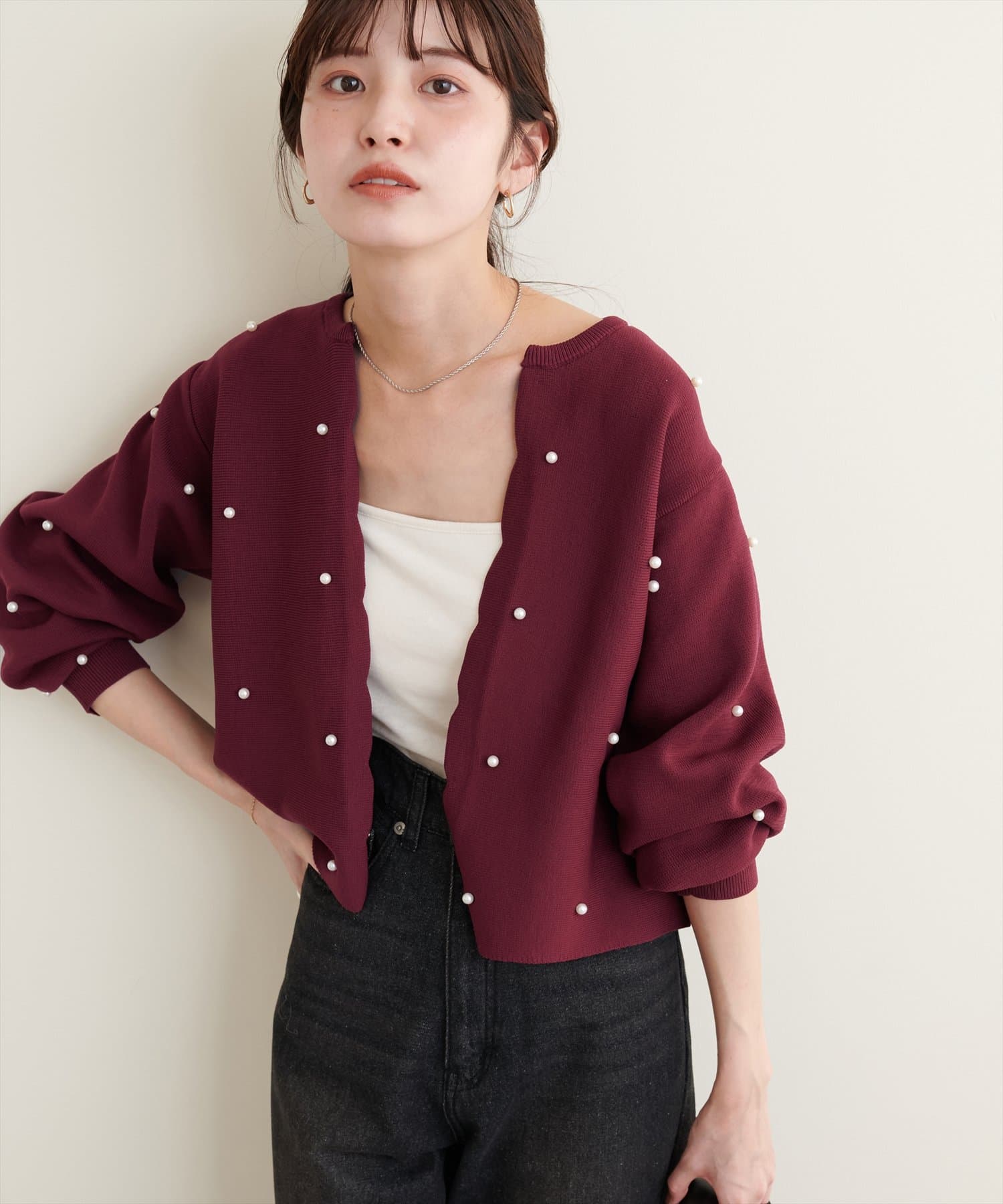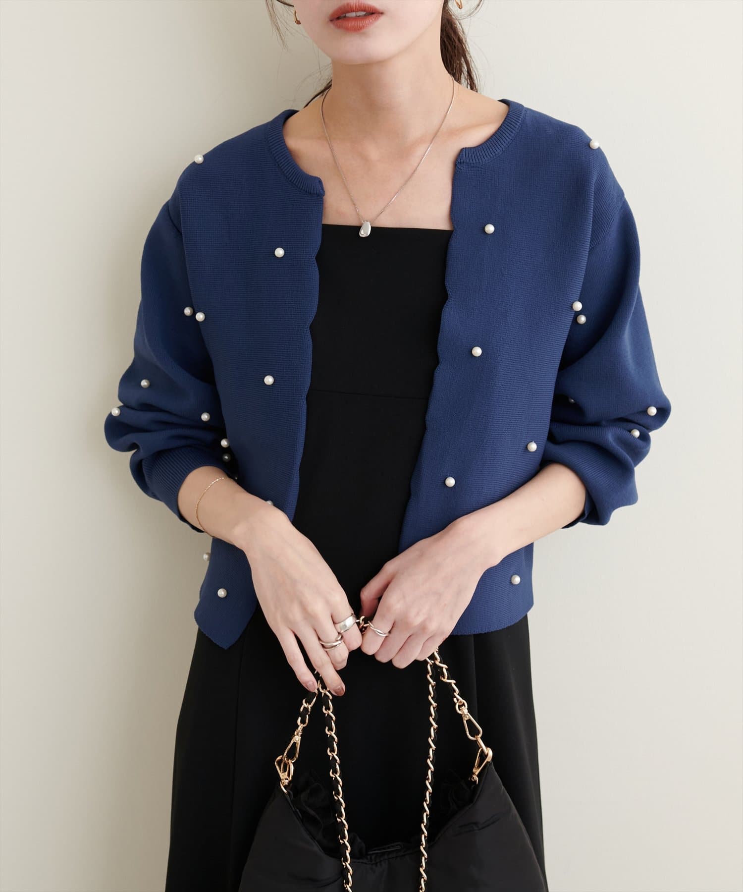 【Web限定】パールドットスカラップカーデ
