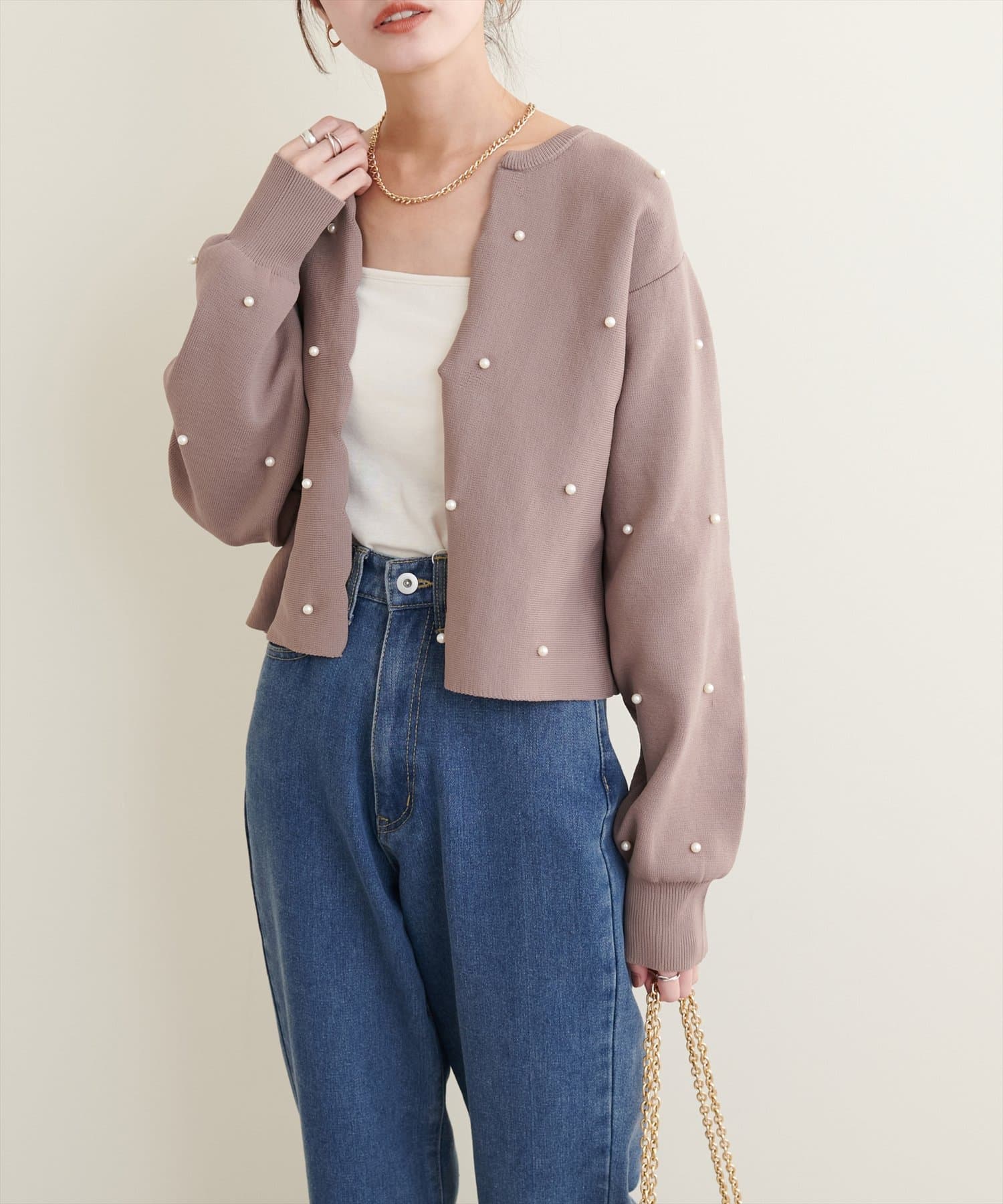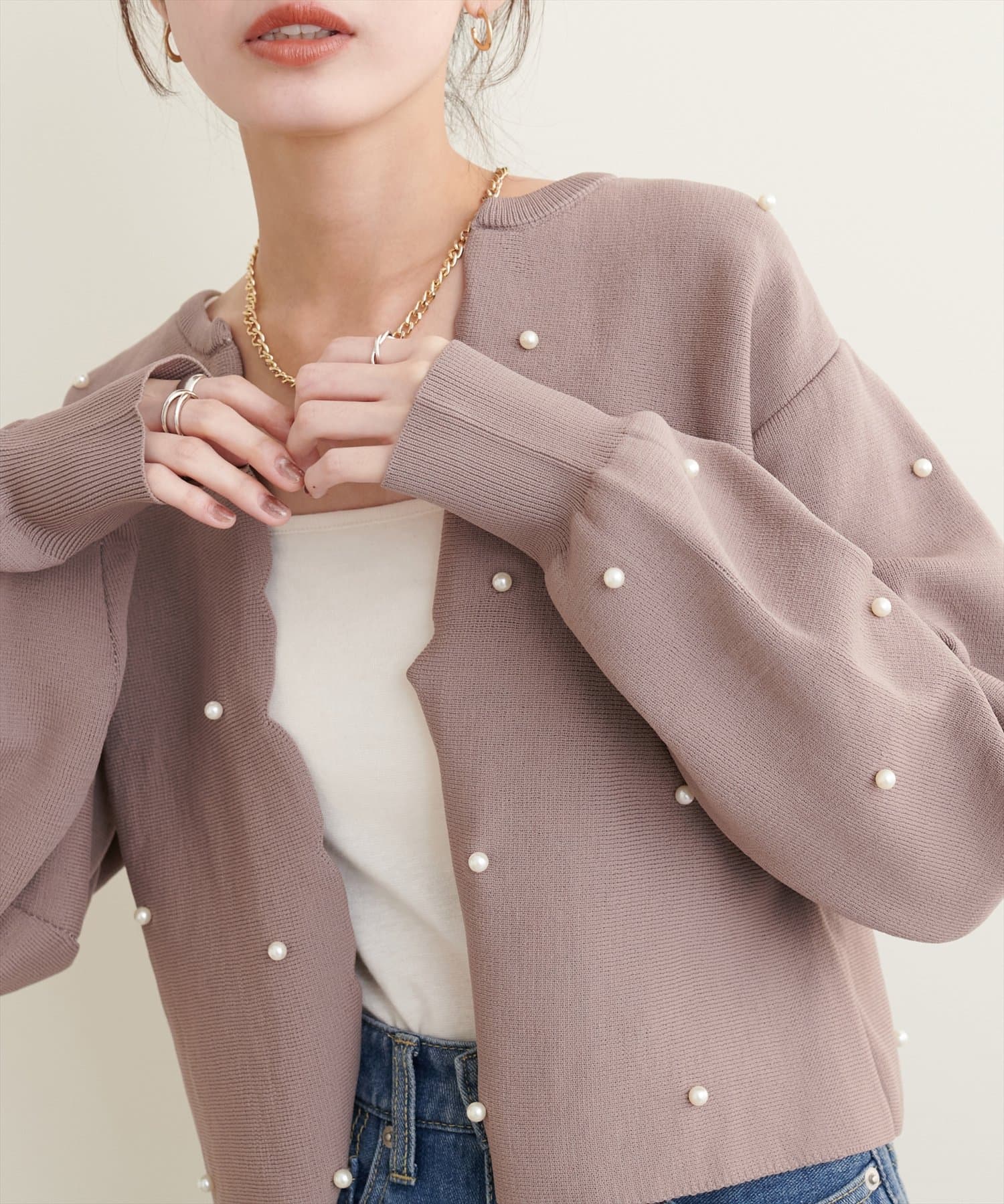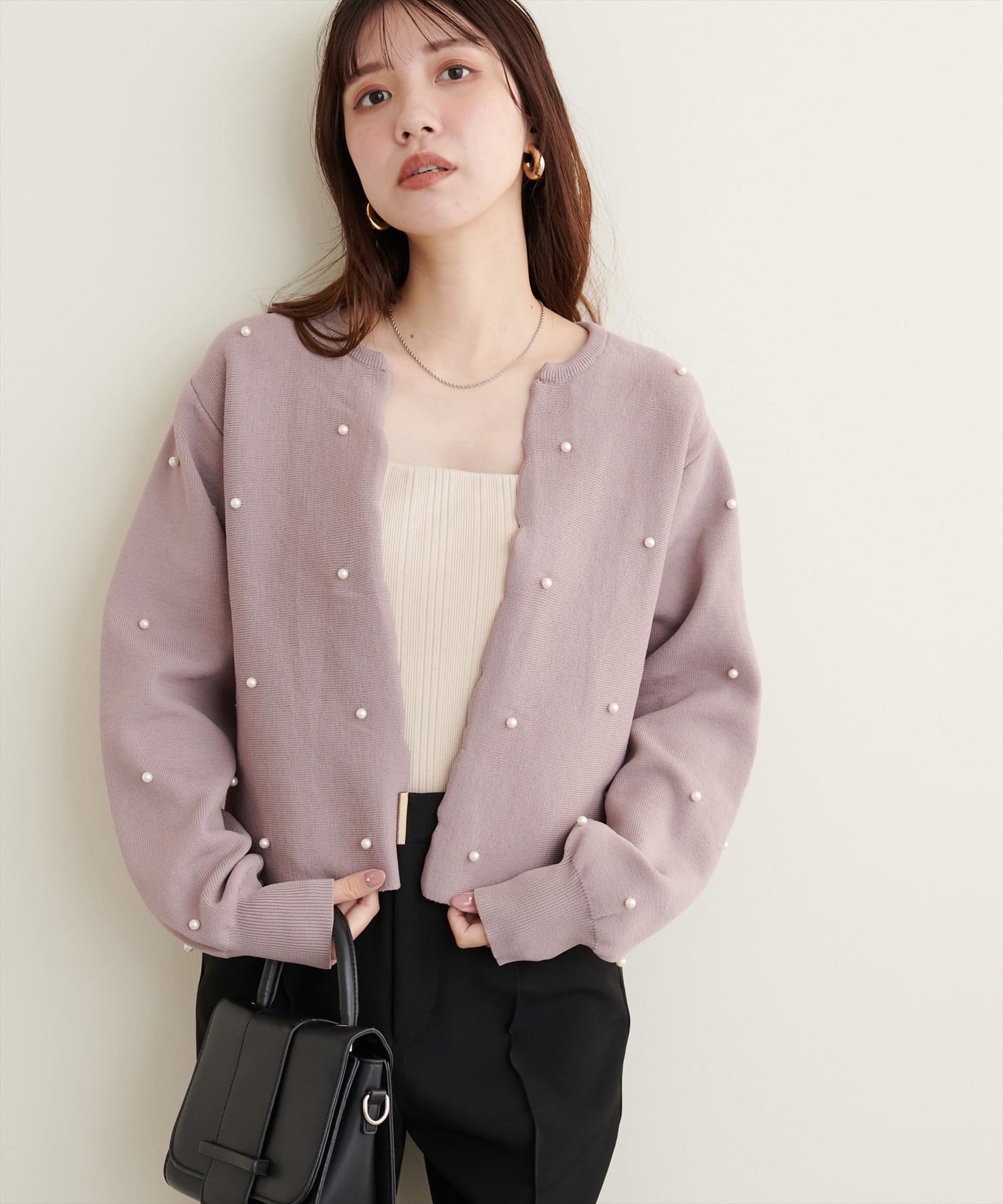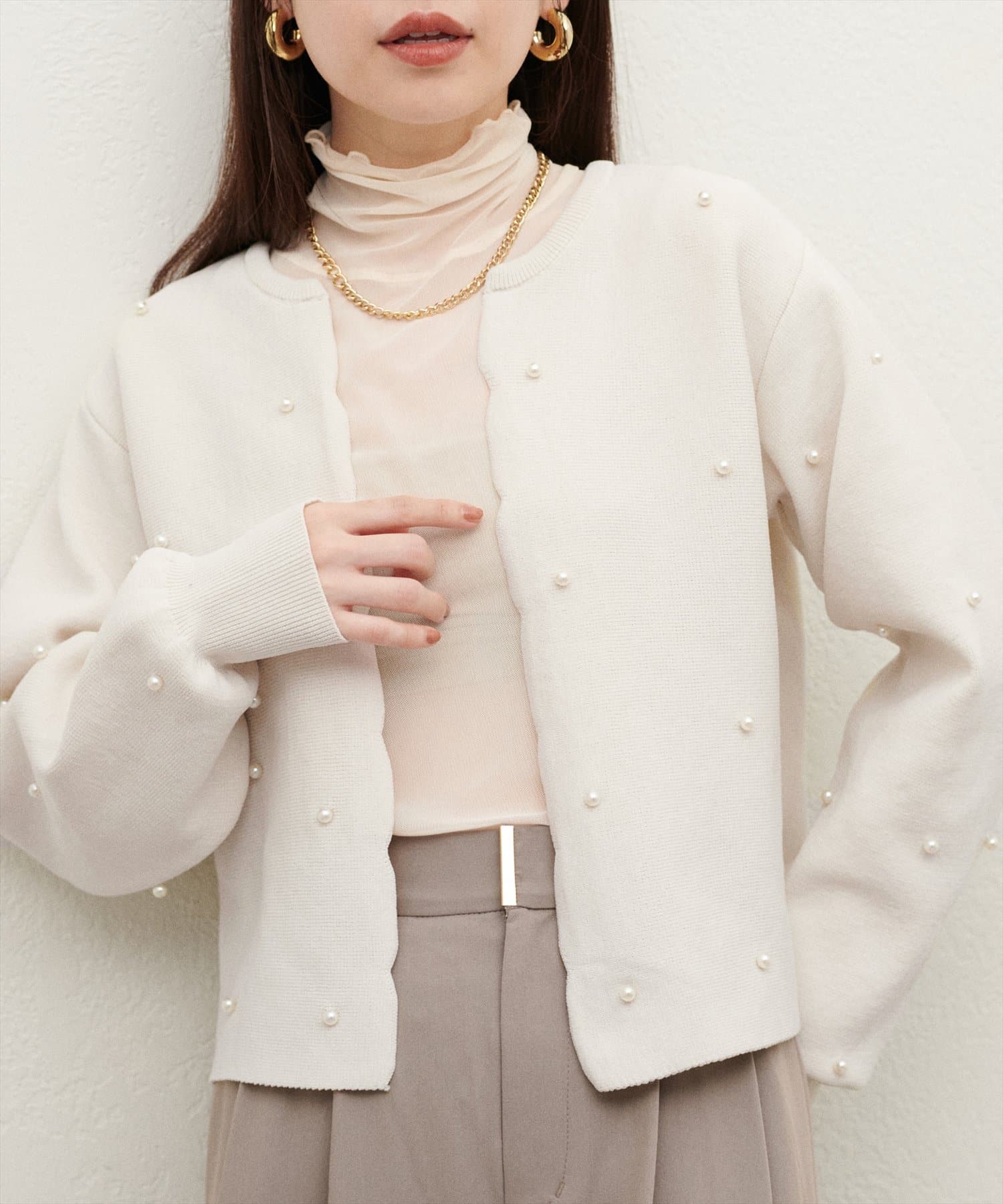 【Web限定】パールドットスカラップカーデ
