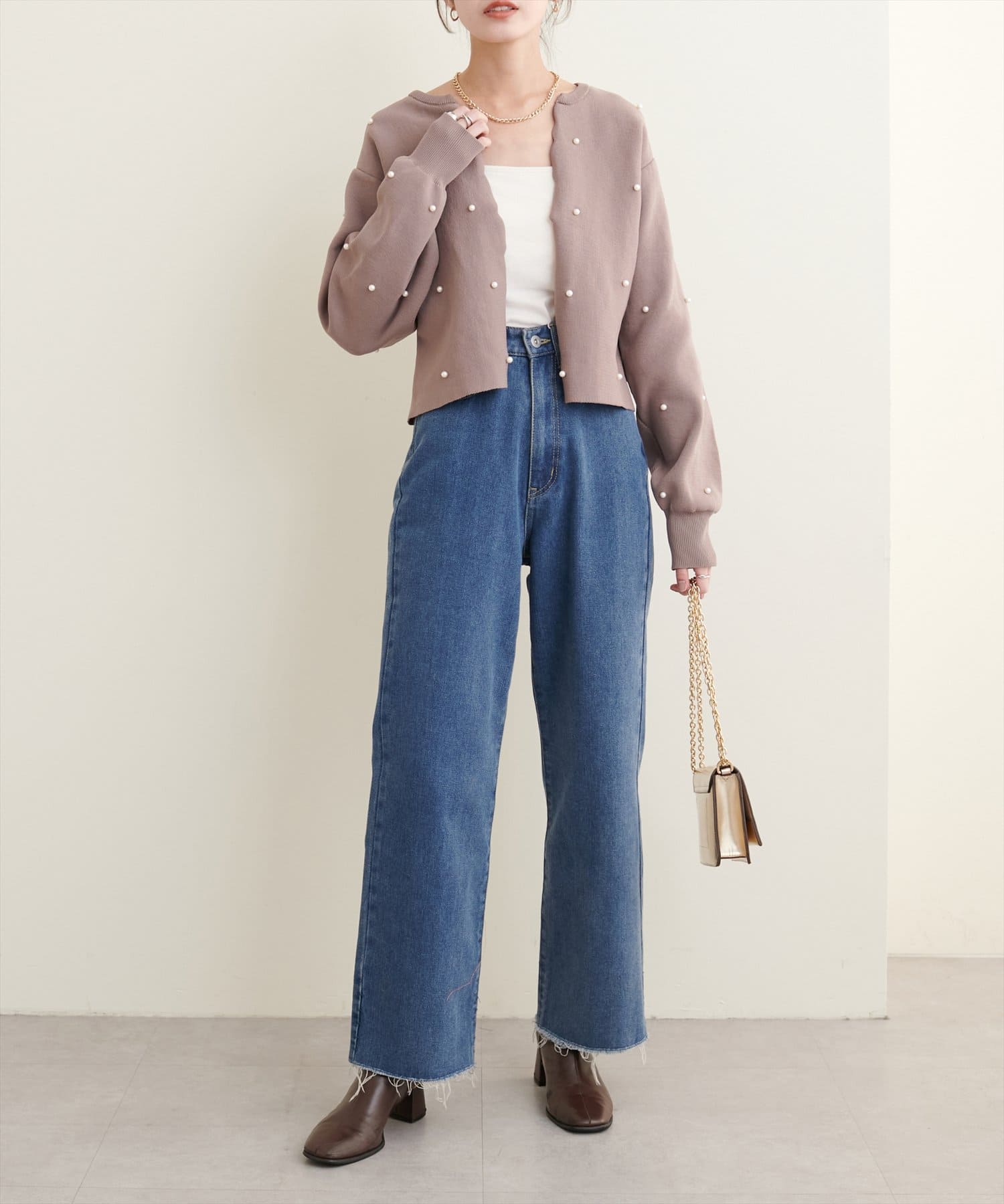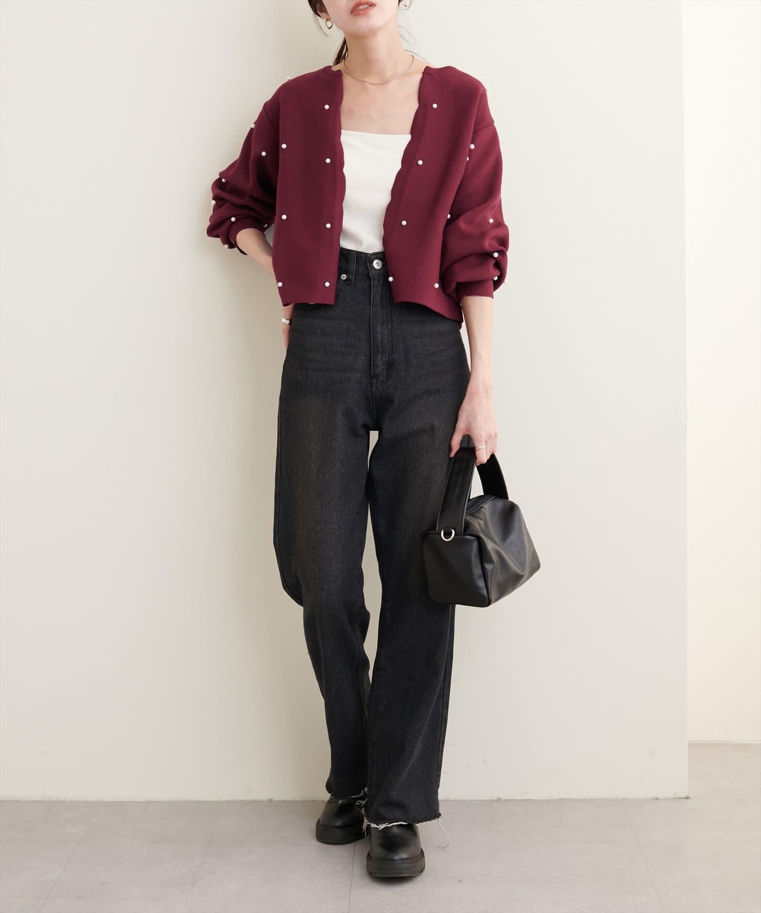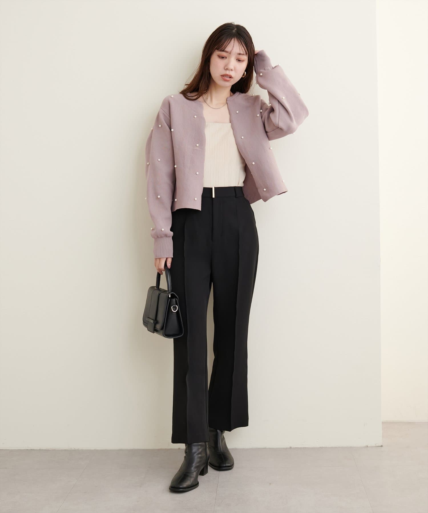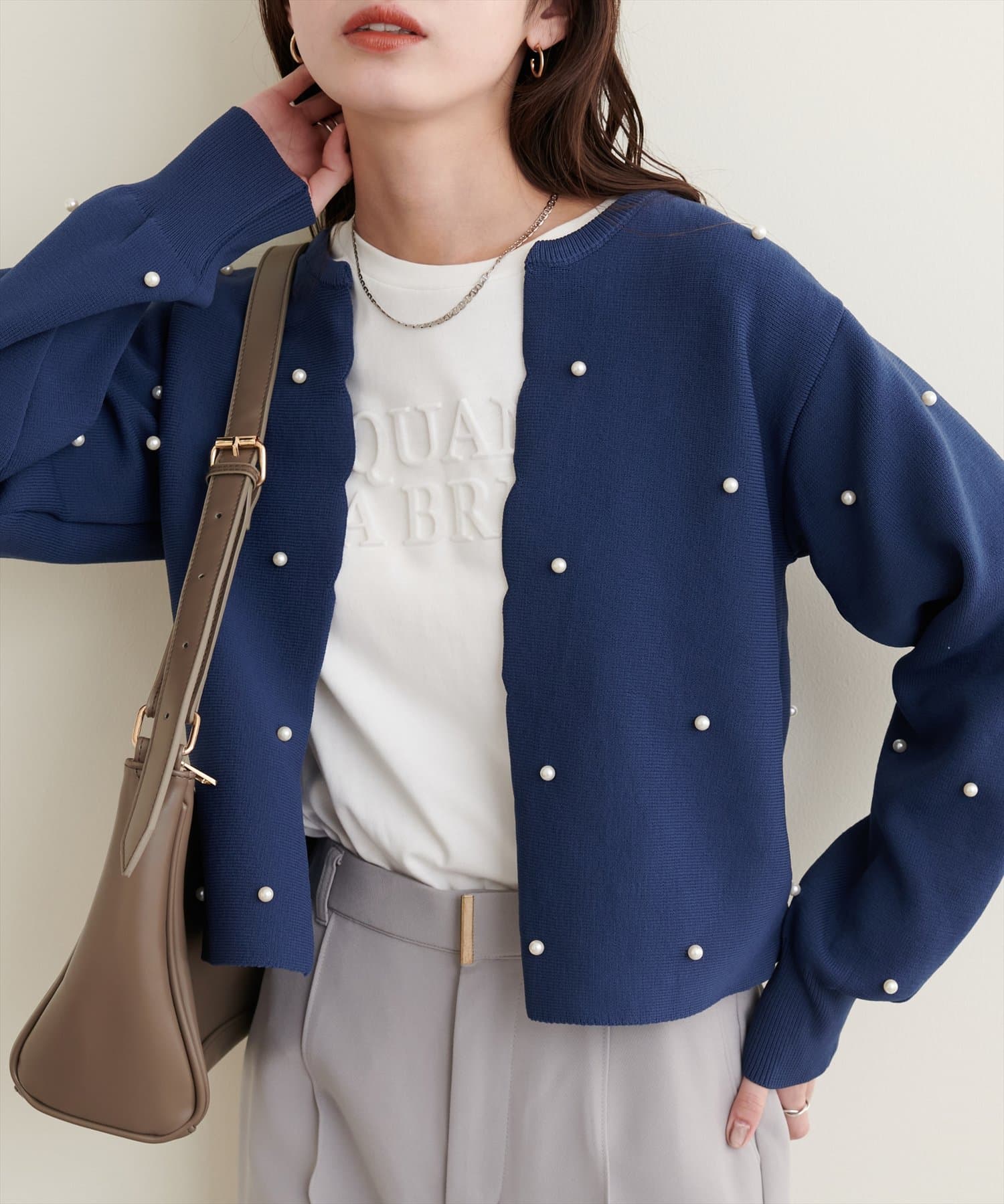 【Web限定】パールドットスカラップカーデ