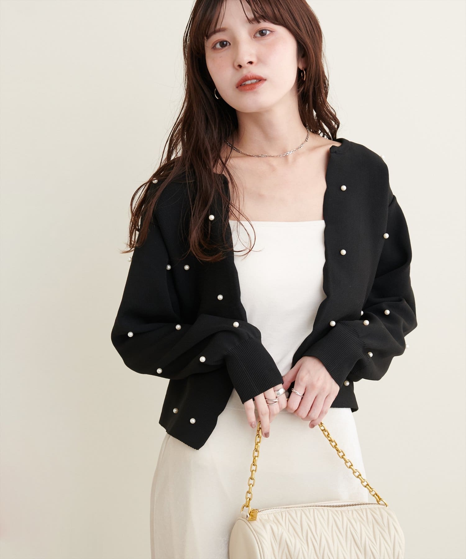 全体に散りばめられたパールが上品さを演出。