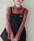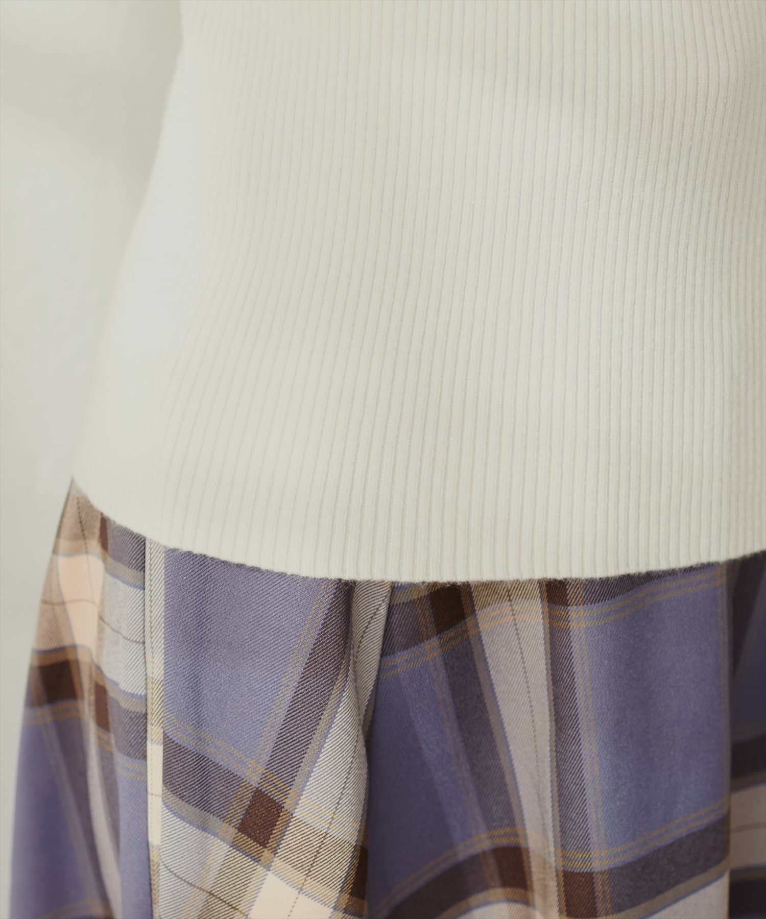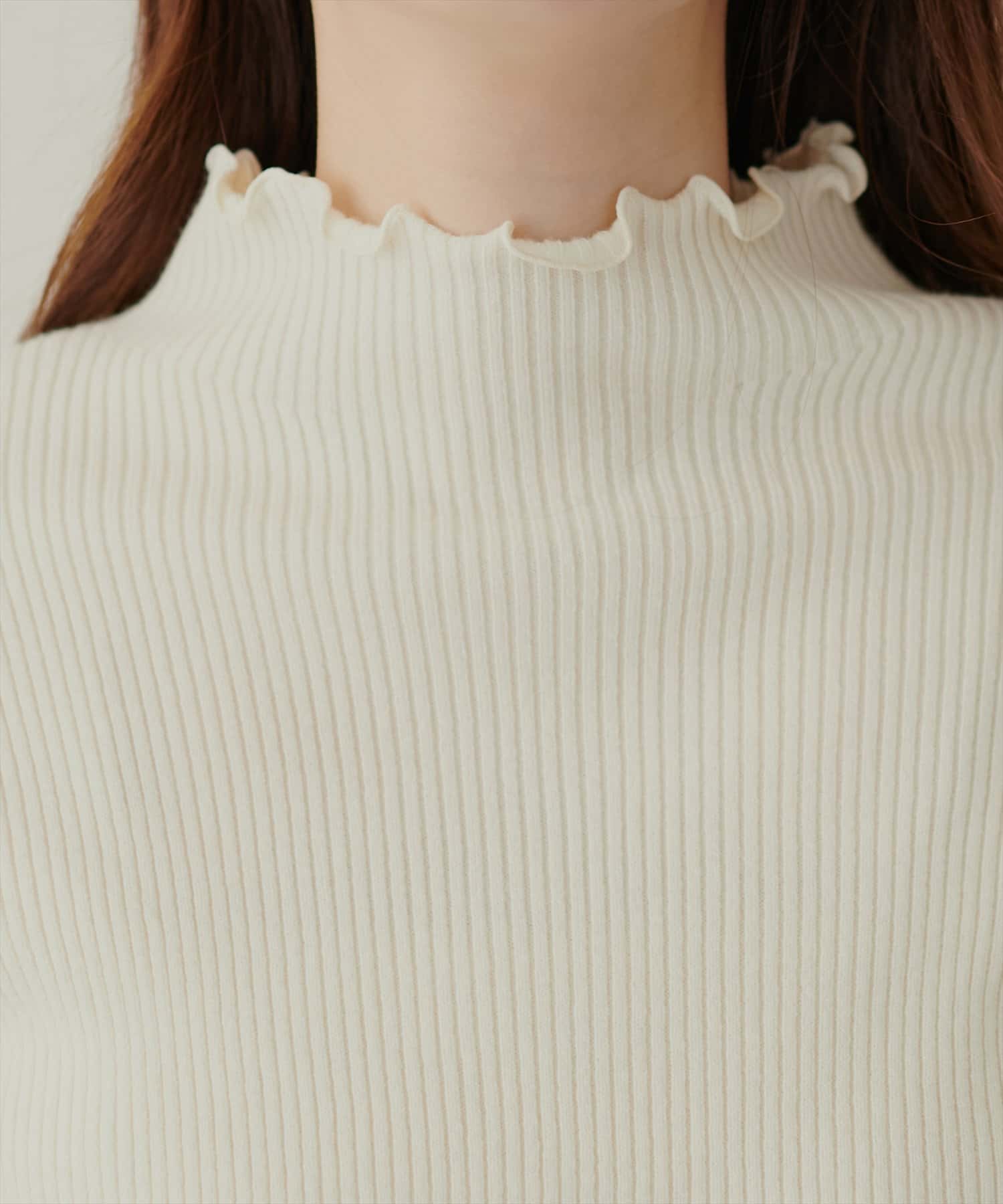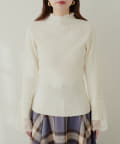 体のラインに優しくフィットする伸縮性のあるリブニットに、袖のディティールが女性らしさを演出します。