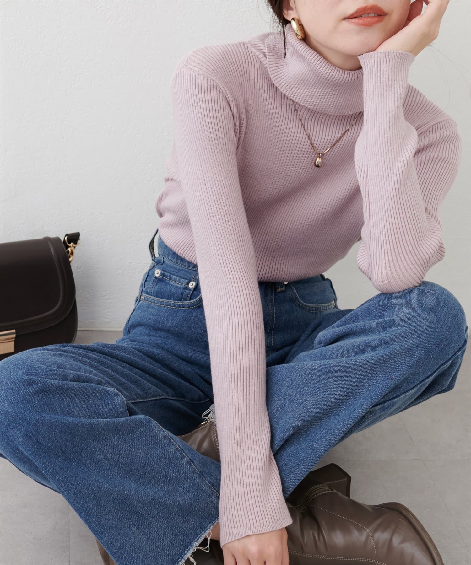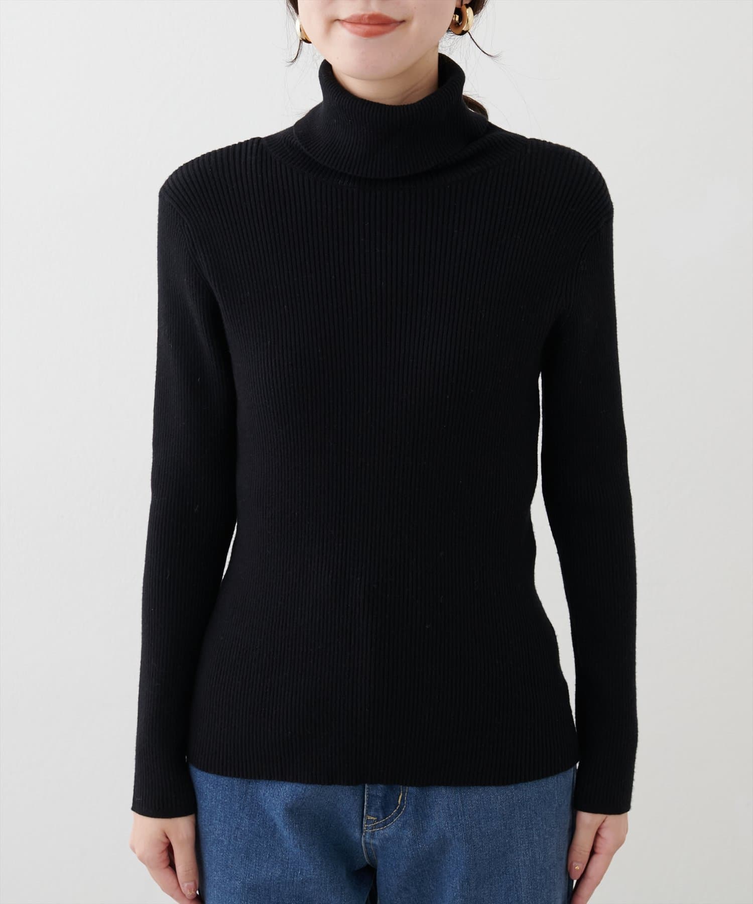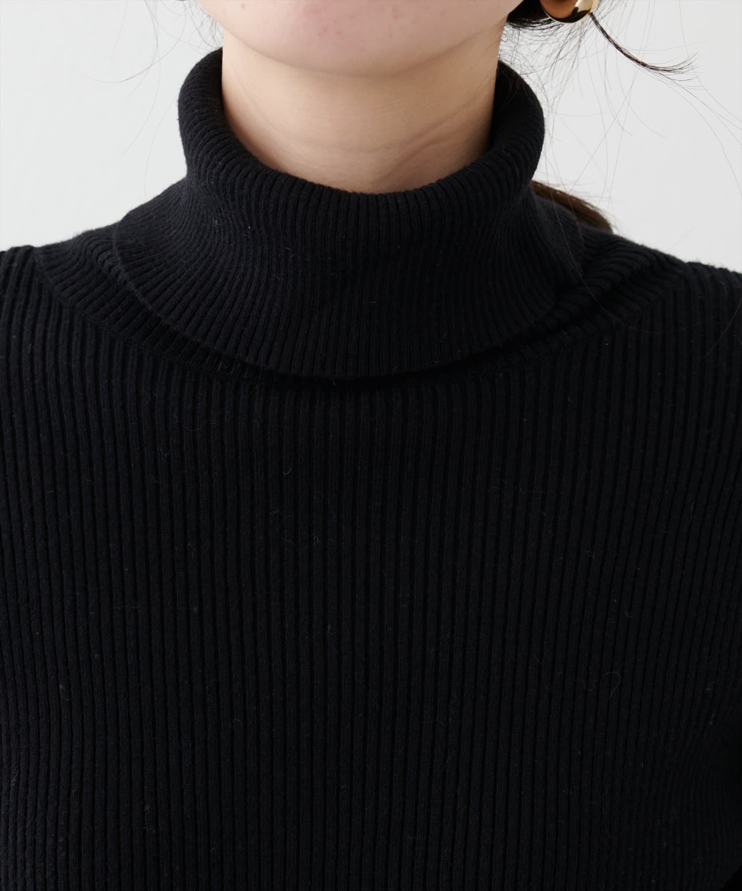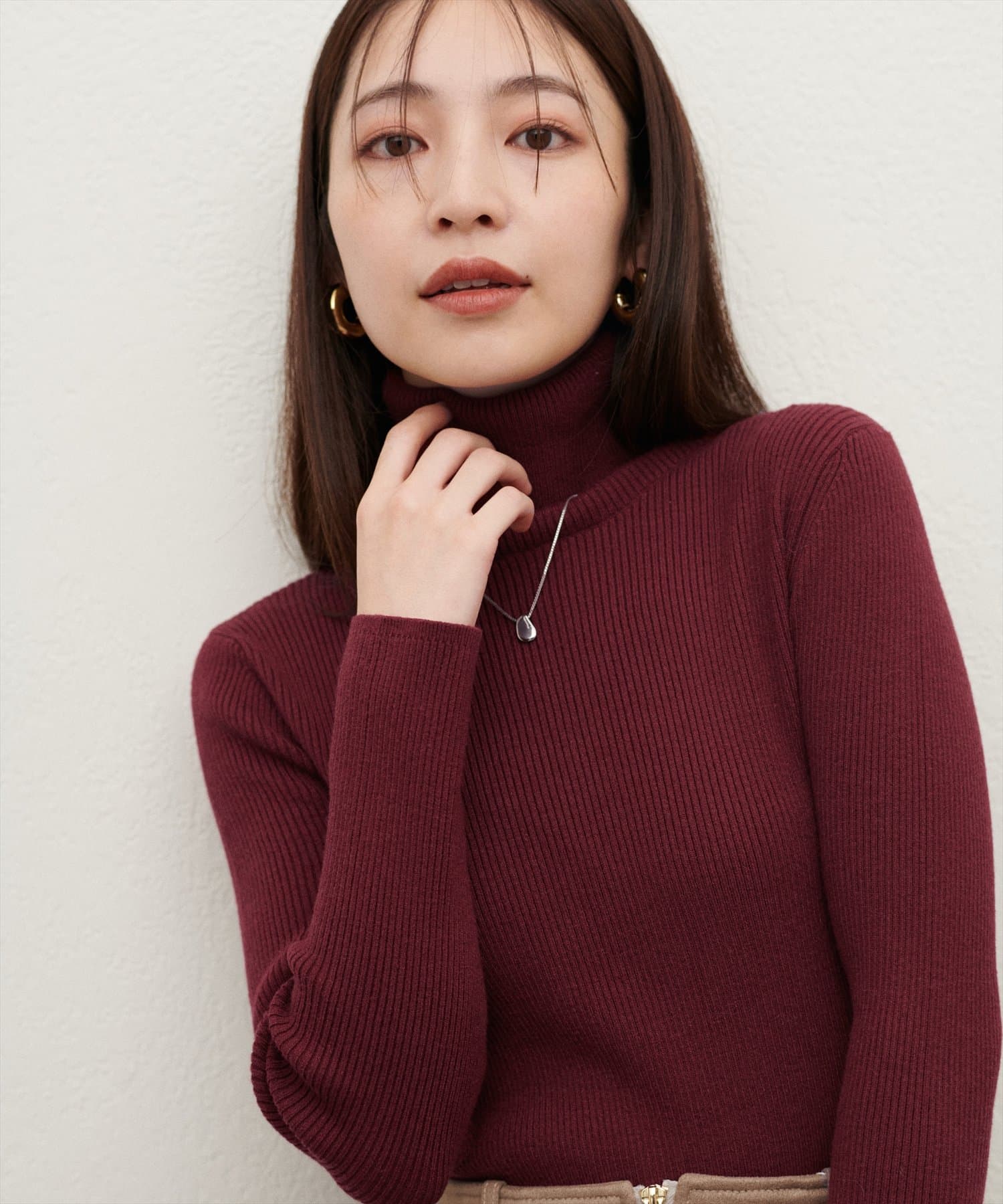 すっきりシンプルなデザインで着回しのきくリブタートルネック。