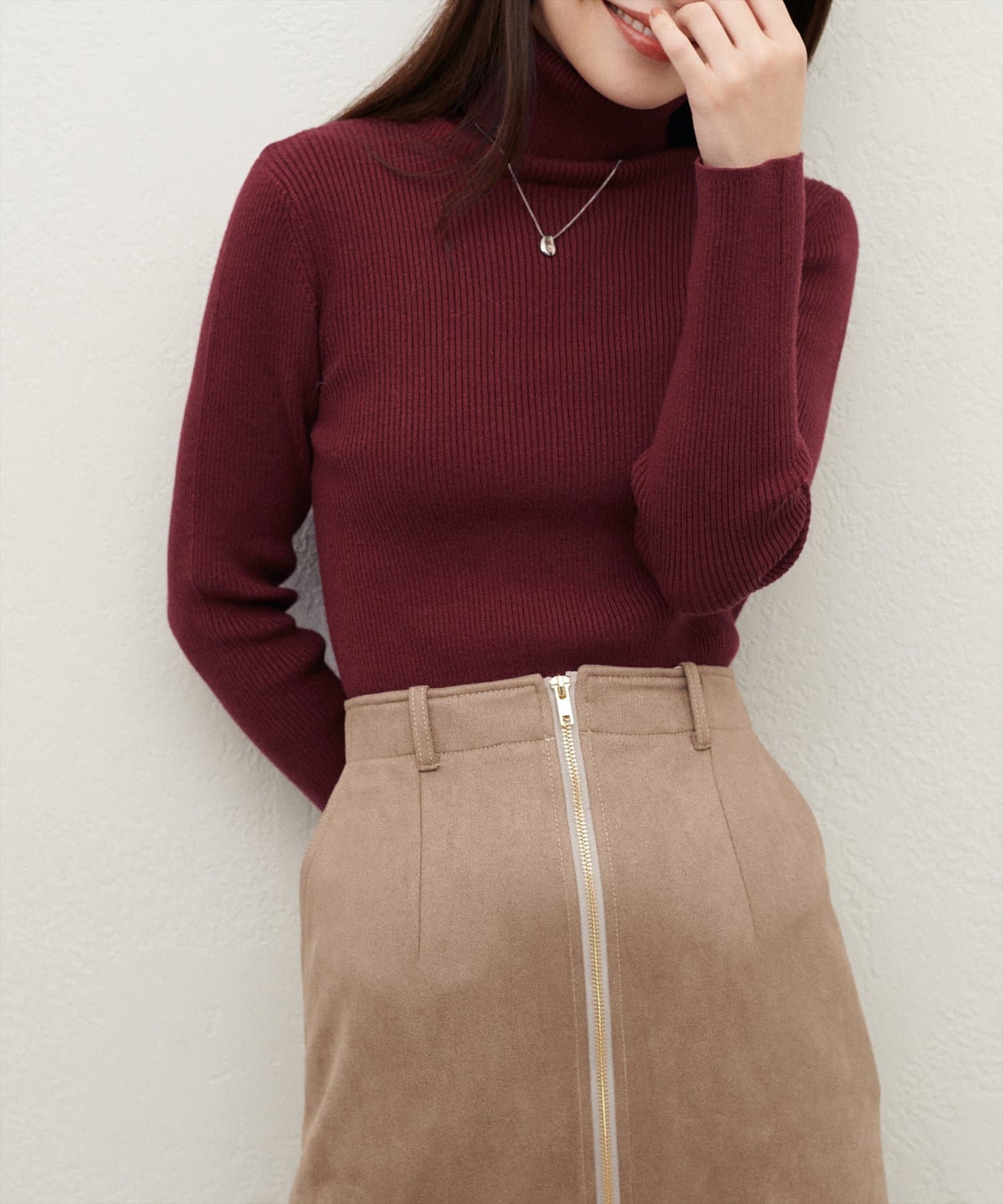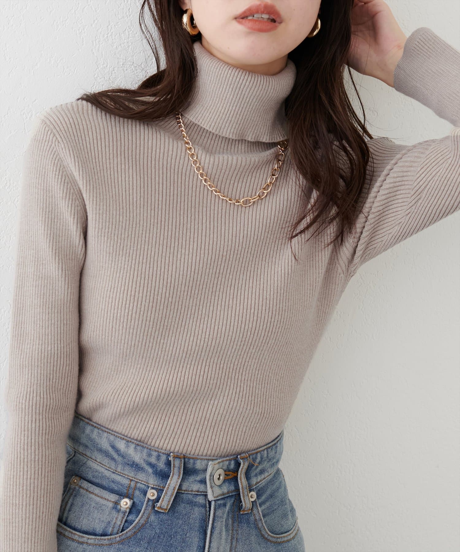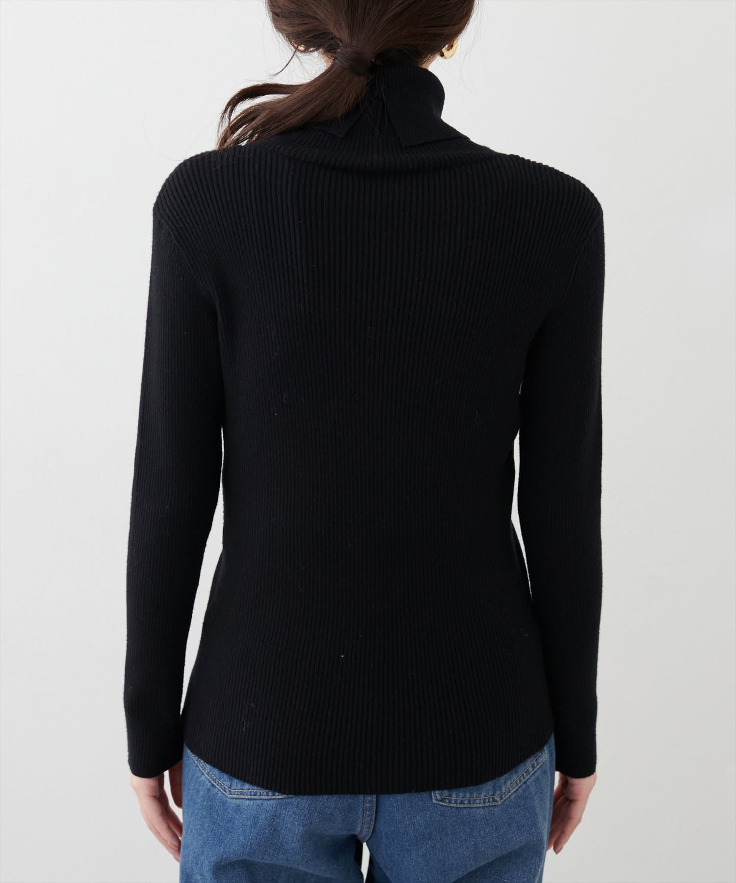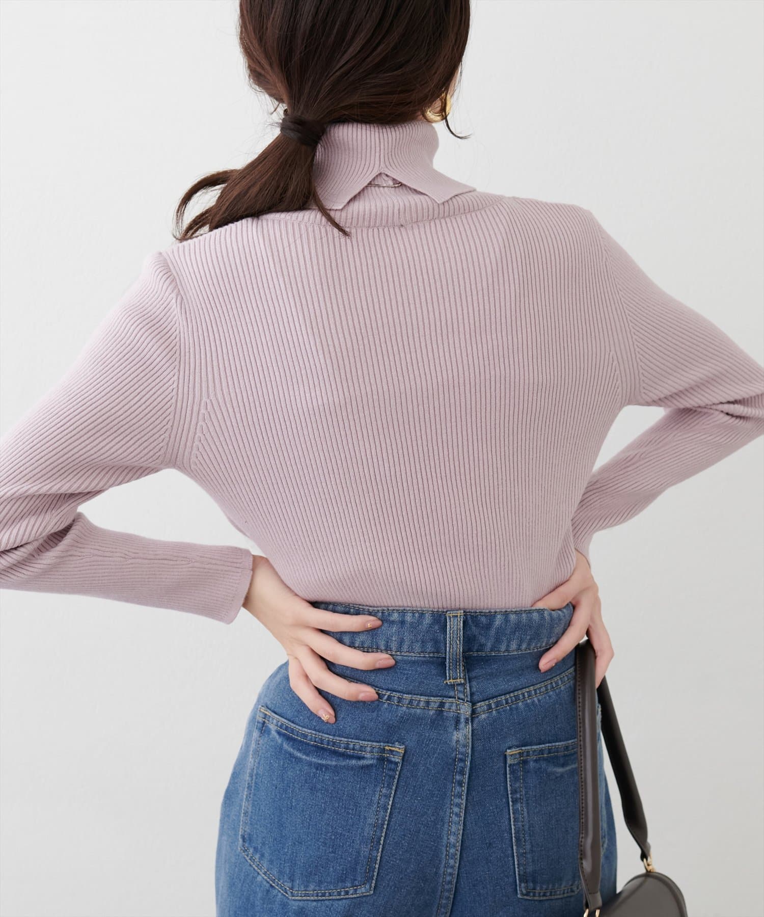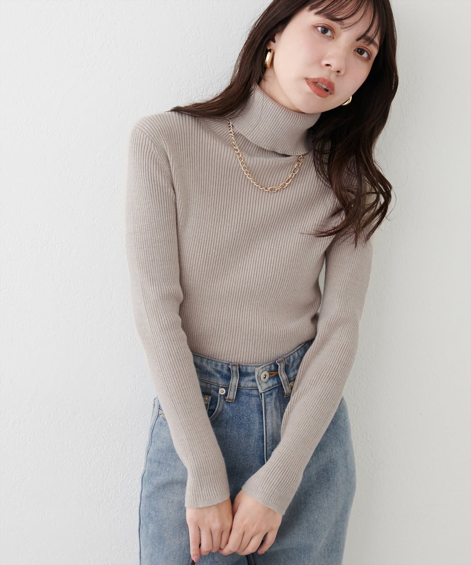 すっきりシンプルなデザインで着回しのきくリブタートルネック。