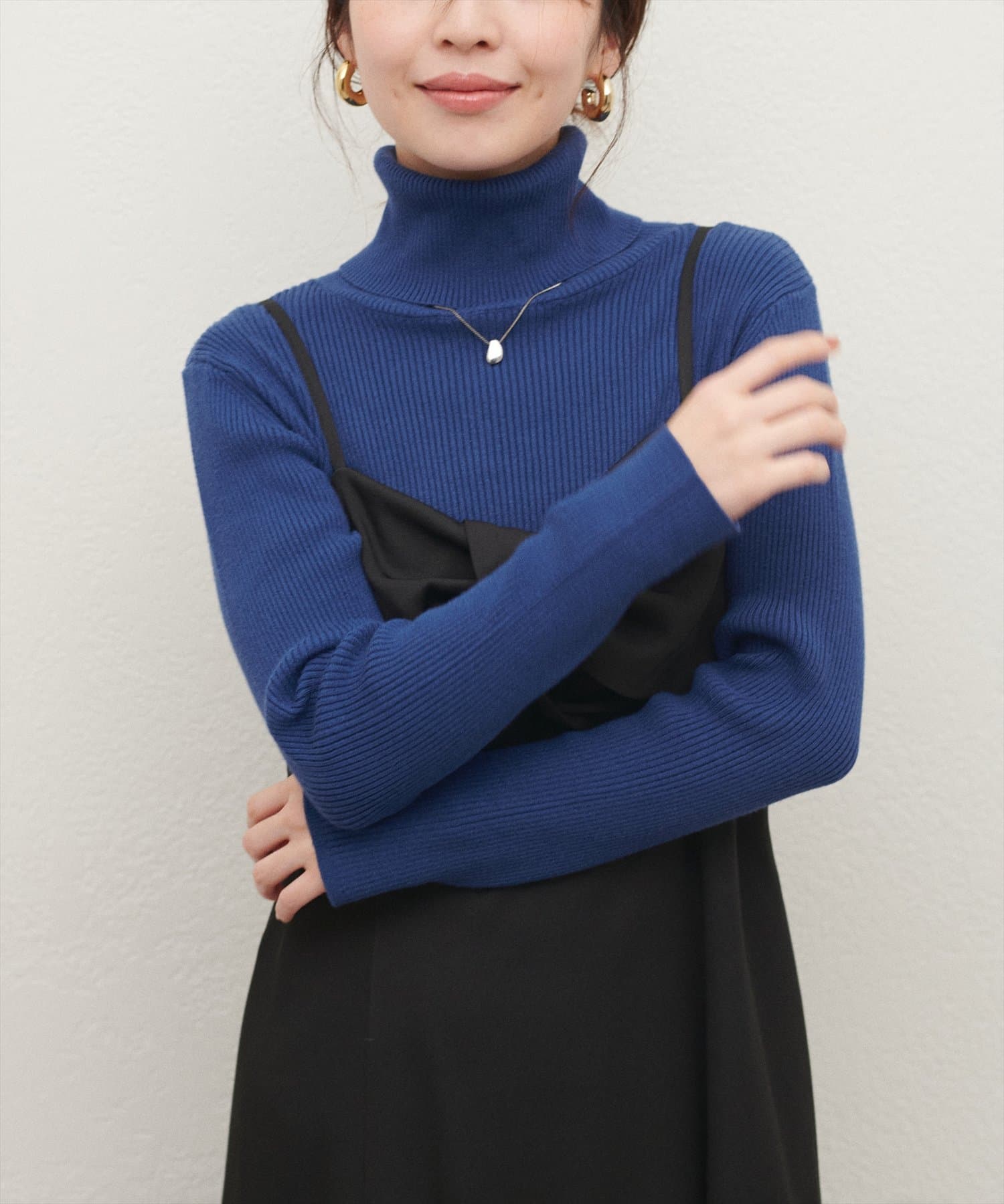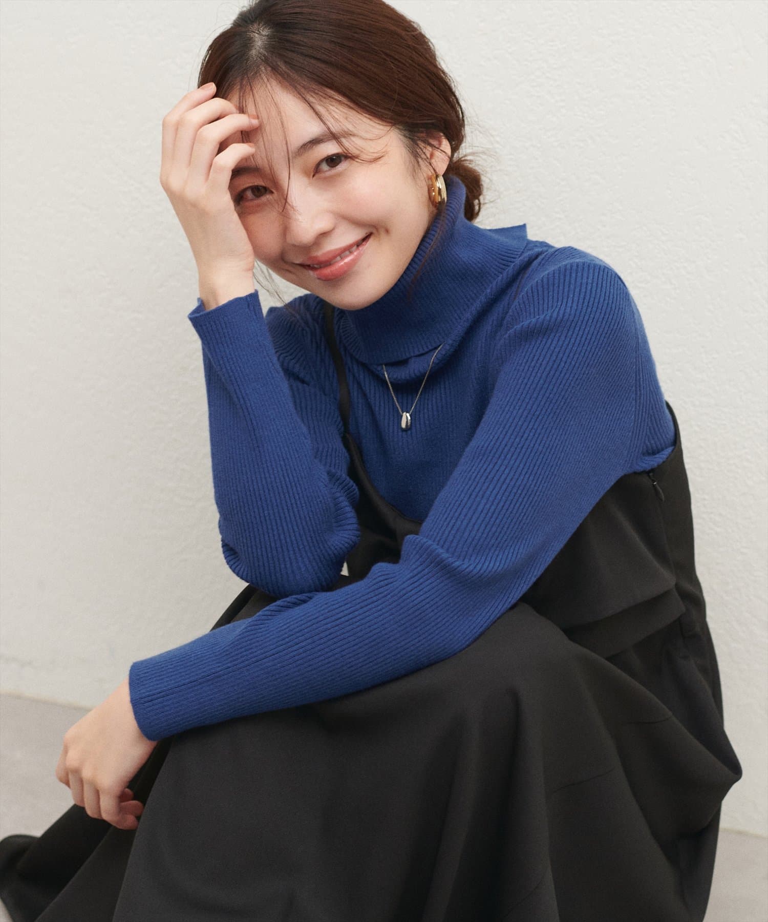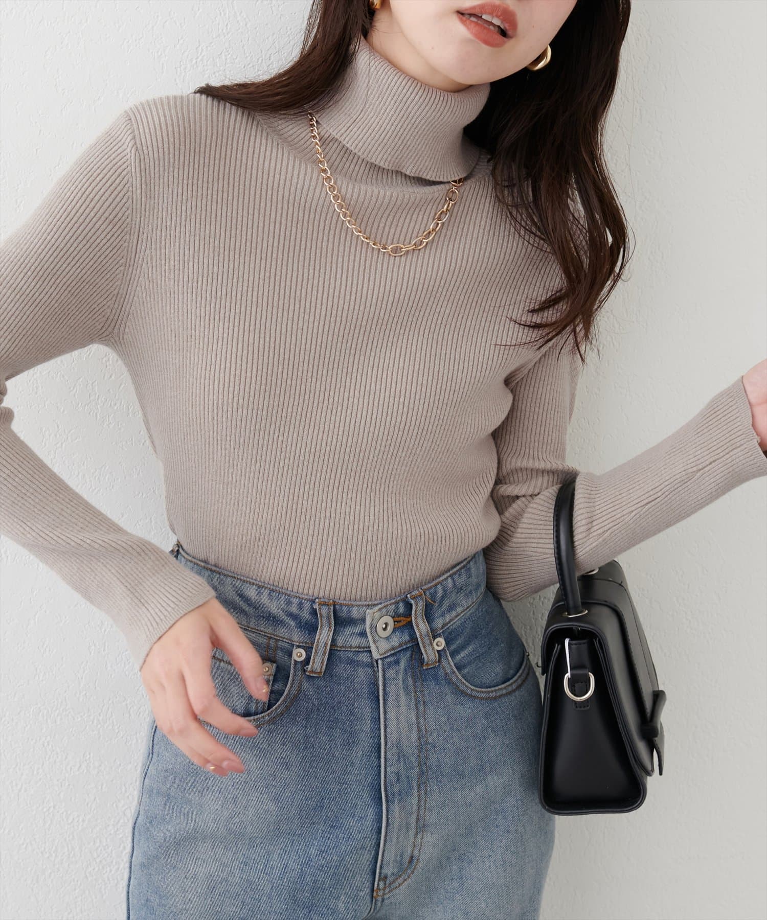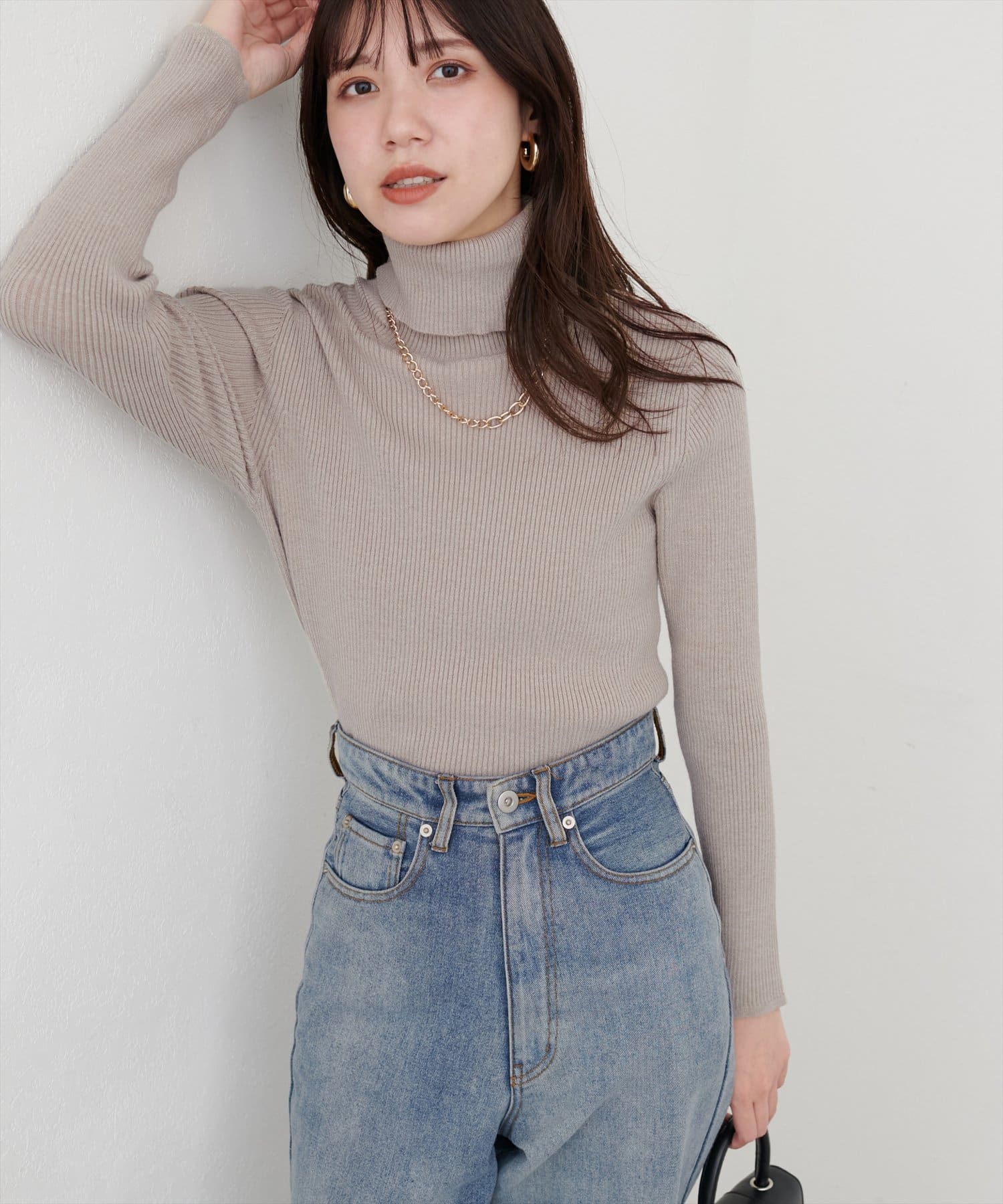 すっきりシンプルなデザインで着回しのきくリブタートルネック。