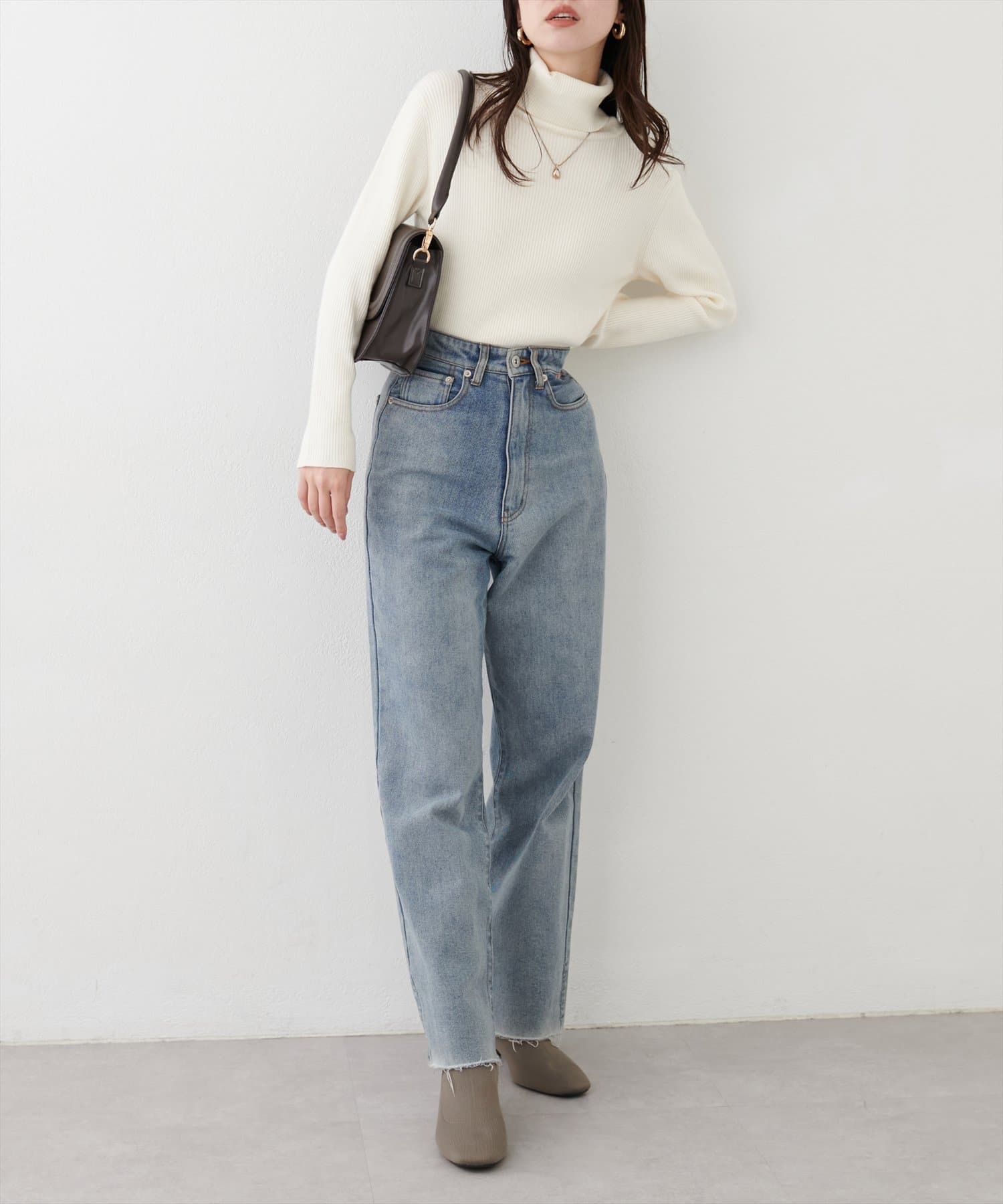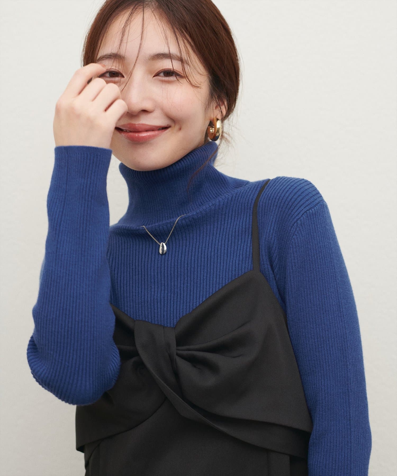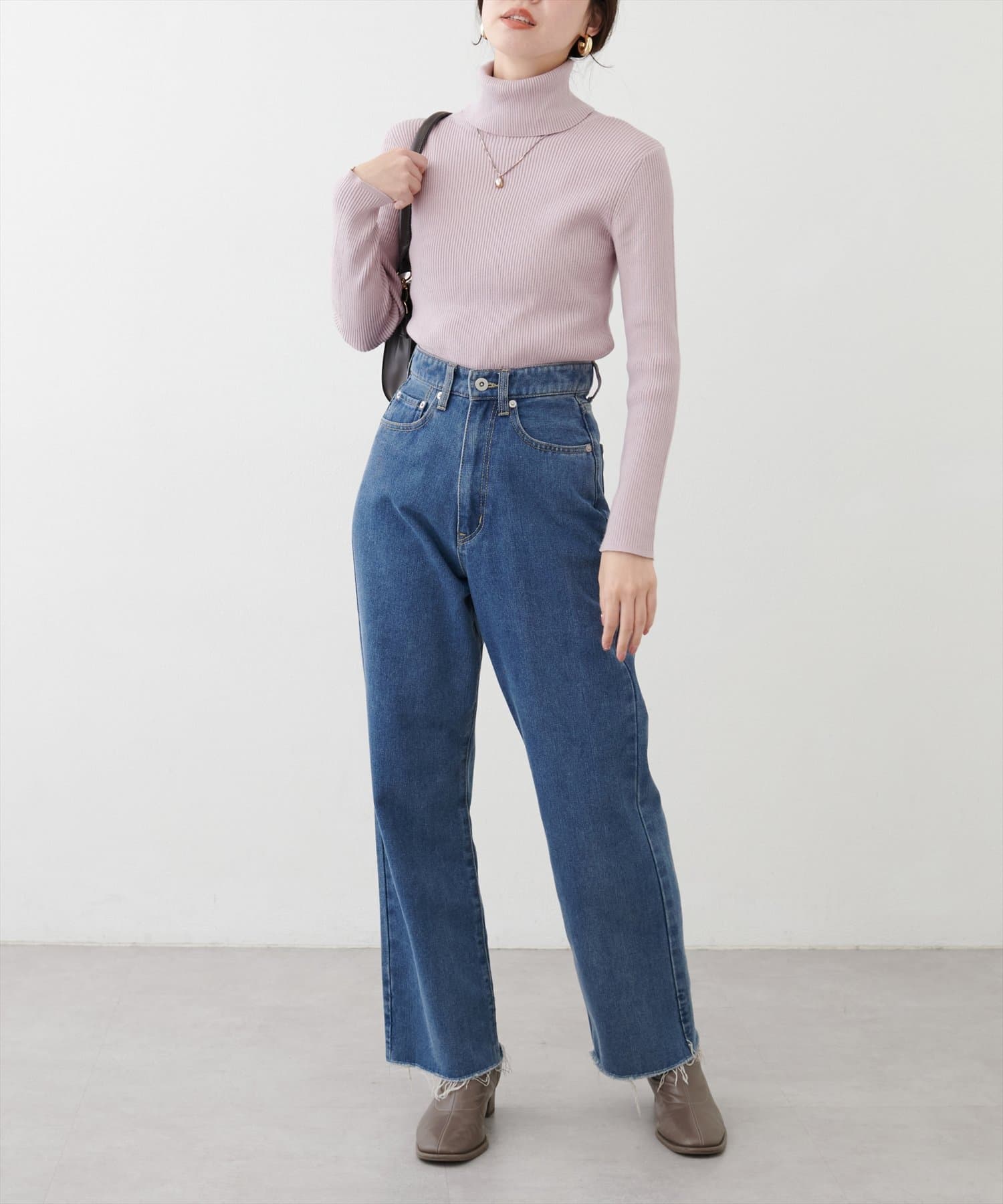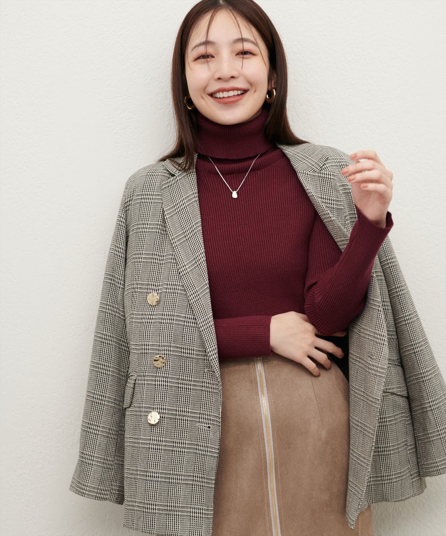 すっきりシンプルなデザインで着回しのきくリブタートルネック。