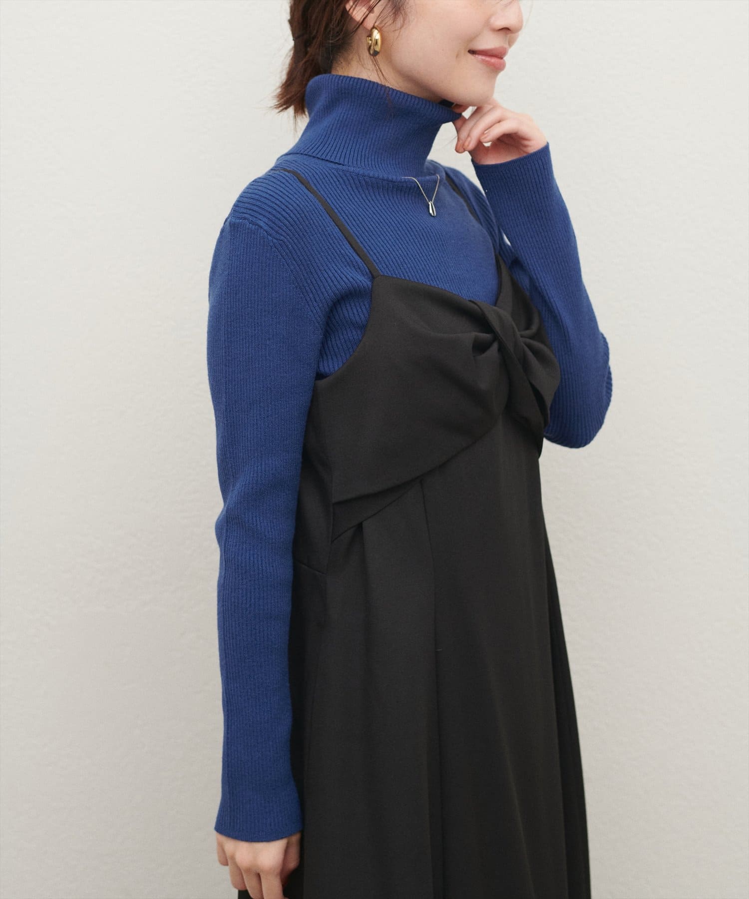 ボディにぴったりと寄り沿うリブニット素材を使用し、肌に優しく柔らかで、