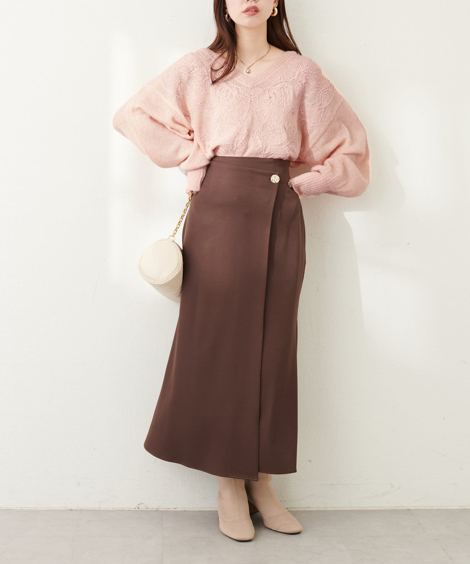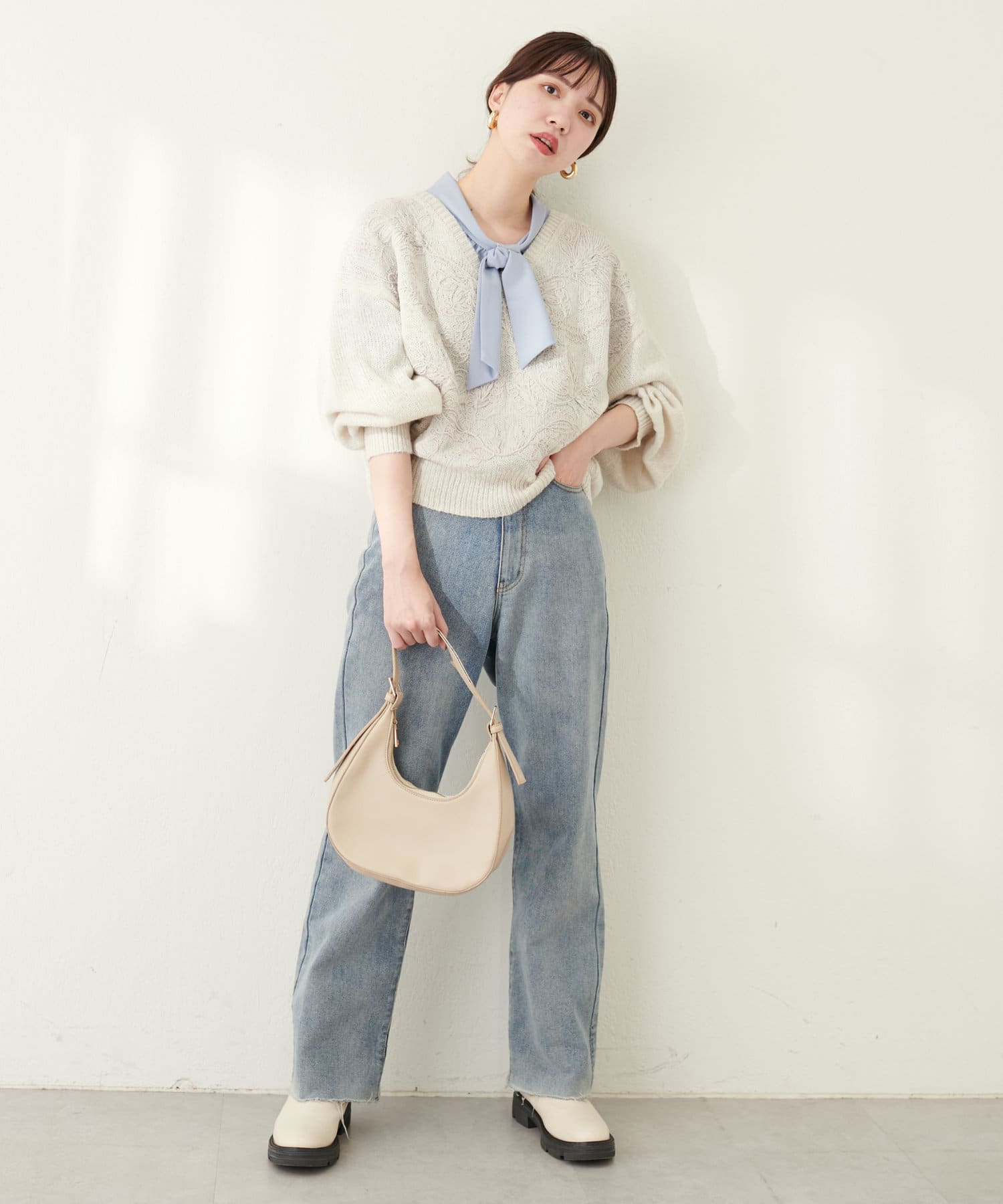 シンプルなボトムスと合わせていただくとまとまりのあるスタイリングに。