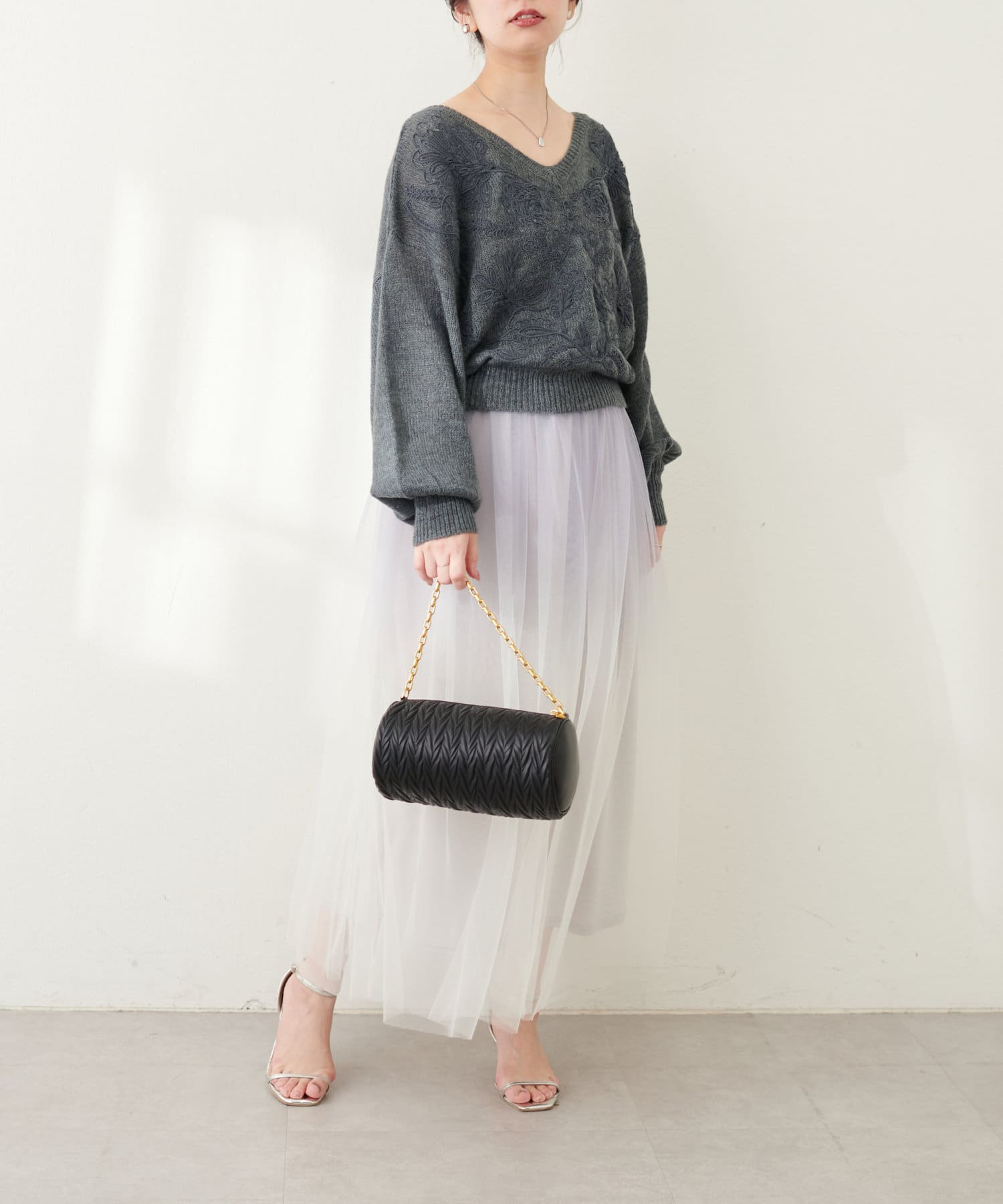 甘すぎない花柄の刺繍がきれいめで大人な印象を与えてくれます。