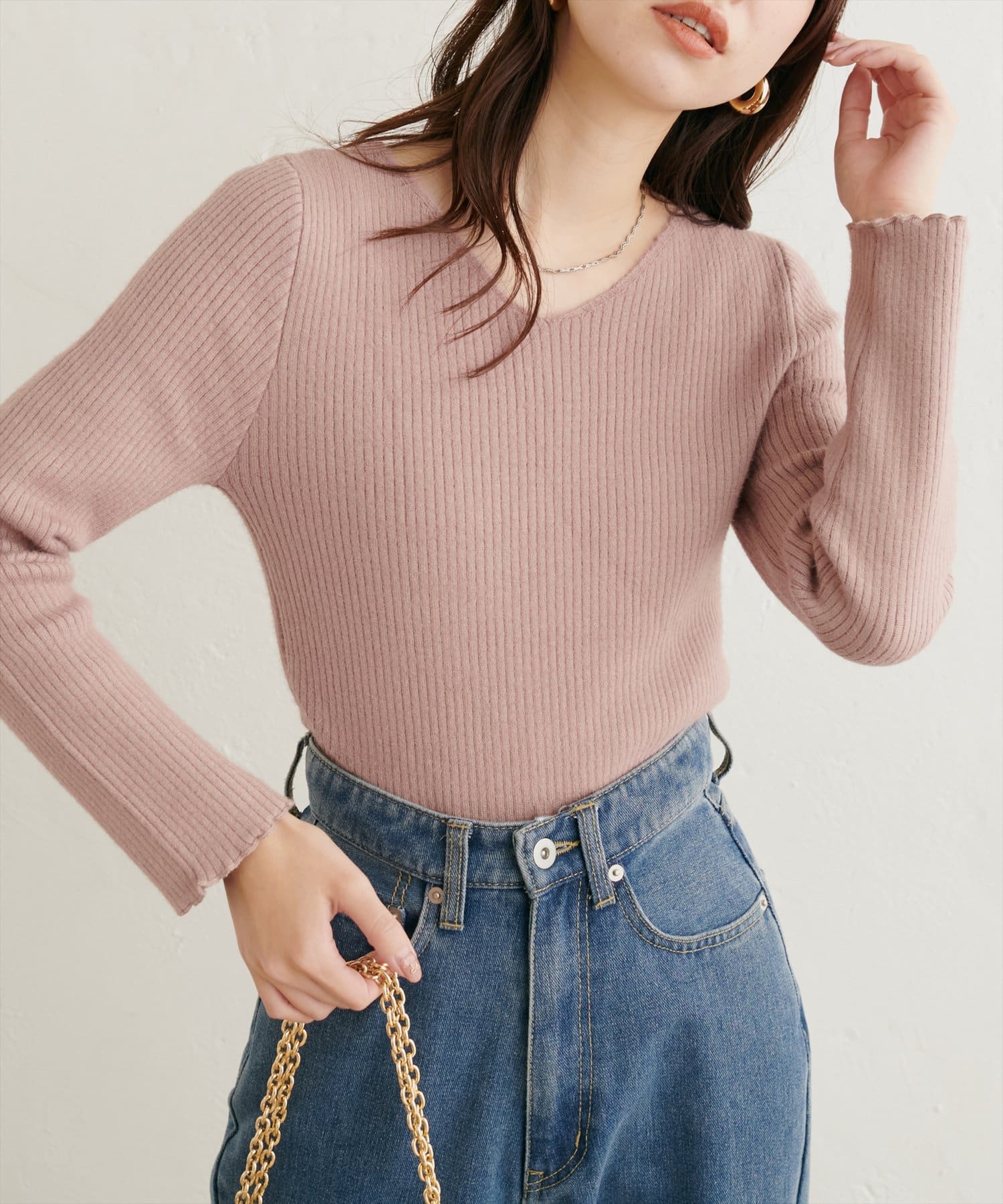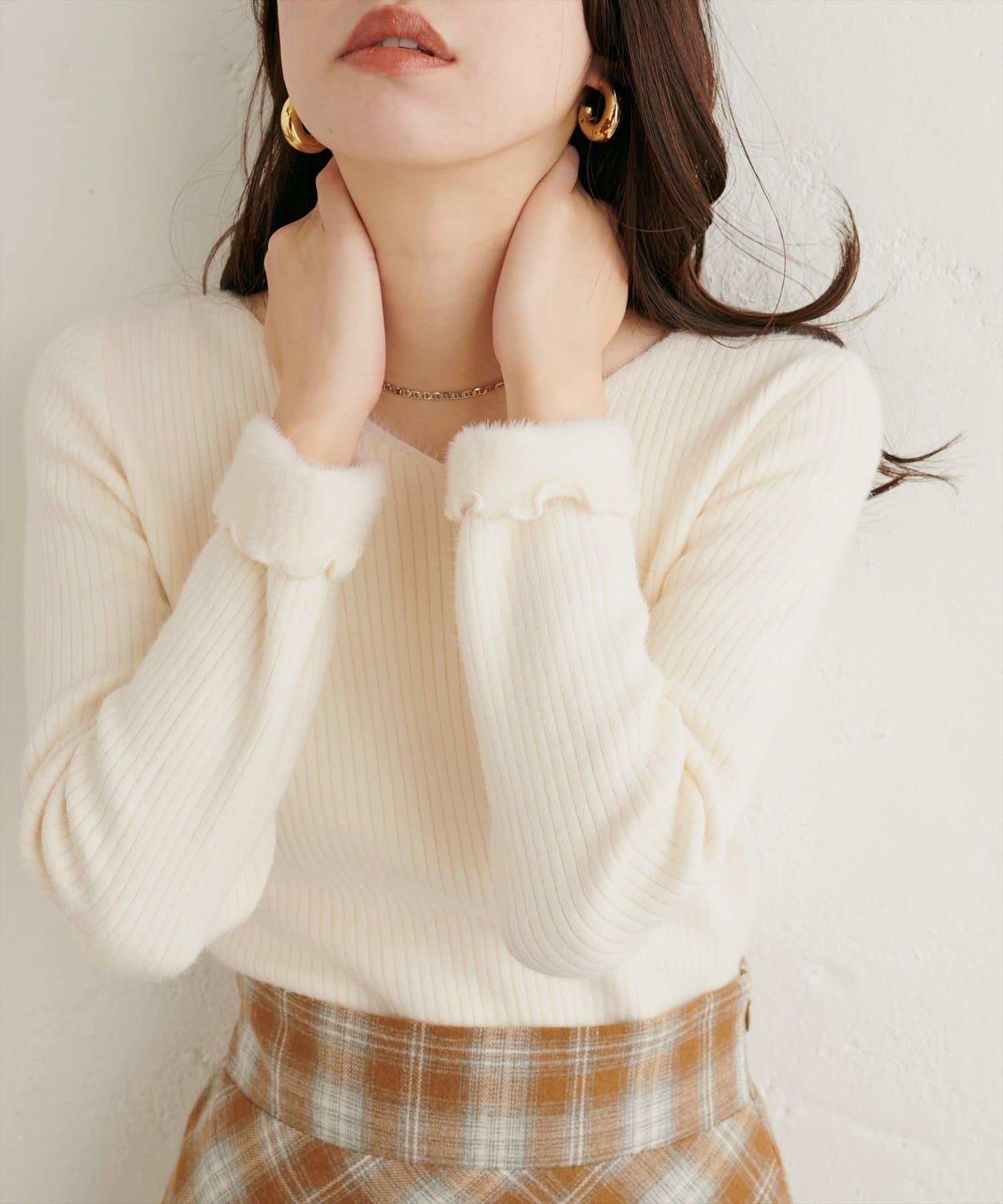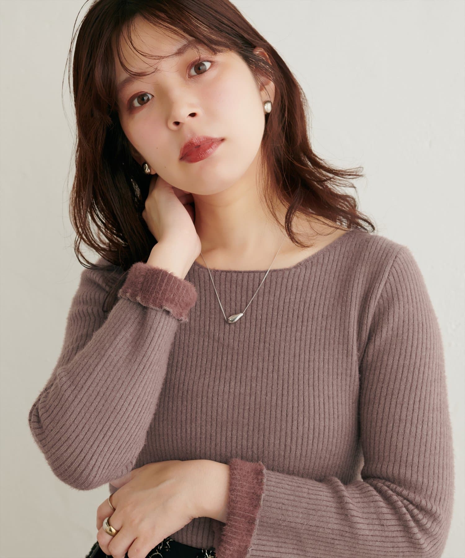 もちもちとした柔らかい肌触りのリブニット。