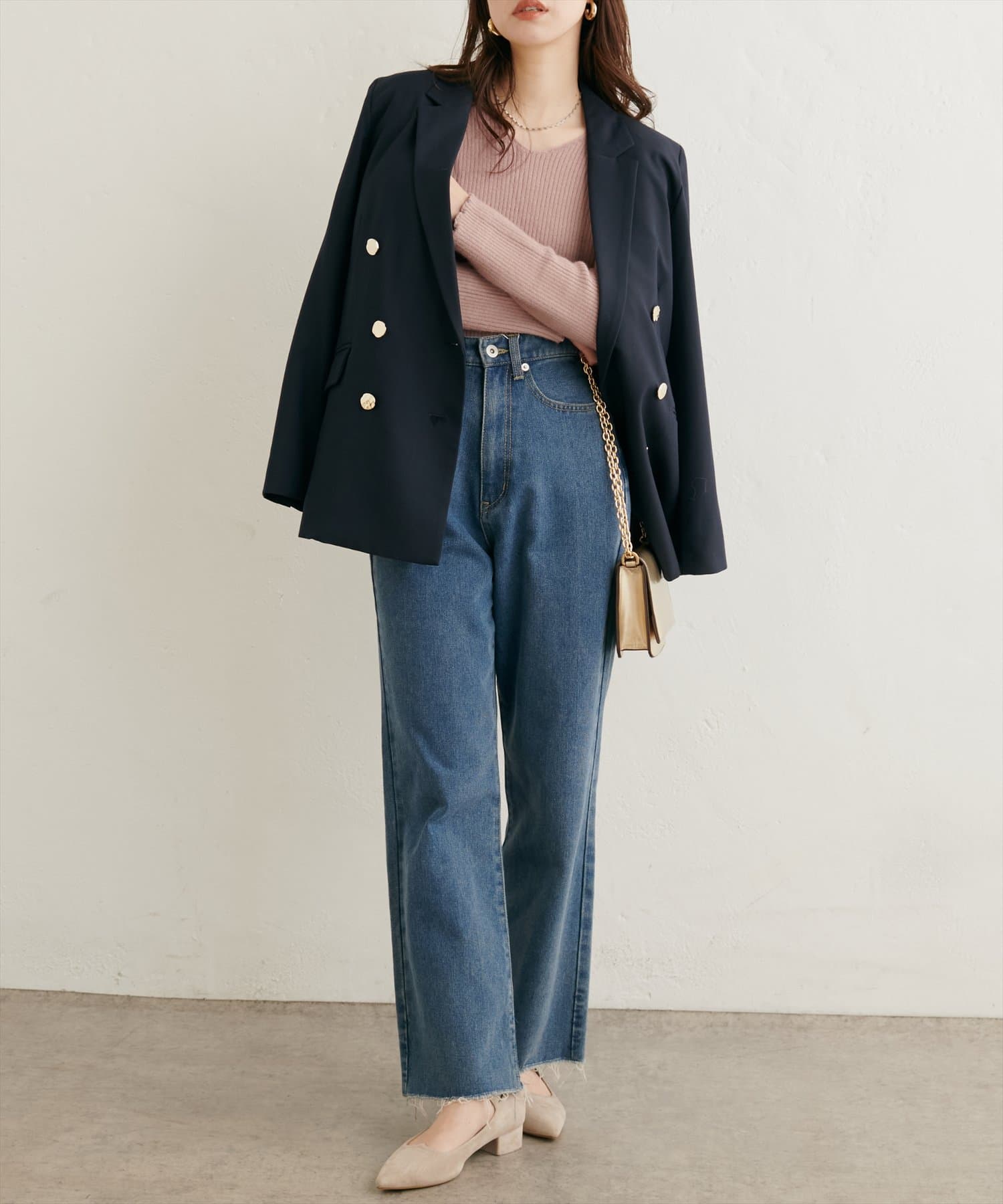 シンプルなシルエットなので、ボトムスにインでもアウトでも