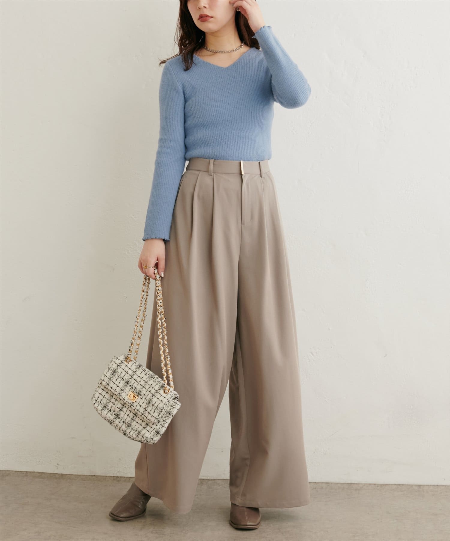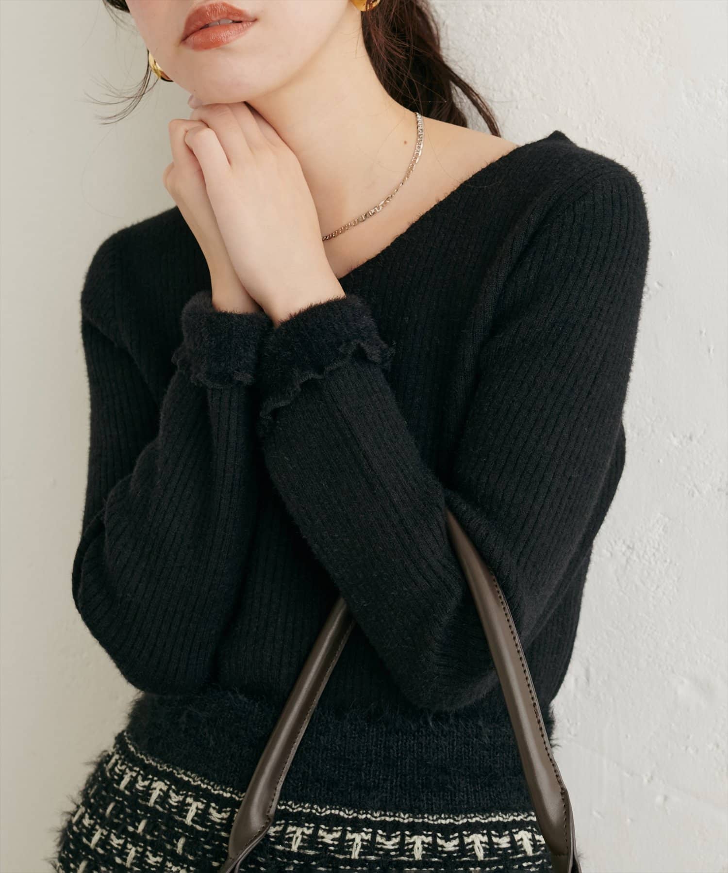 さりげなくこなれ感を演出してくれるリブニット