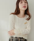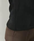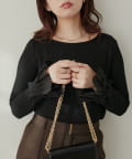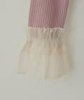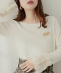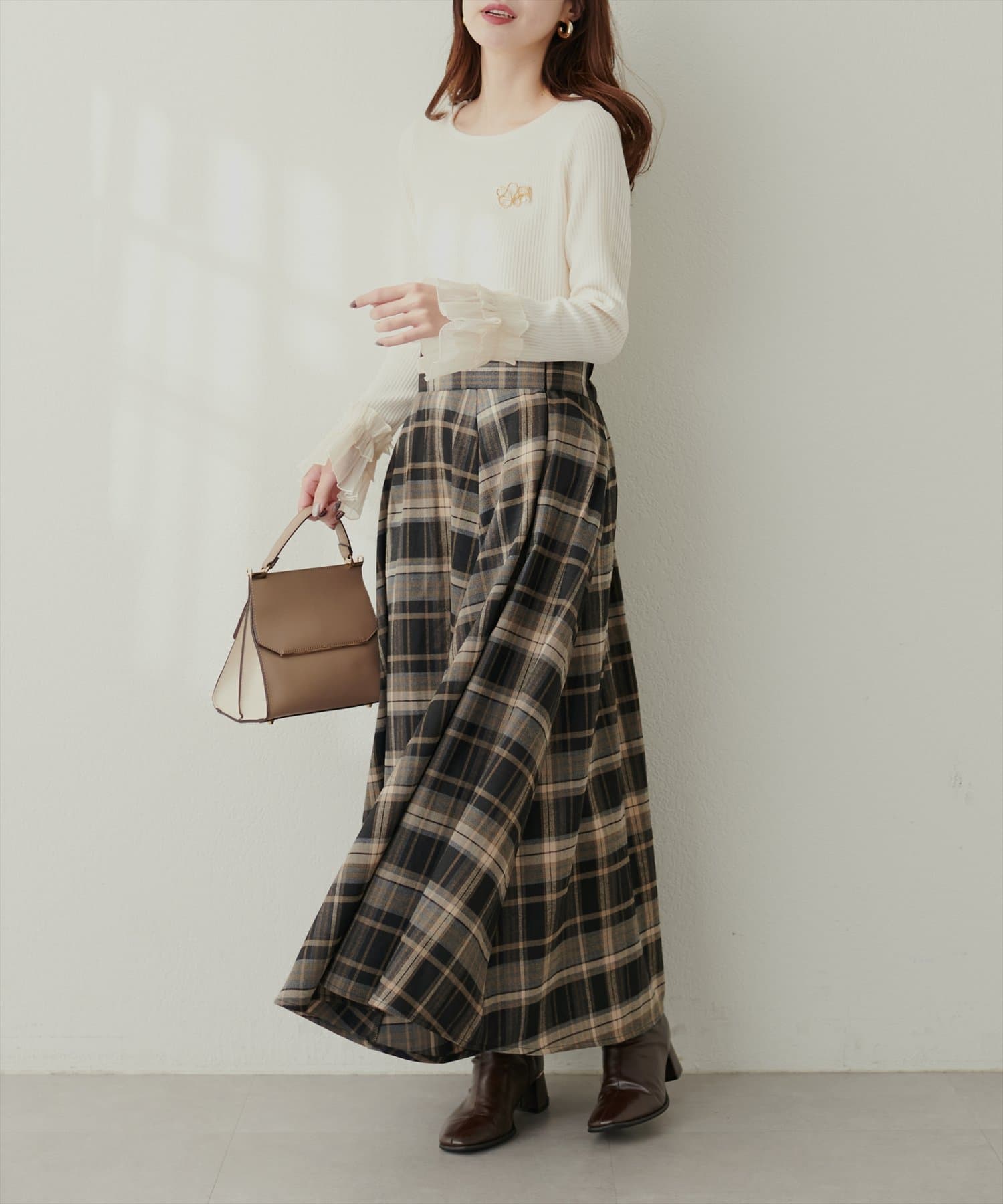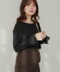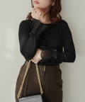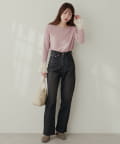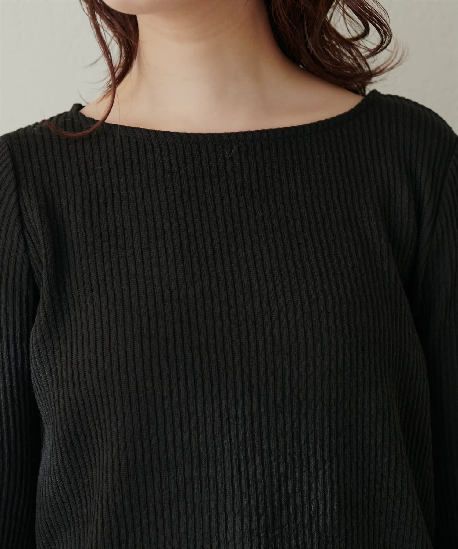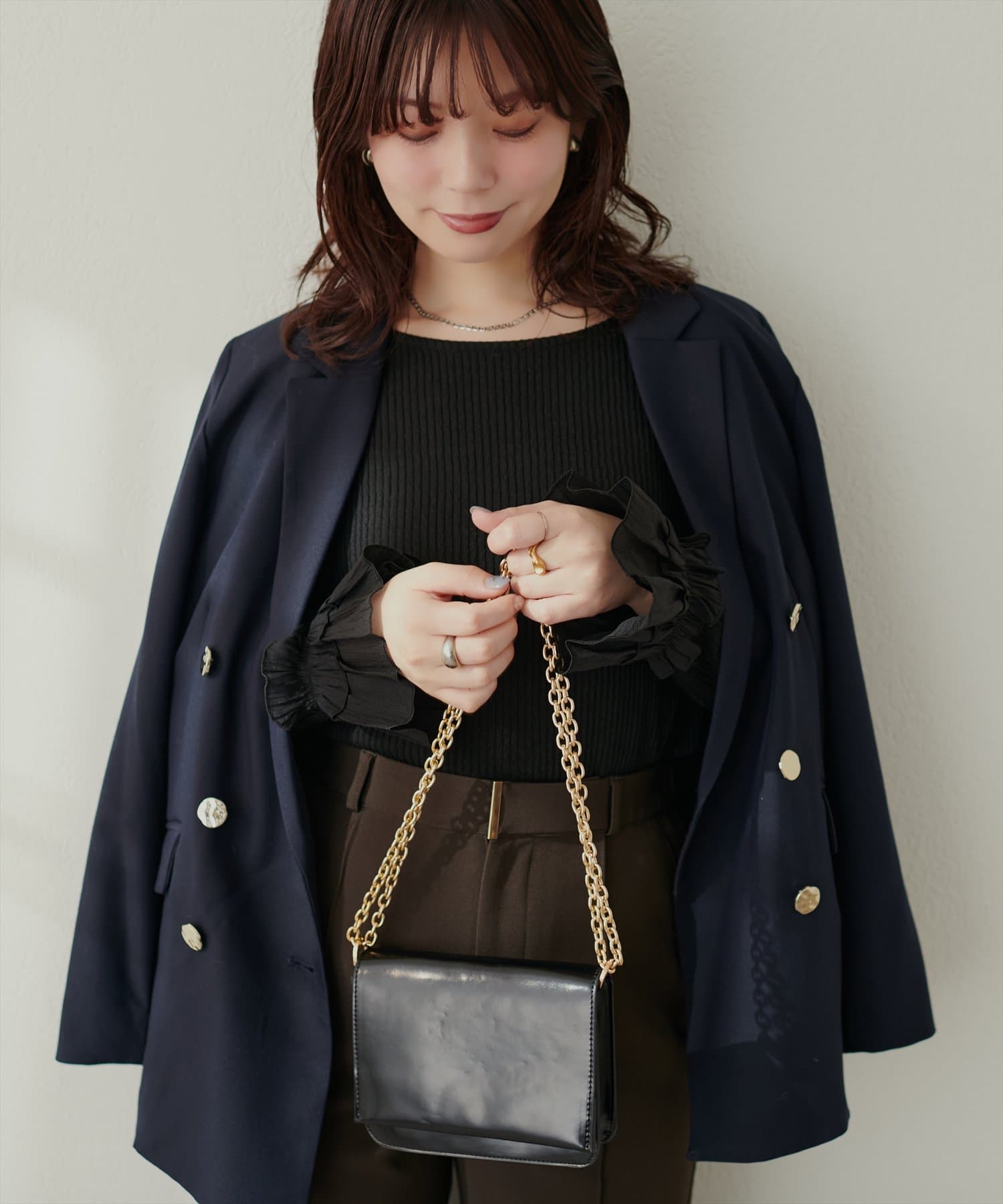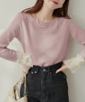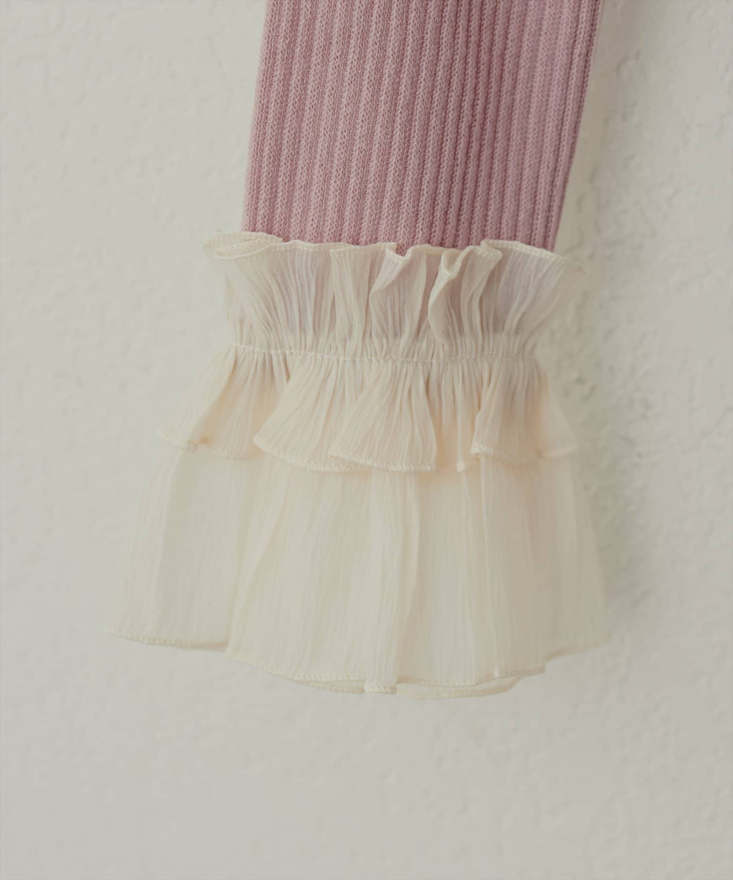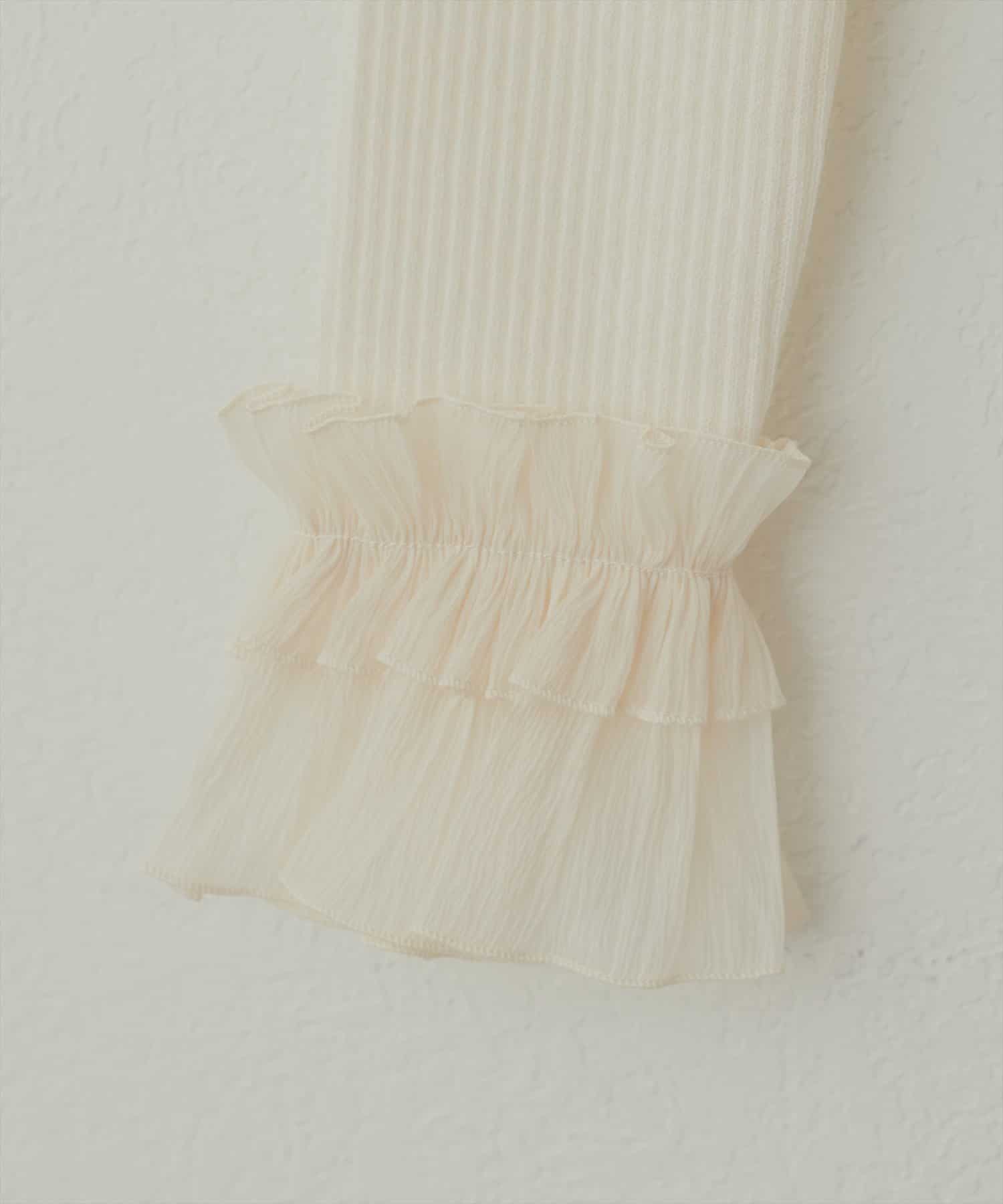 コーディネートを選ばないシンプルなリブニットに袖口のフリルでフェミニンな雰囲気に。
