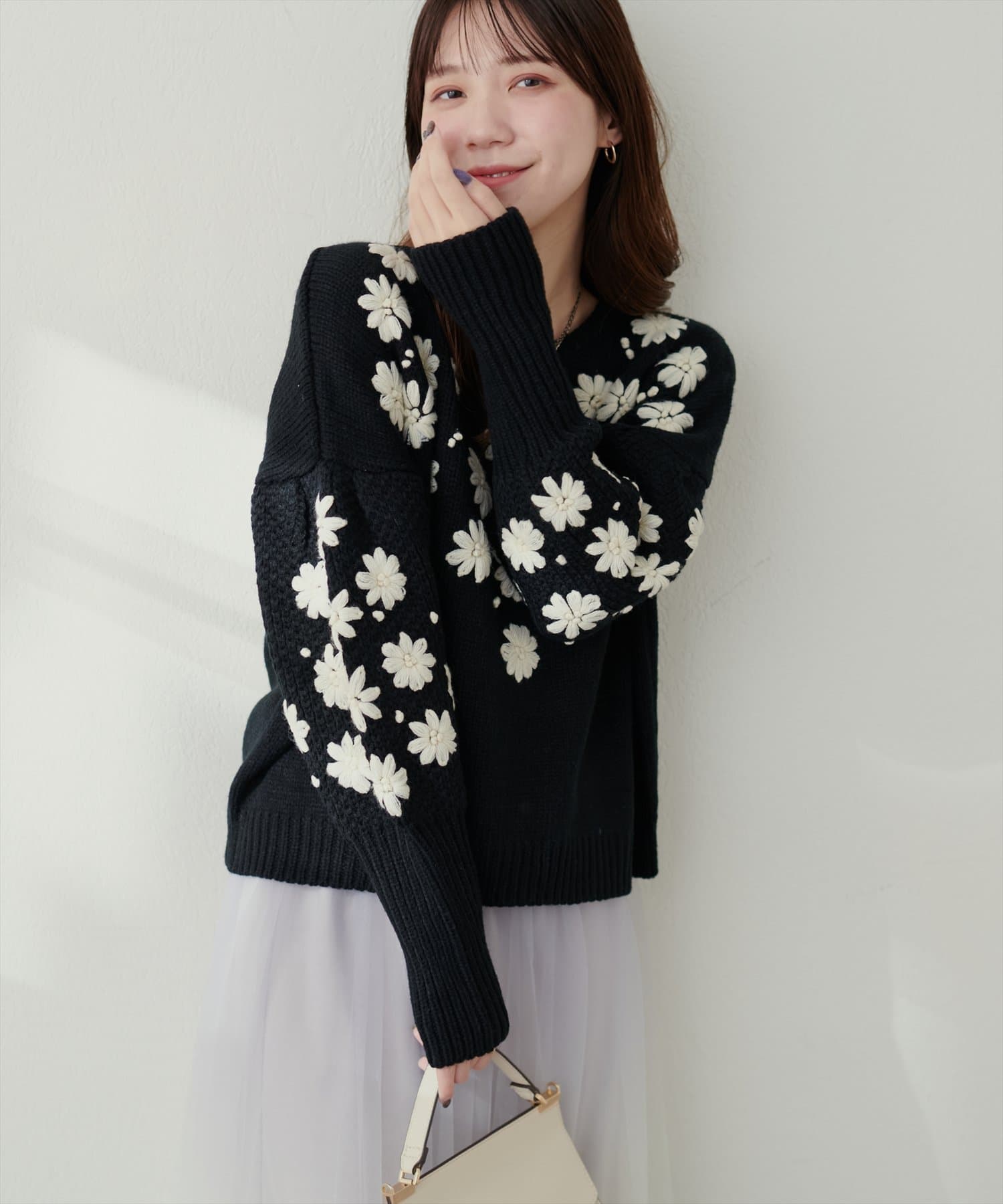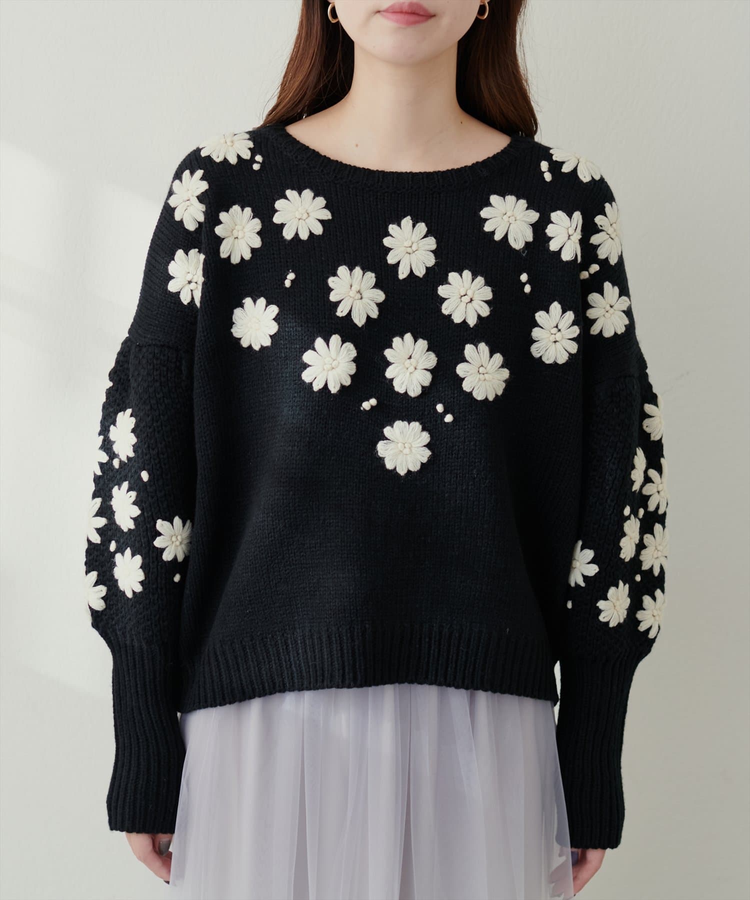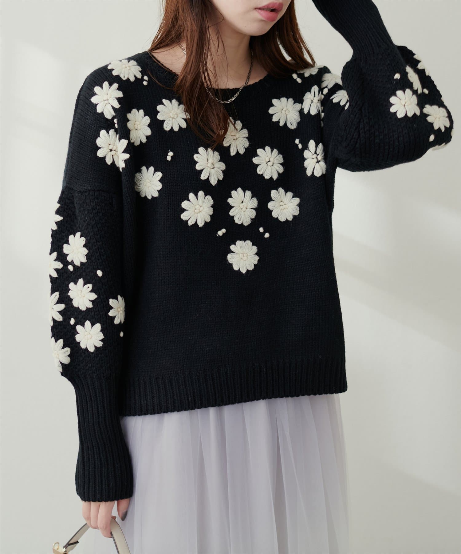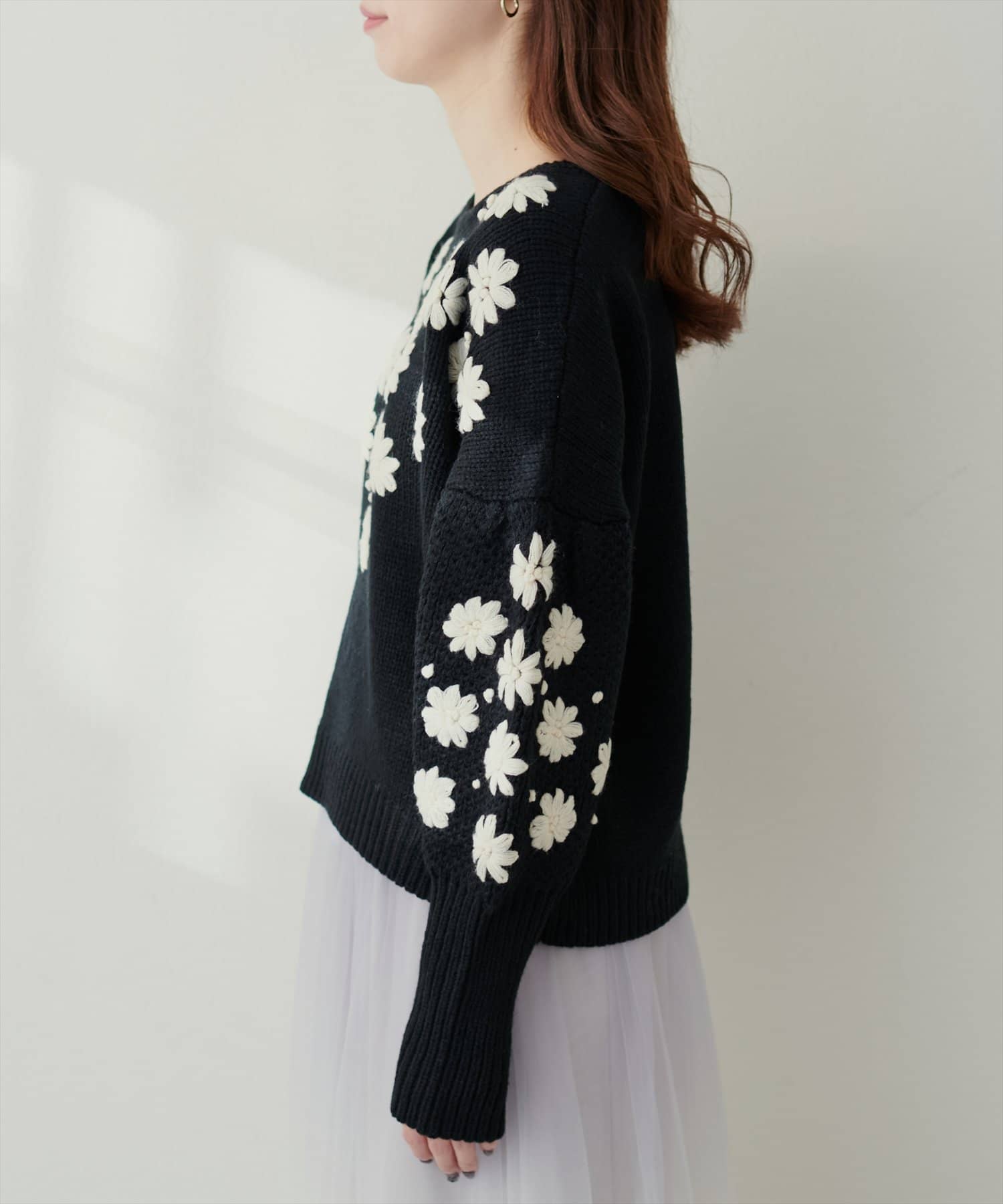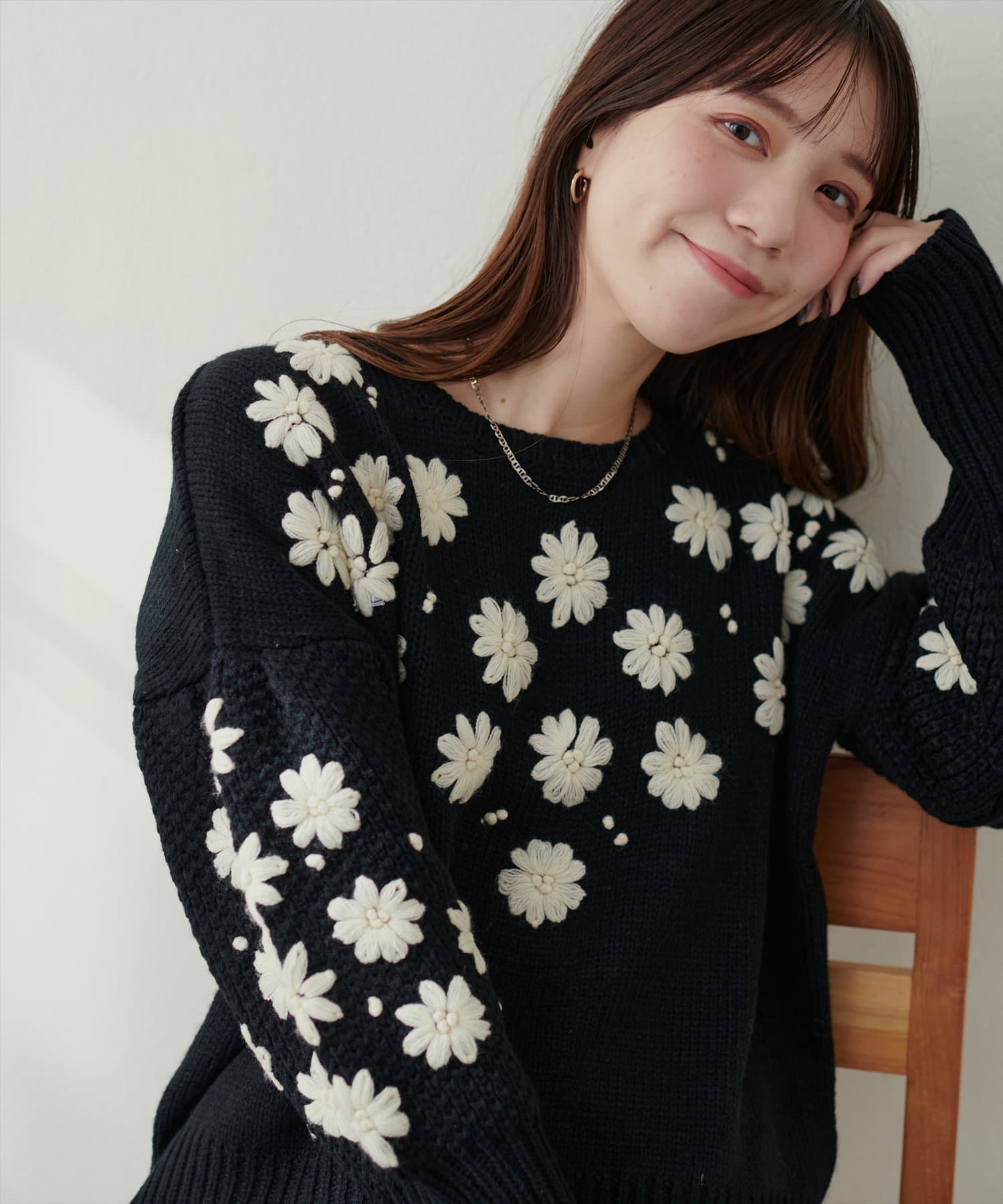 【お気に入り総選挙5位!】【WEB限定】お花刺繍ニット
