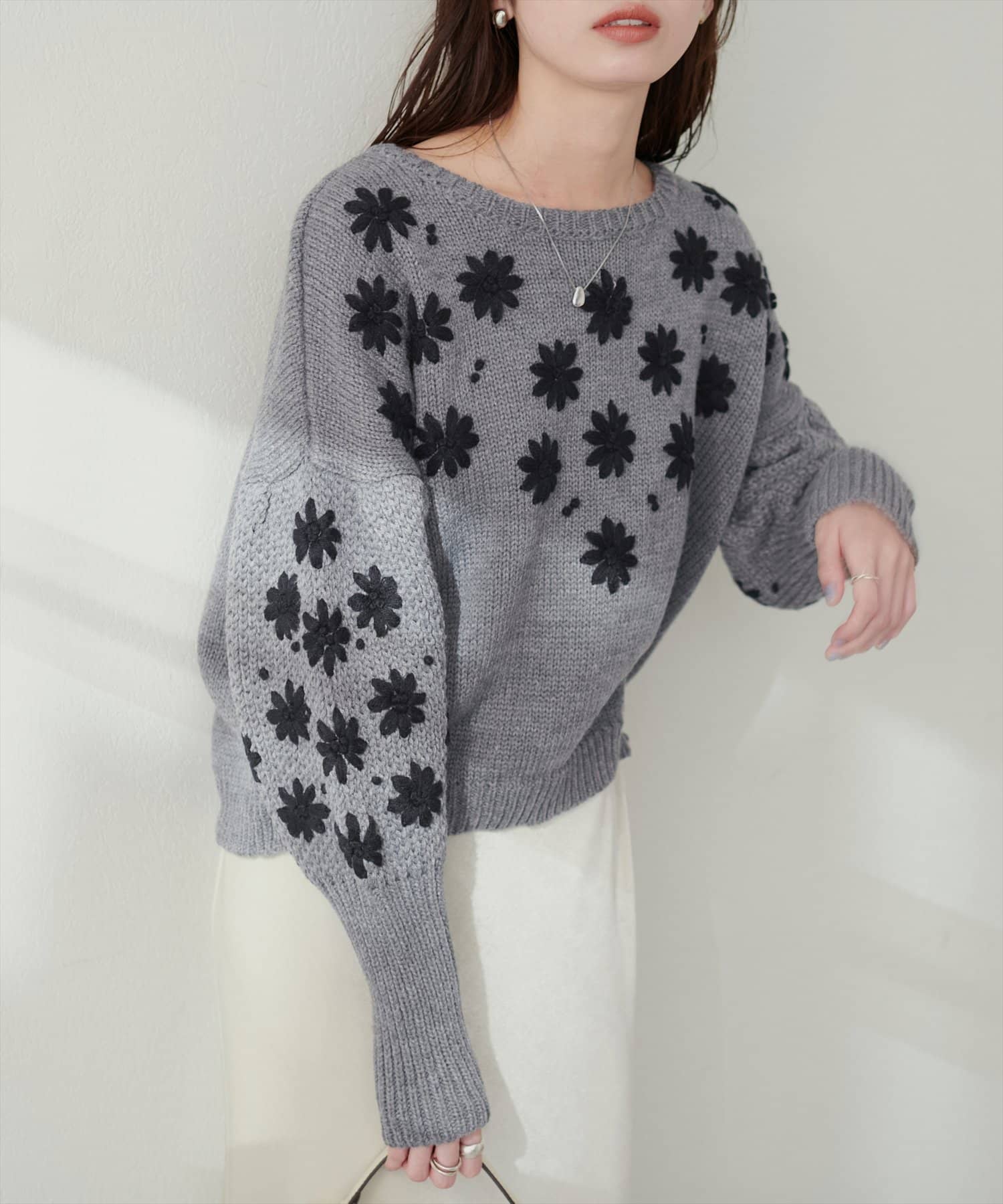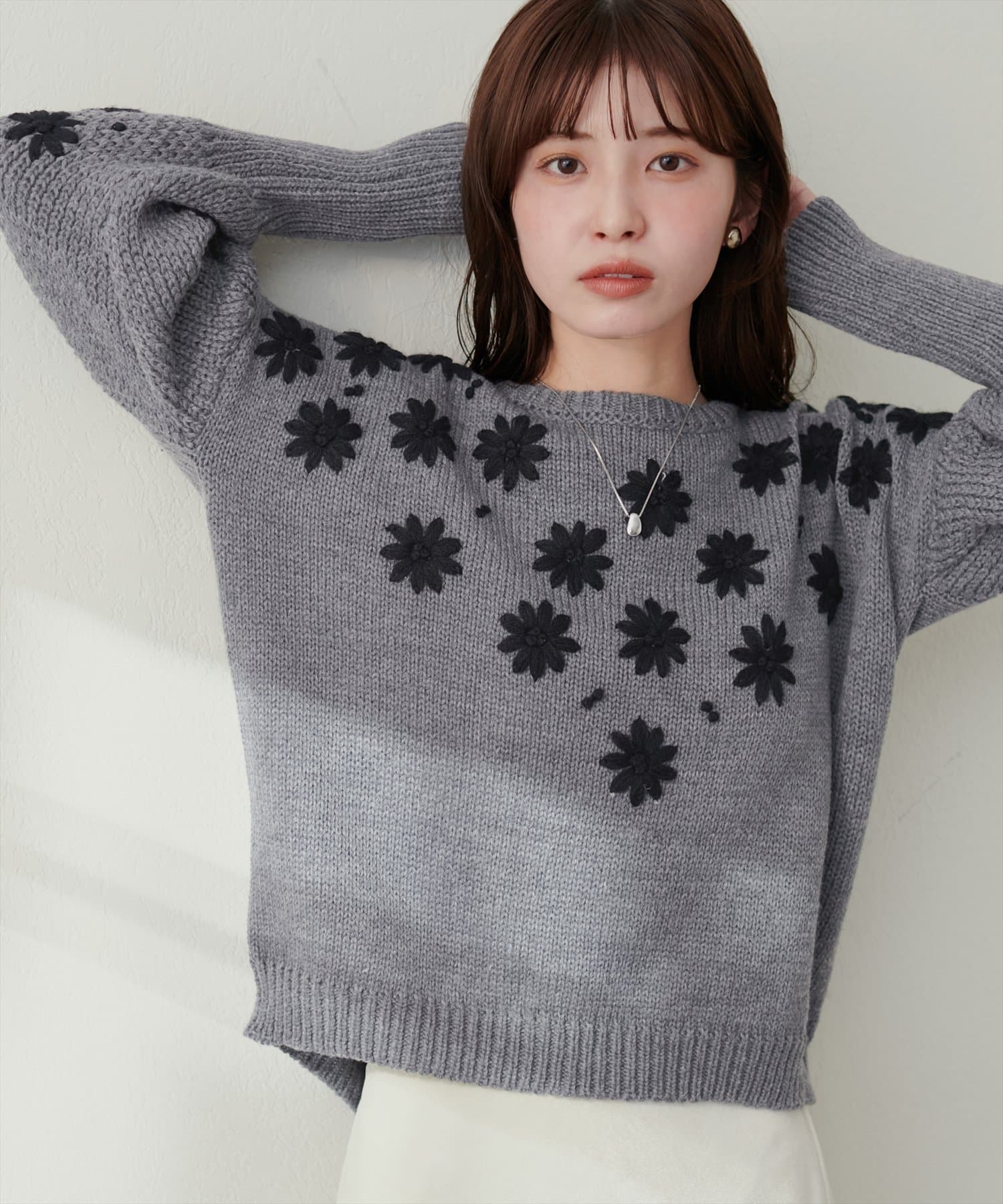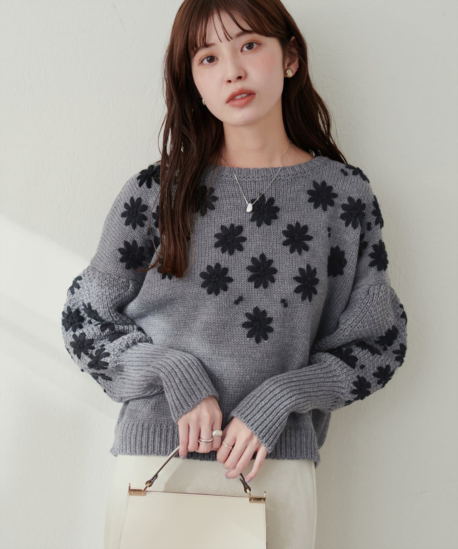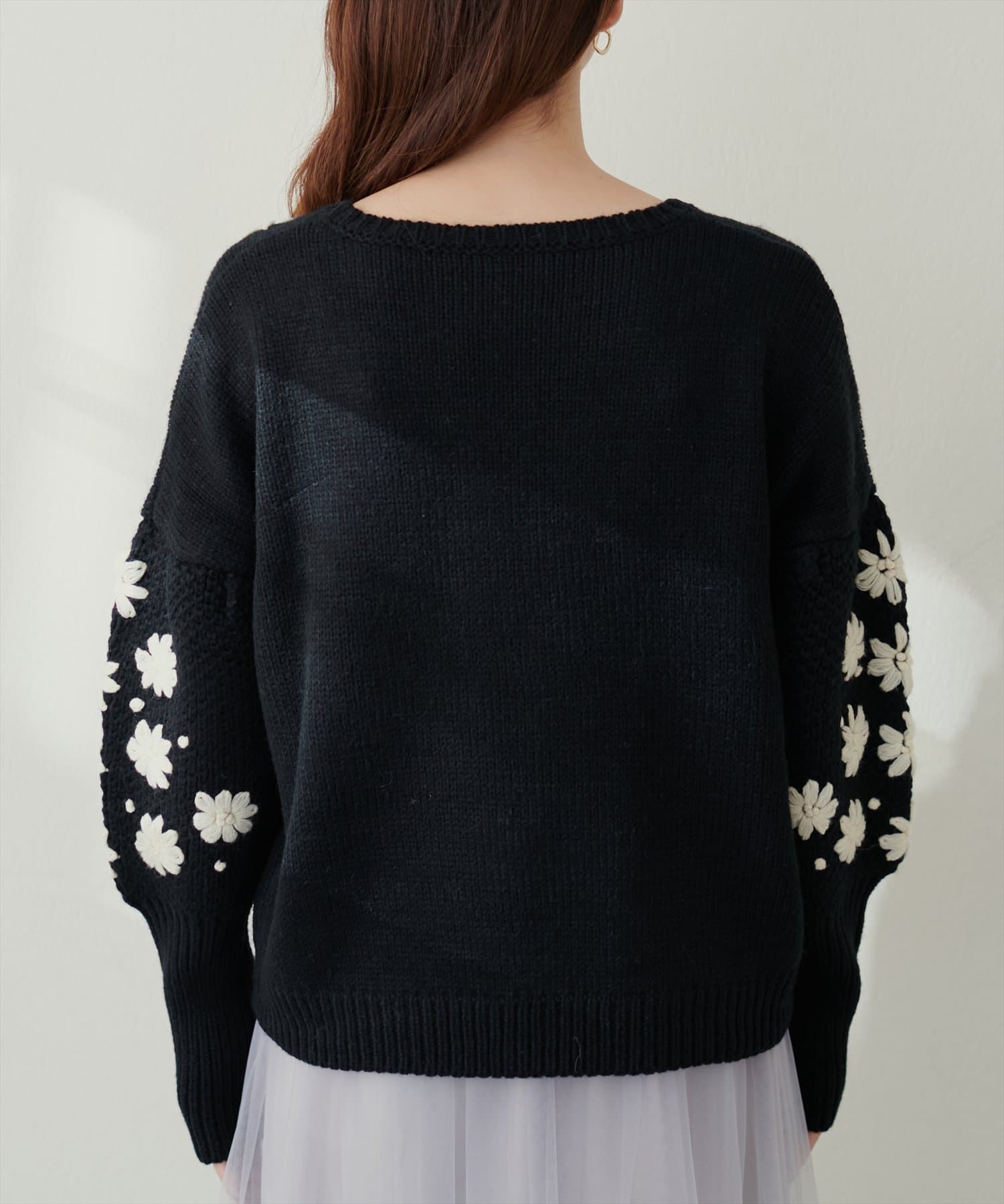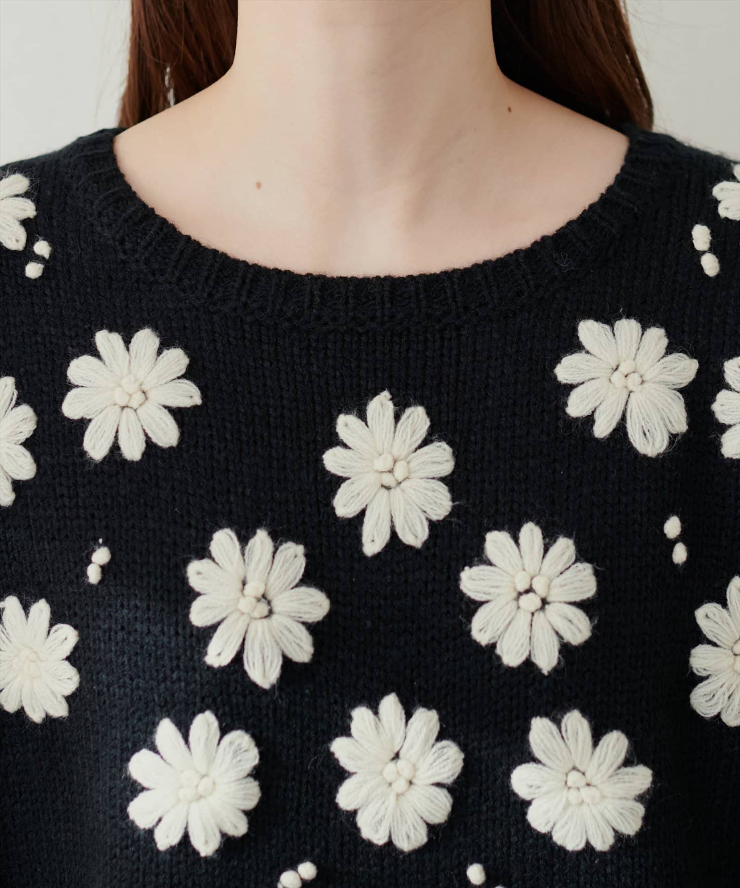 【お気に入り総選挙5位!】【WEB限定】お花刺繍ニット